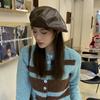Boina de mujer estilo británico retro de primavera y otoño, estilo pintor octogonal, estilo capullo, fina, coreana, de moda, japonesa, negra.