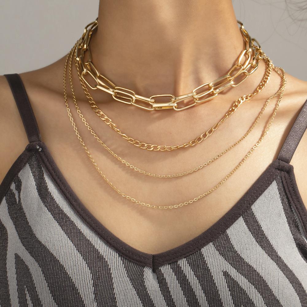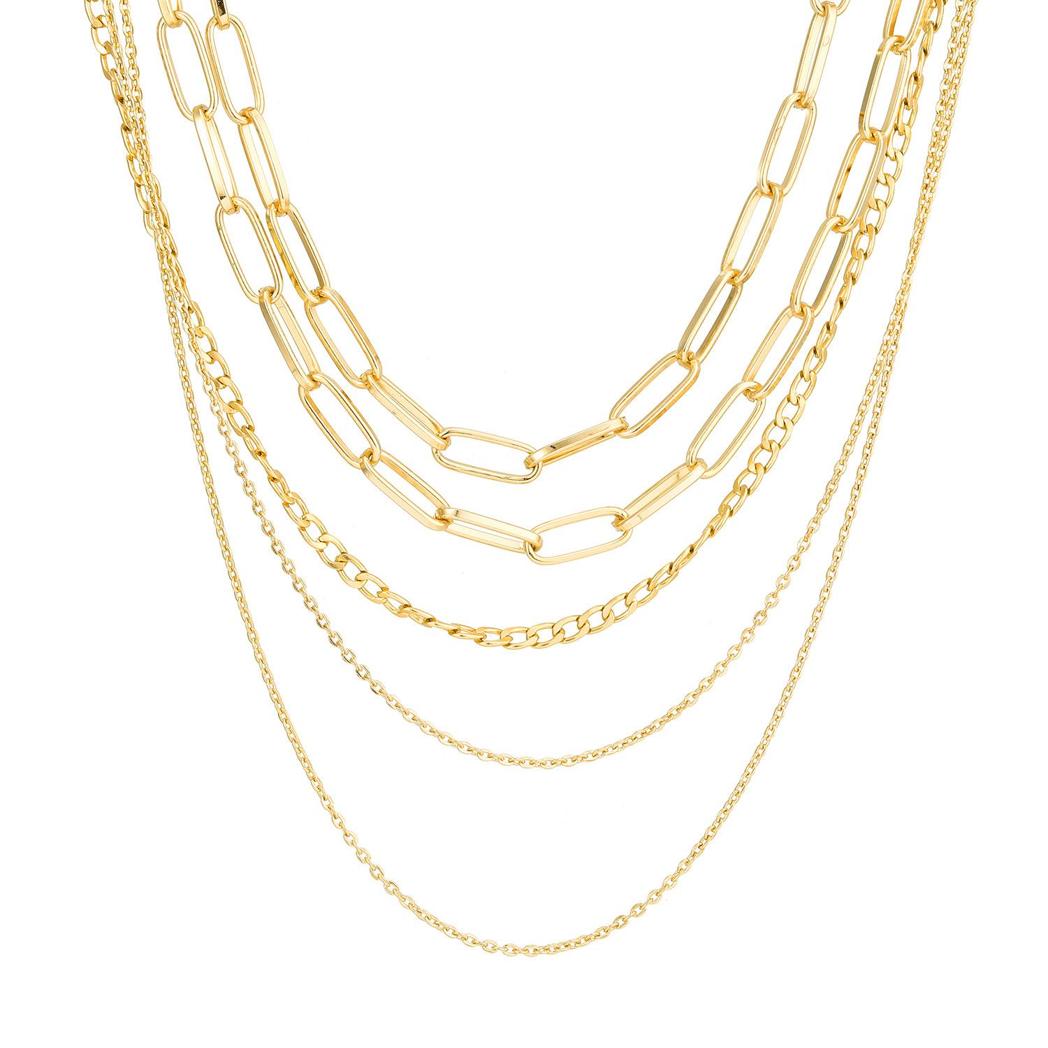 Collar de cadena de oro retro personalizado de nueva moda transfronteriza europea y americana, collar simple de múltiples capas, cadena de suéter, joyería para mujeres