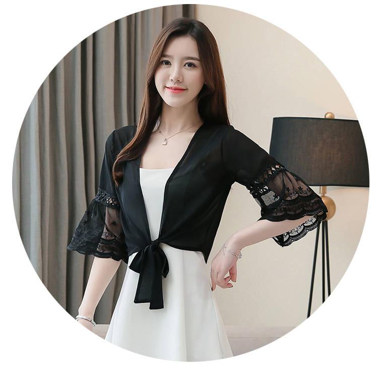 Chal de verano con protector solar y falda corta tipo cabestrillo, dulce y elegante, combinable con todo, estilo corto, ropa fresca con protector solar.