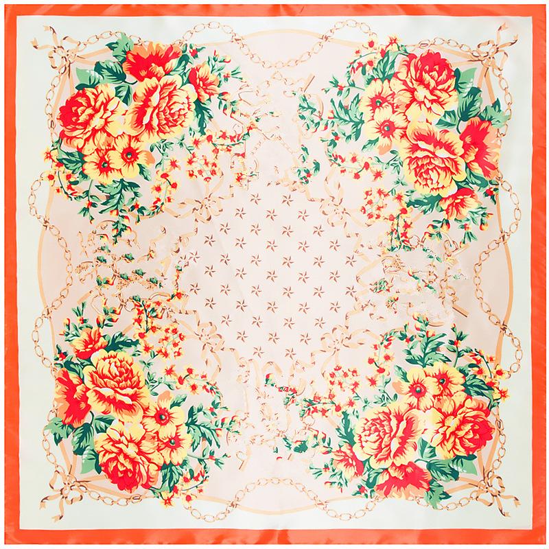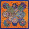 La seda morera de alta calidad es ligera, suave y agradable para la piel. Los diversos patrones de cadenas naranjas de carruajes están llenos de significado geométrico, y la combinación irregular de naranja claro y oscuro resulta elegante y significativa.