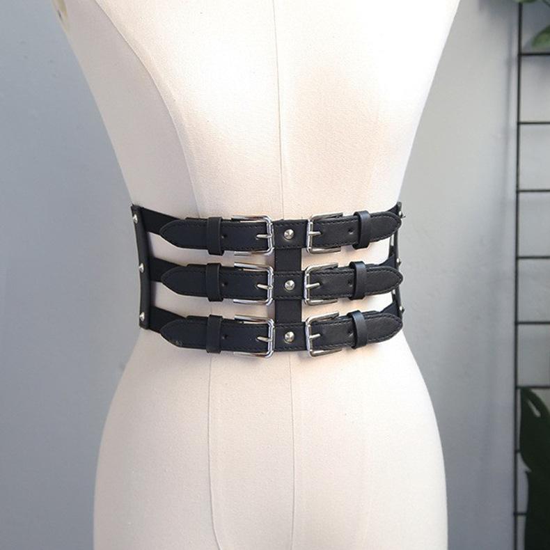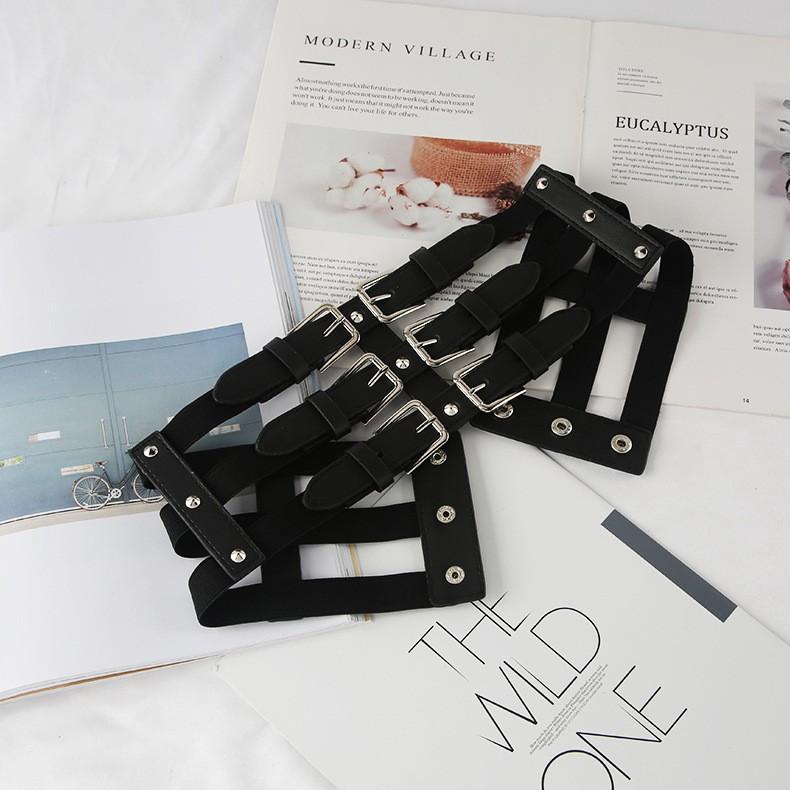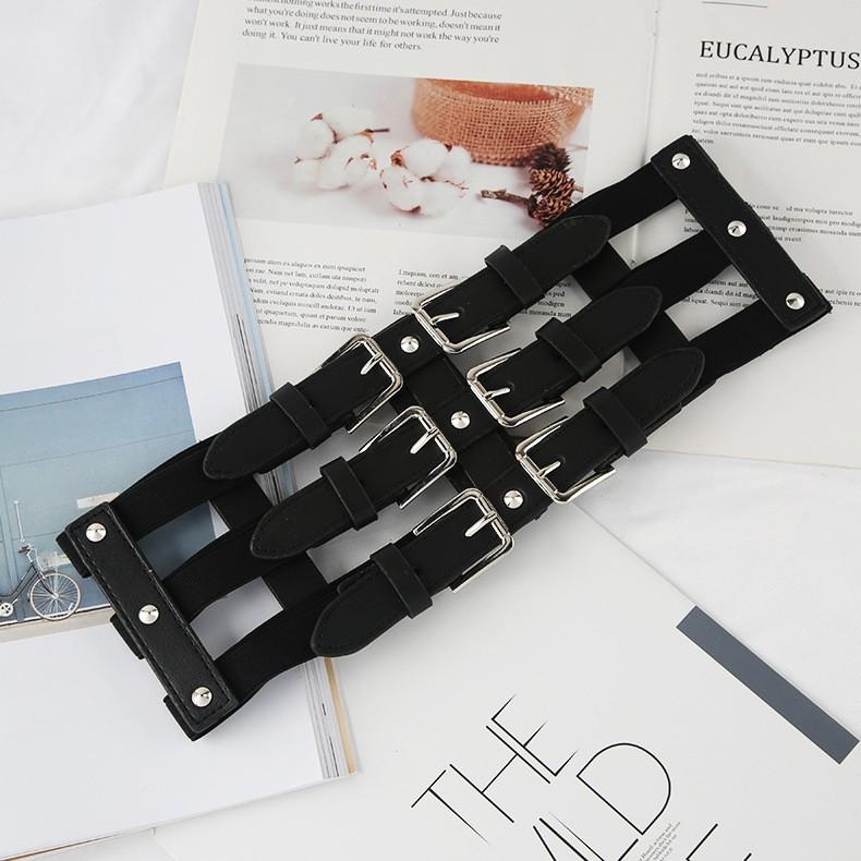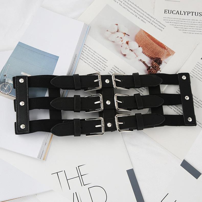 Cinturón de traje estilo punk con hebilla de moda europea y americana de primavera para mujer, con cubierta de cintura delgada, decorativo, color negro