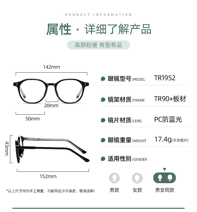 Nueva versión coreana de gafas anti-luz azul con montura TR, lentes planas para miopía a juego, montura de moda para hombres y mujeres.
