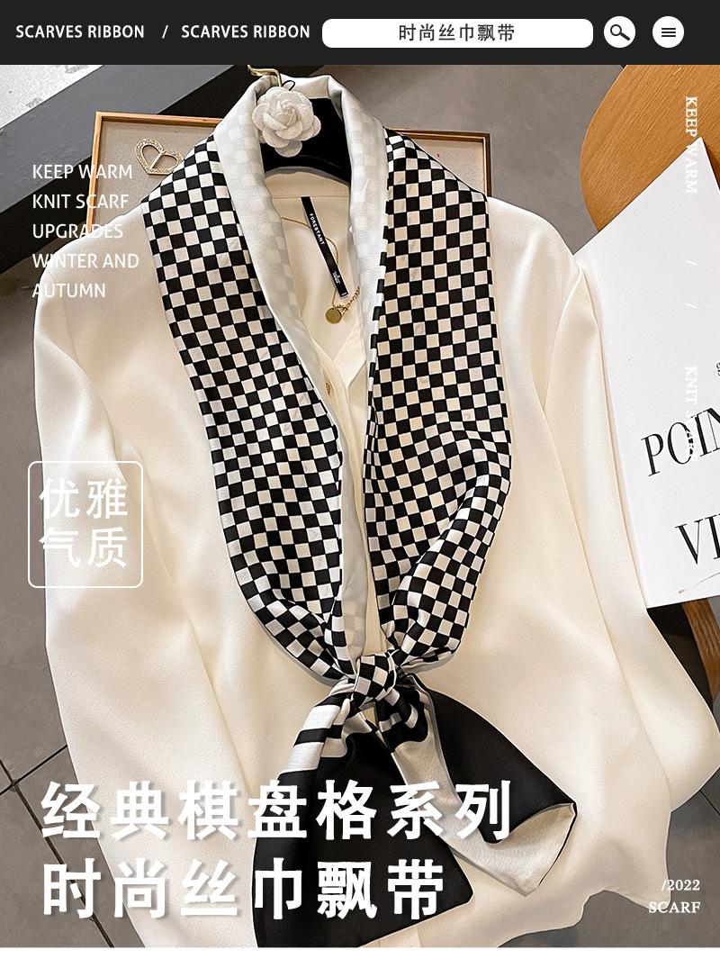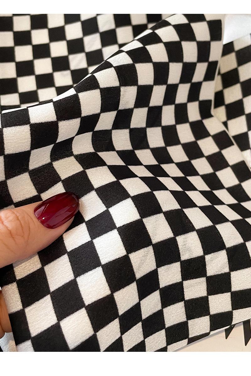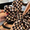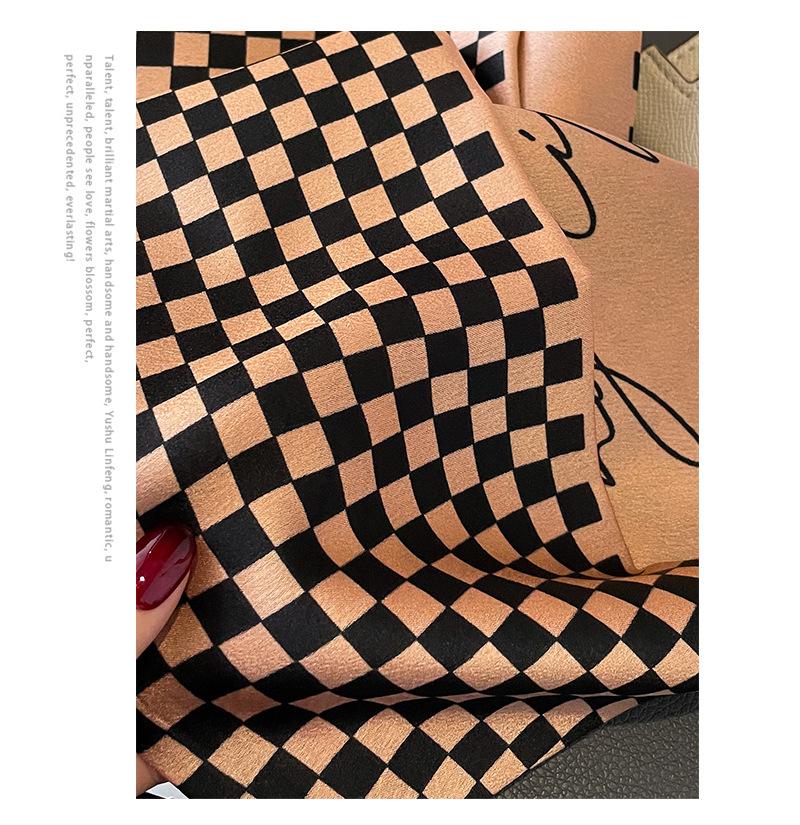 Primavera y verano estilo coreano simple tablero de ajedrez doble cara dos colores ángulo plano bufanda pequeña protección para el cuello decoración bolso de viaje para mujer