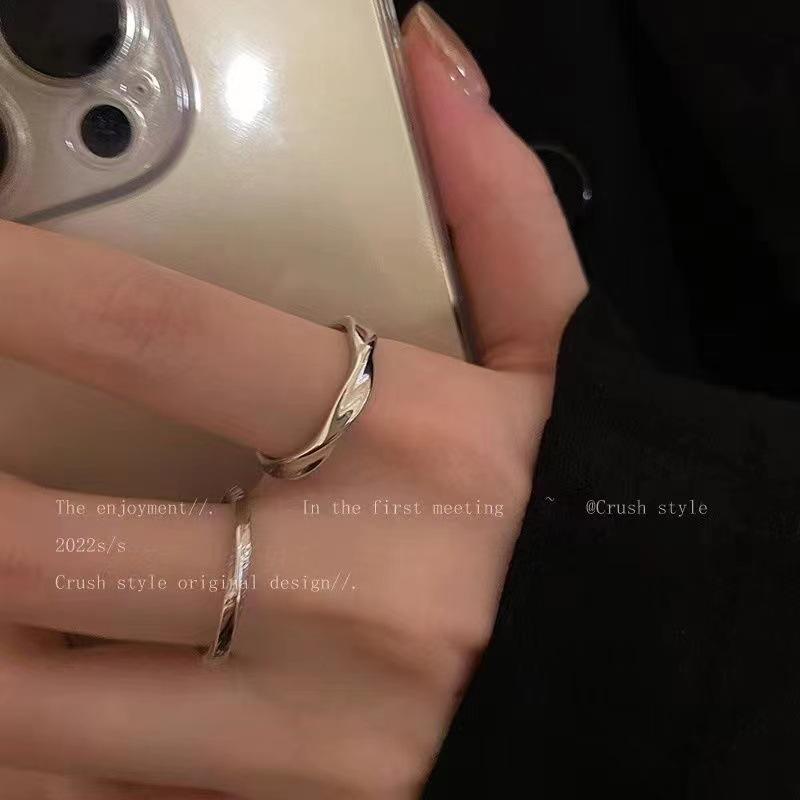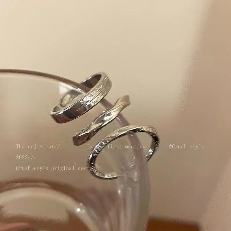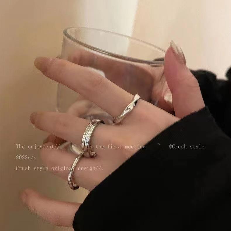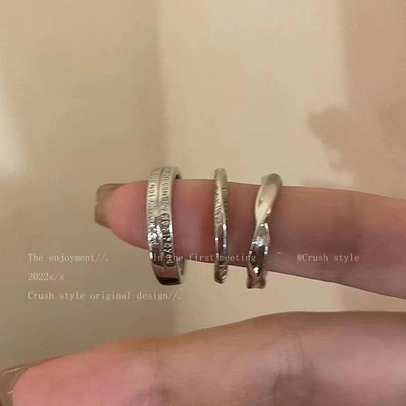 Set de tres piezas de anillo de letra plateado para mujer Estilo nicho frío Simple Elegante Tendencia Versátil Anillo para dedo índice Popular Anillo para meñique
