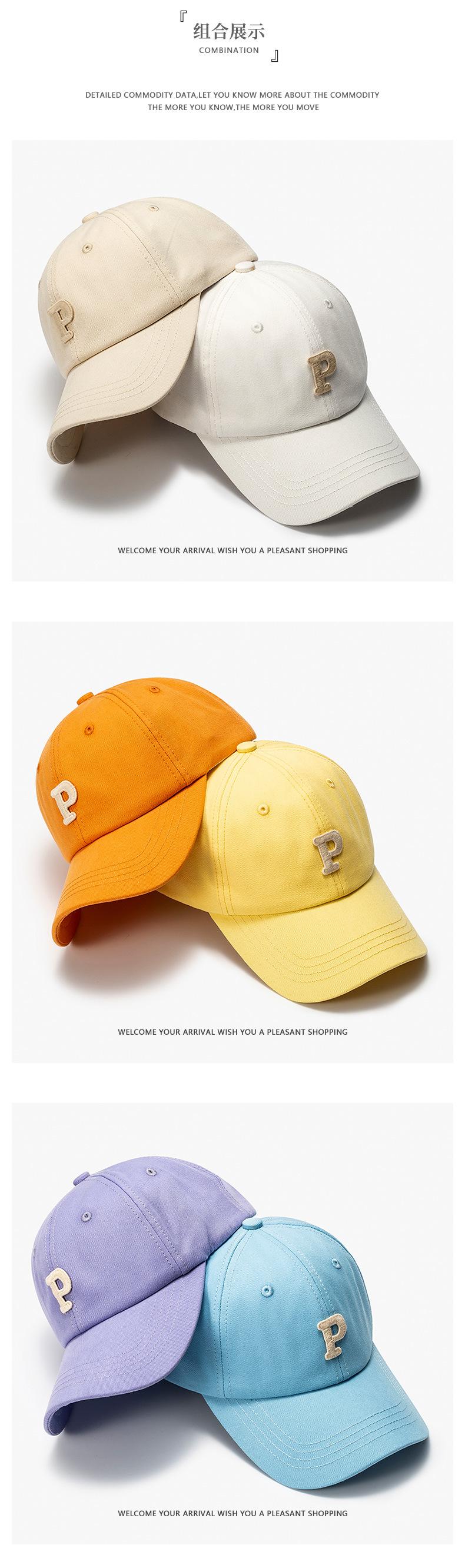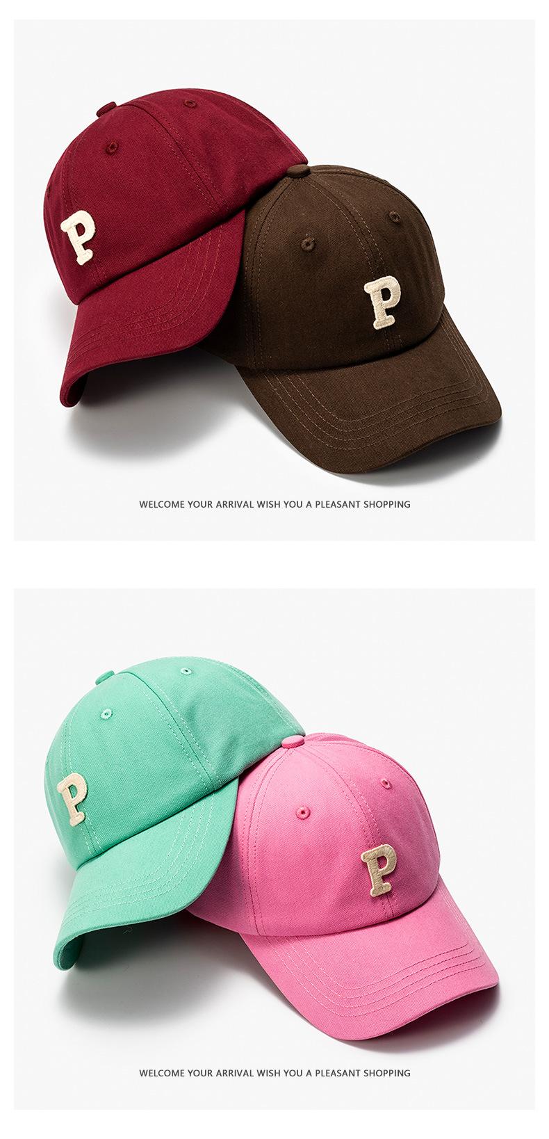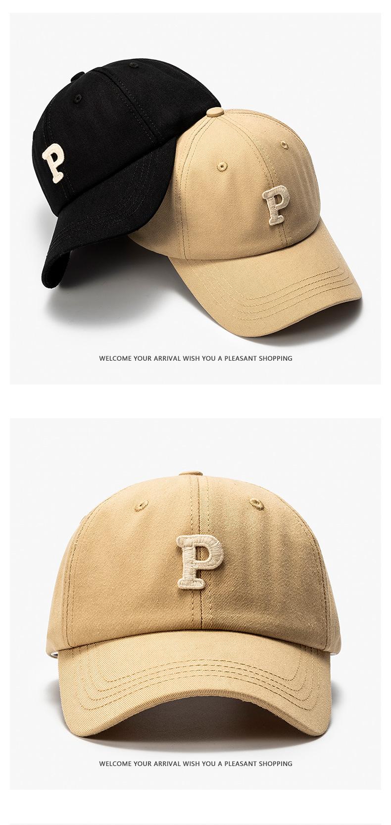 P letter baseball cap, All-match, Minimalist, Fashion OL, Simple