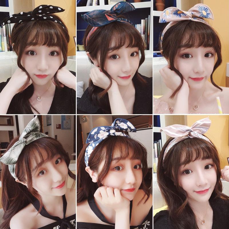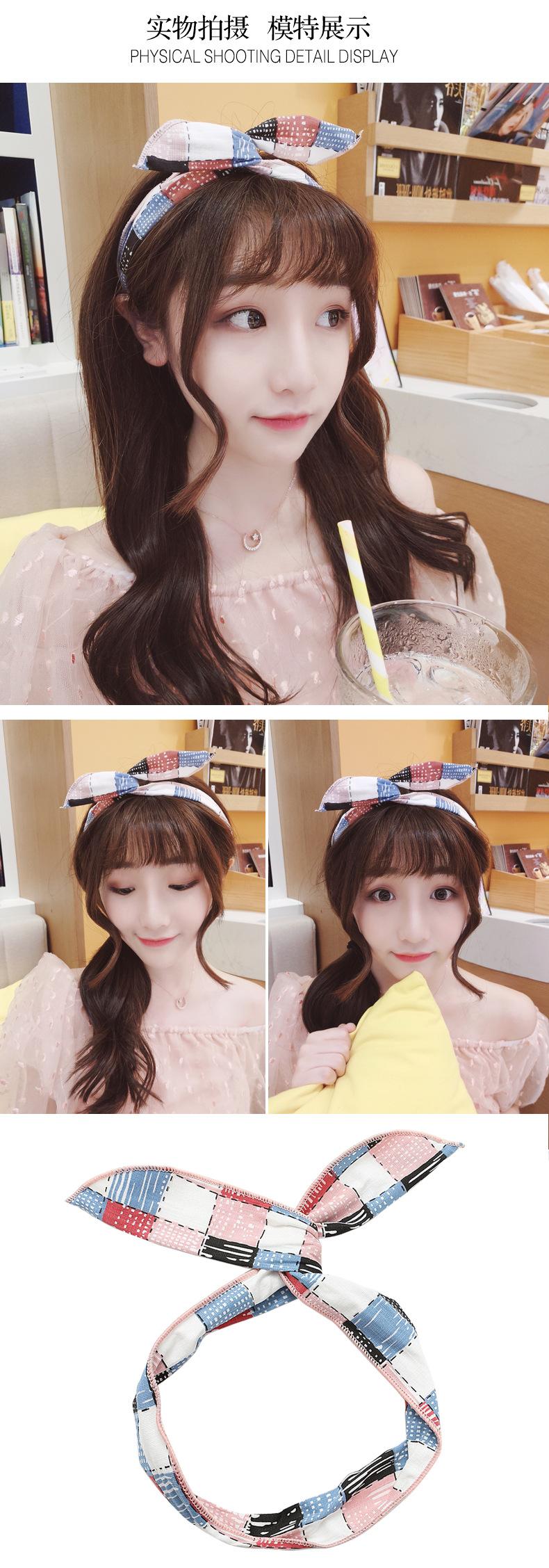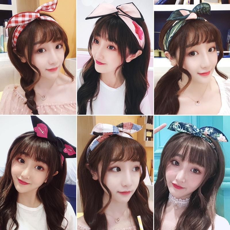 Diadema de alambre de hierro estilo coreano accesorios para el cabello orejas de conejo lindas borde ancho lavado de cara diadema anudada Corea del Sur tocado simple diadema para mujeres