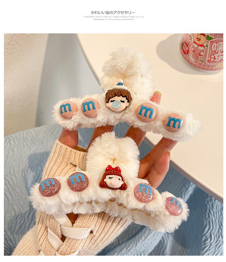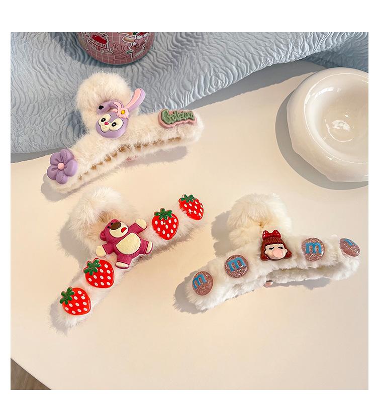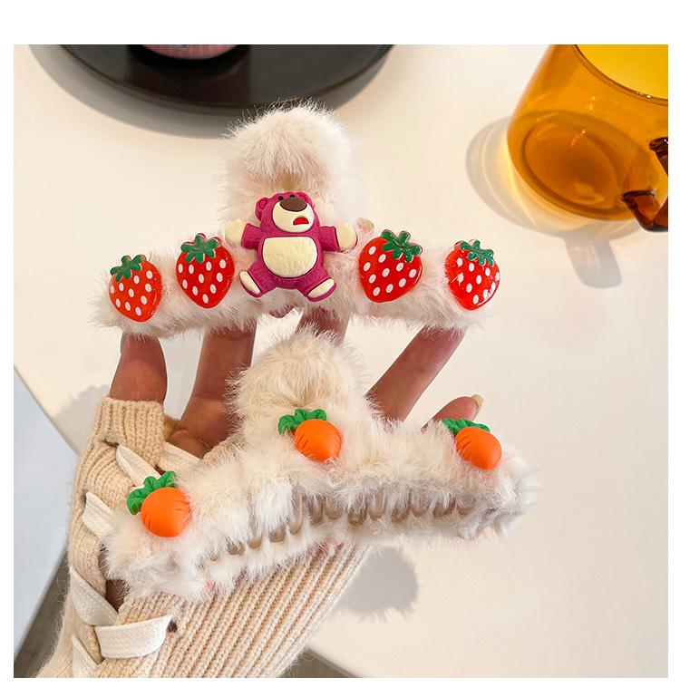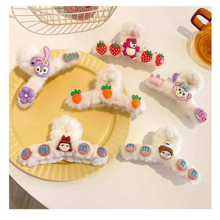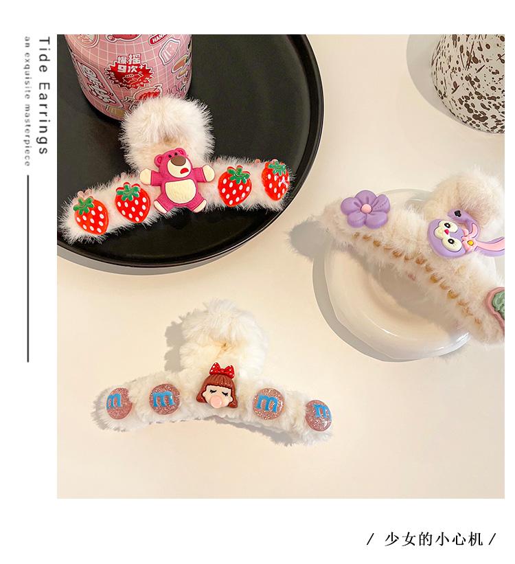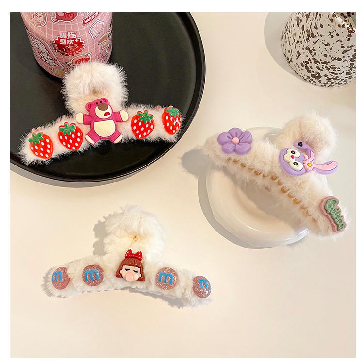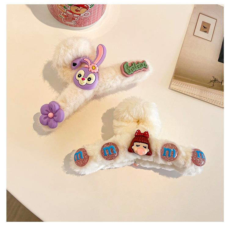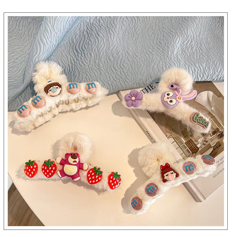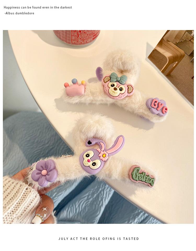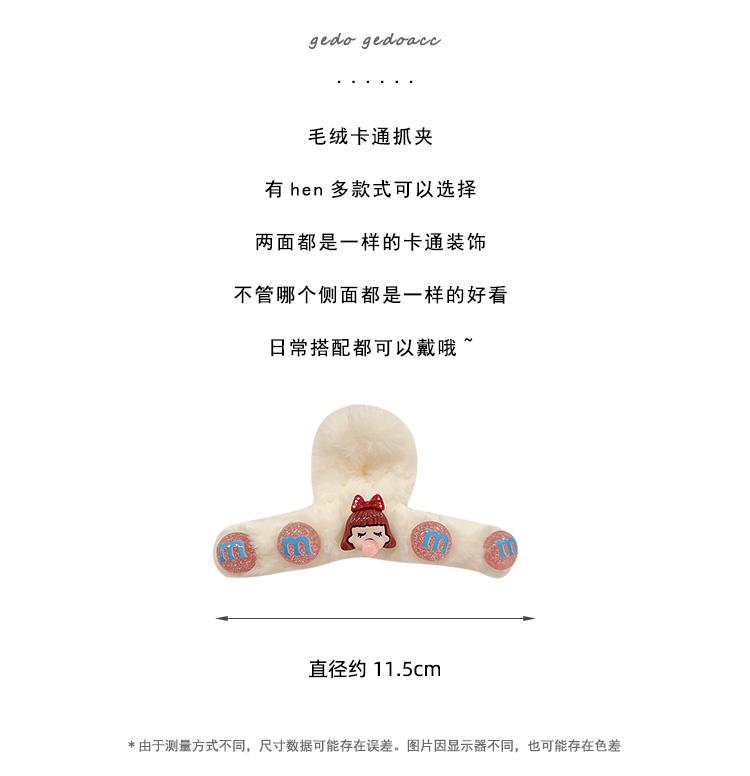 Horquilla para el pelo de felpa con dibujos animados para otoño e invierno, horquilla para la cabeza, pinza de tiburón coreana, horquilla grande para el pelo, tocado