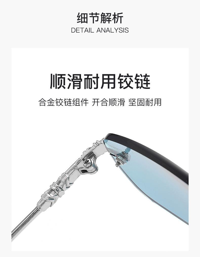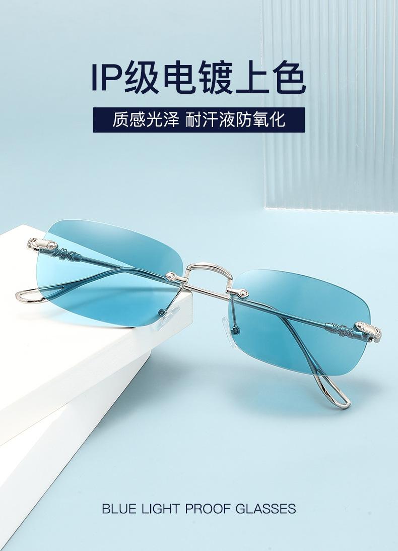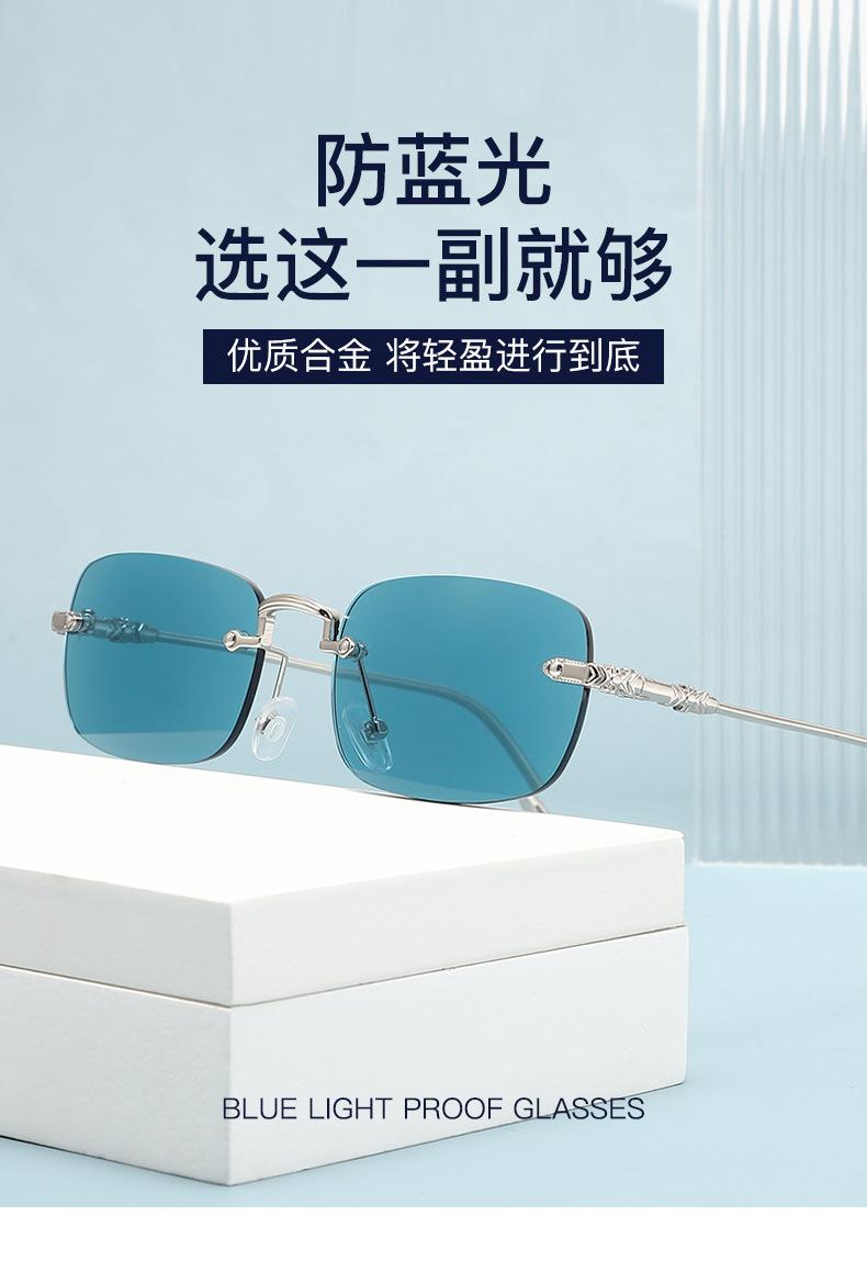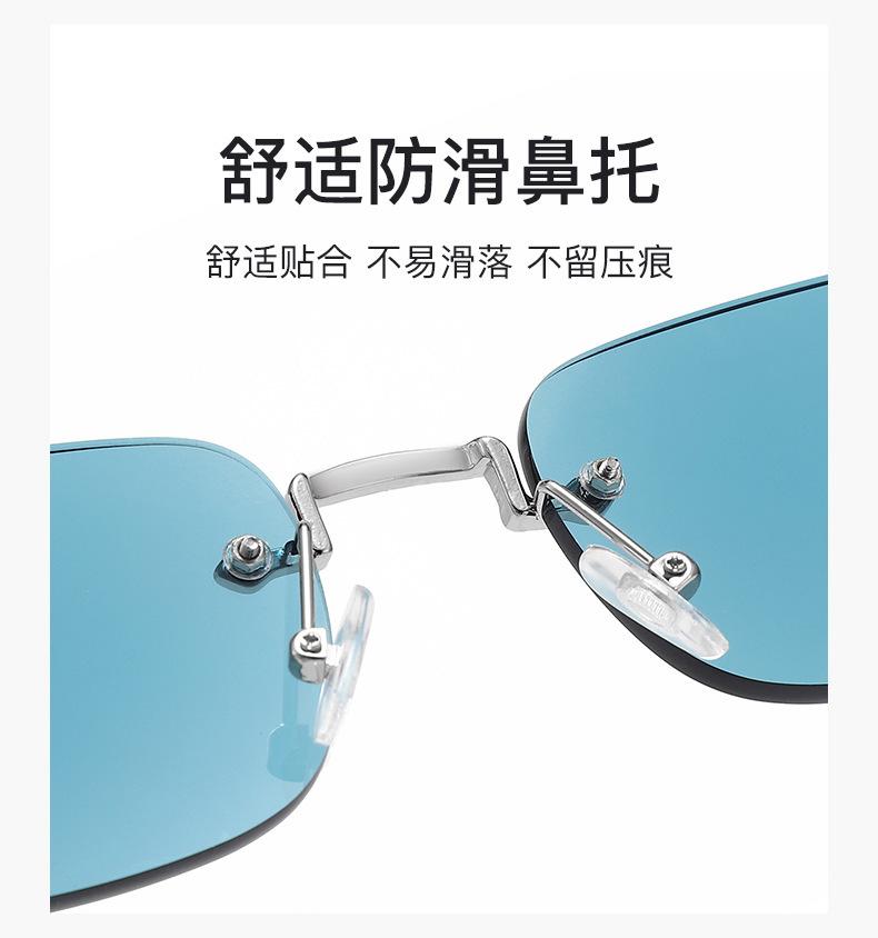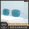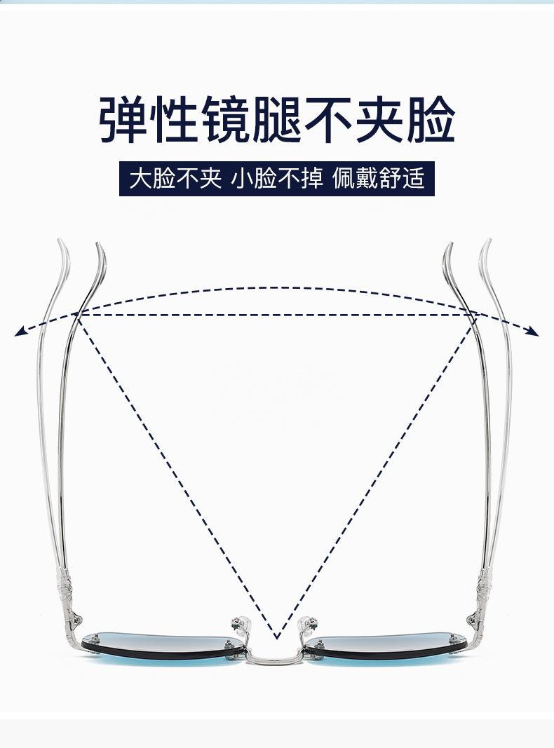 Lentes de Lectura sin Montura con Luz Azul, Gafas de Sol para Negocios, Gafas de Sol, Mismo Estilo que Celebridades de Internet, Polígono sin Montura con Corte al Borde Gris que Cambia de Color
