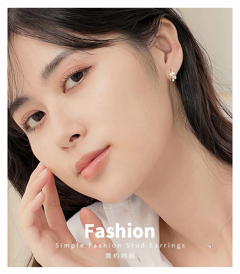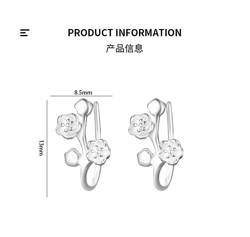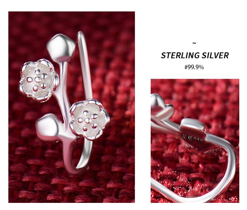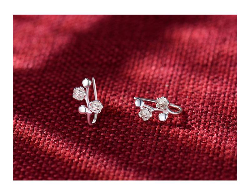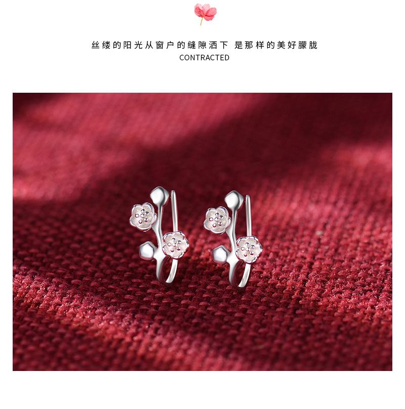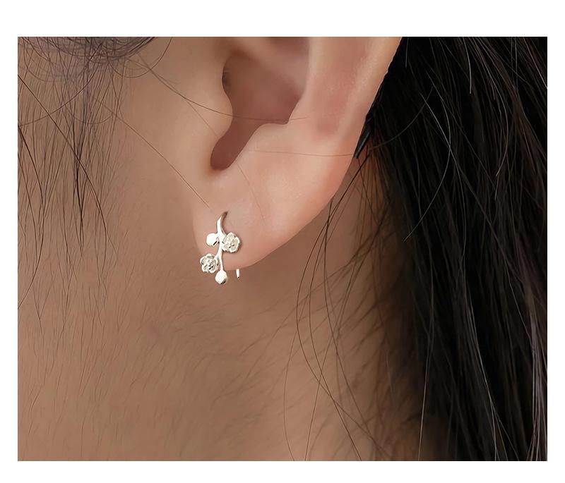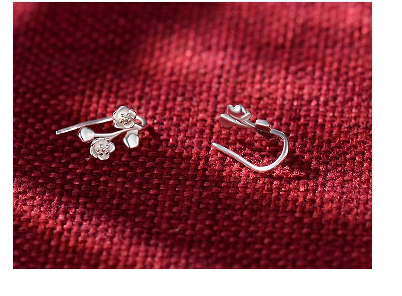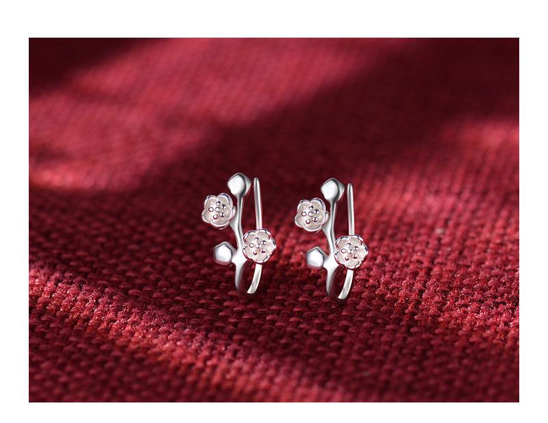 Pendientes de flor de ciruelo para mujer, plata S999, moda que combina con todo, clavos de hueso de oreja, perforación de oreja simple, diseño de nicho, gancho para oreja, joyería