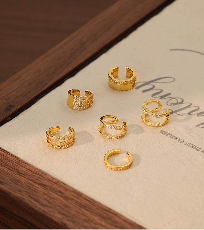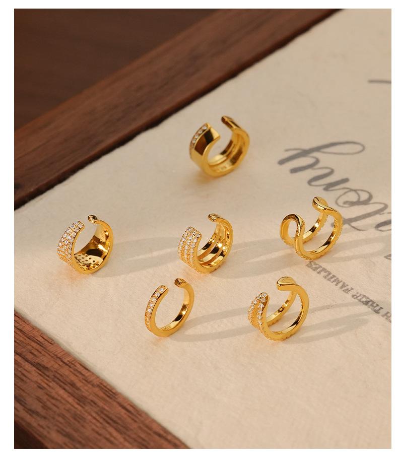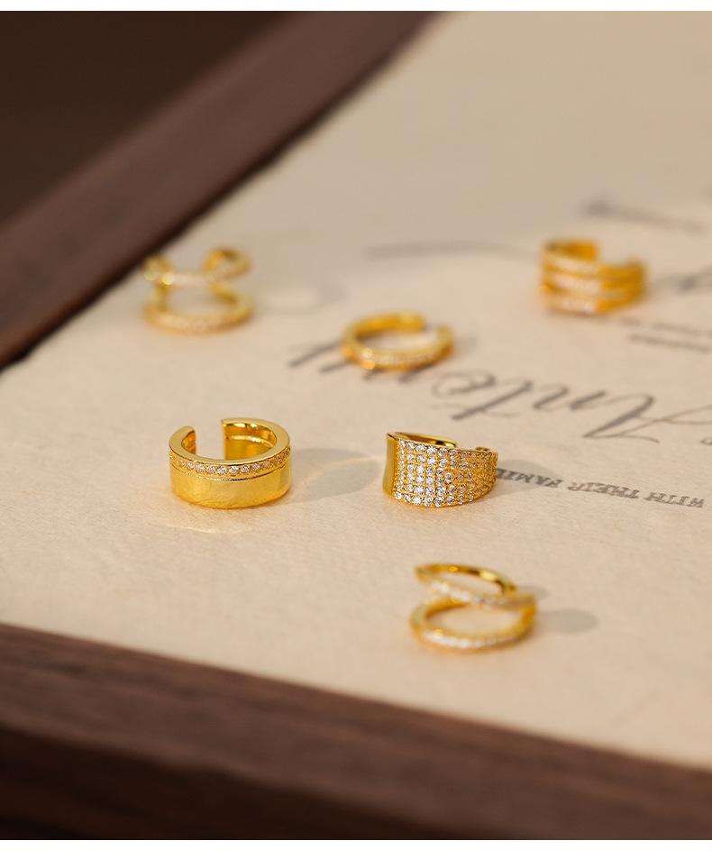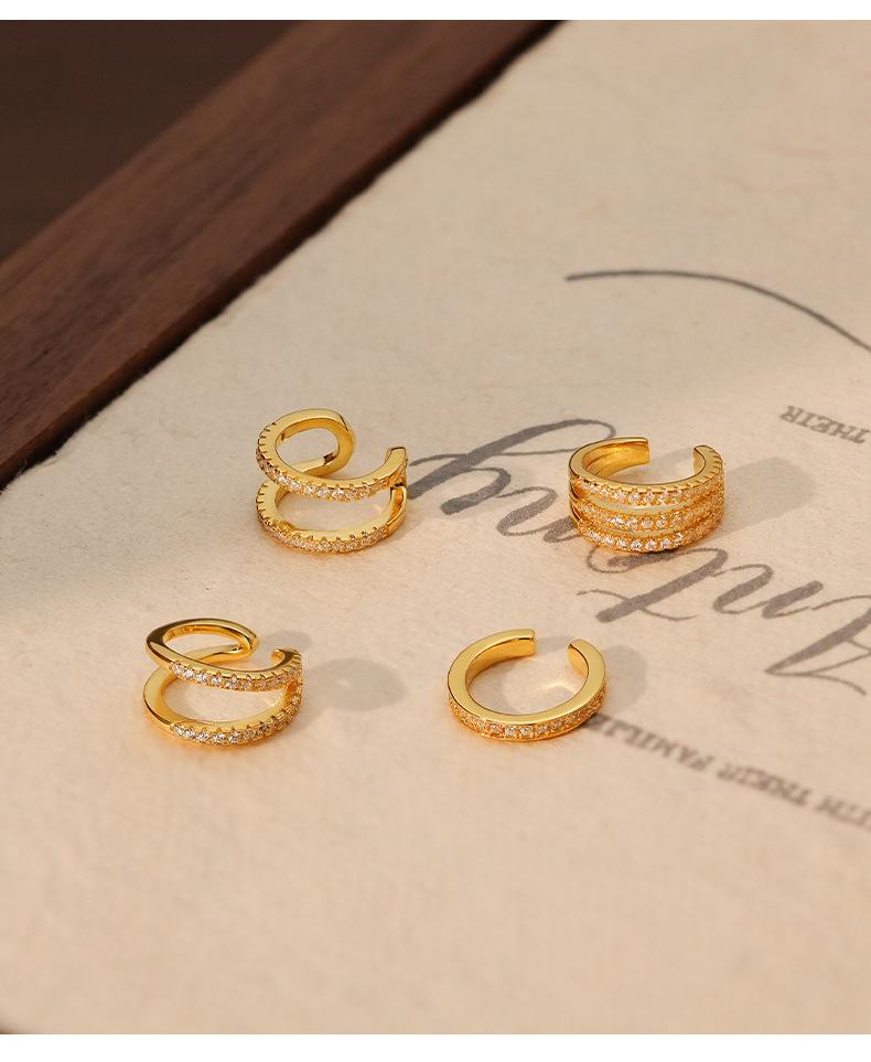 Clips de Oreja Populares Transfronterizos Europeos y Americanos de Doble Capa con Circonitas para Mujeres Plata Esterlina S925 Versátiles Hebillas para Oreja Aretes de Alta Gama
