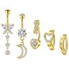 Moda europea y americana anillo para el ombligo doble corazón de durazno flor incrustado circonita anillo para el ombligo venta al por mayor transfronteriza joyería para perforación ahora