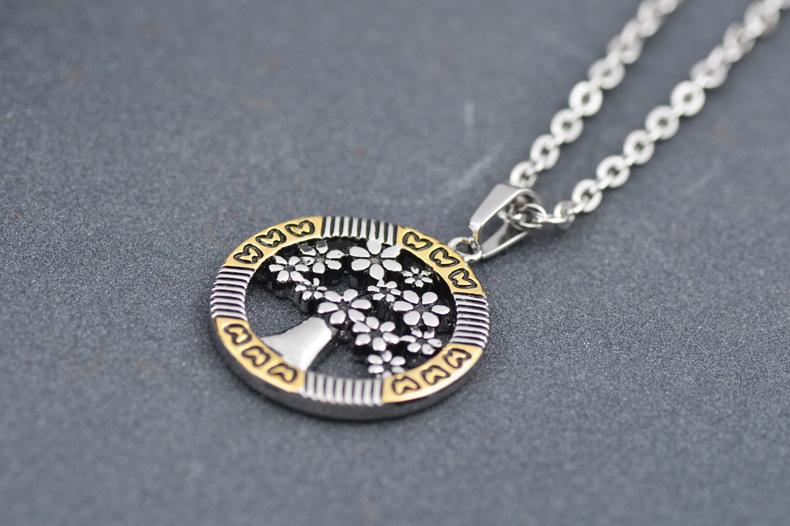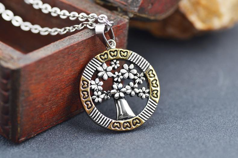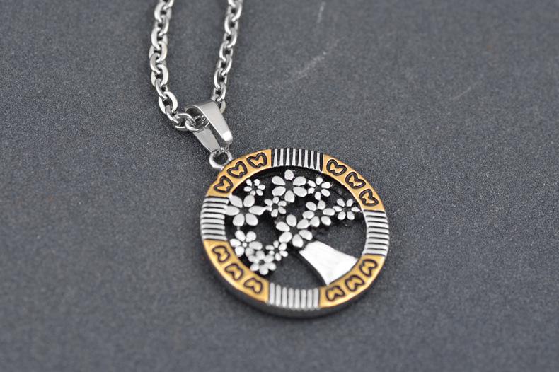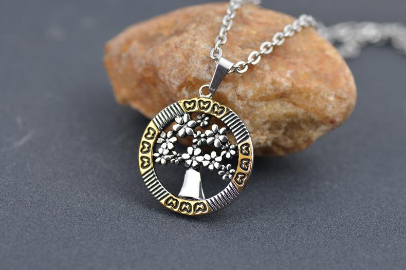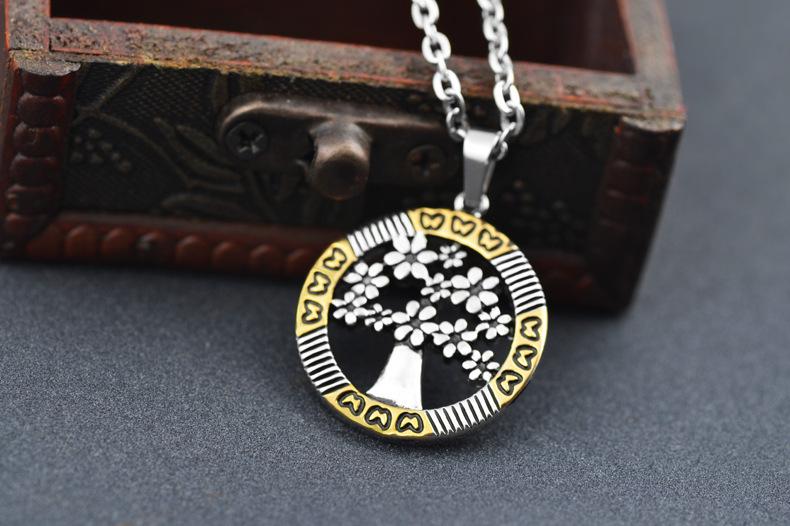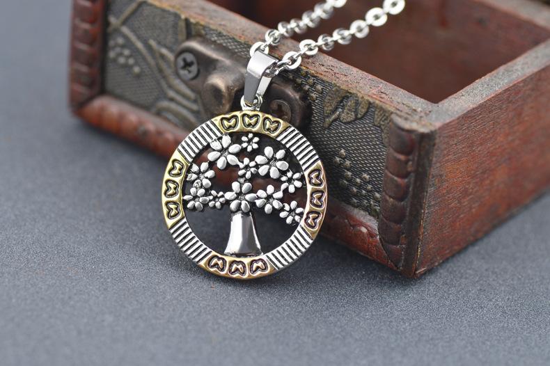 Colgante de acero inoxidable, joyería, collar de árbol de la vida dorado, collar hueco de moda retro personalizado, comercio exterior europeo y americano