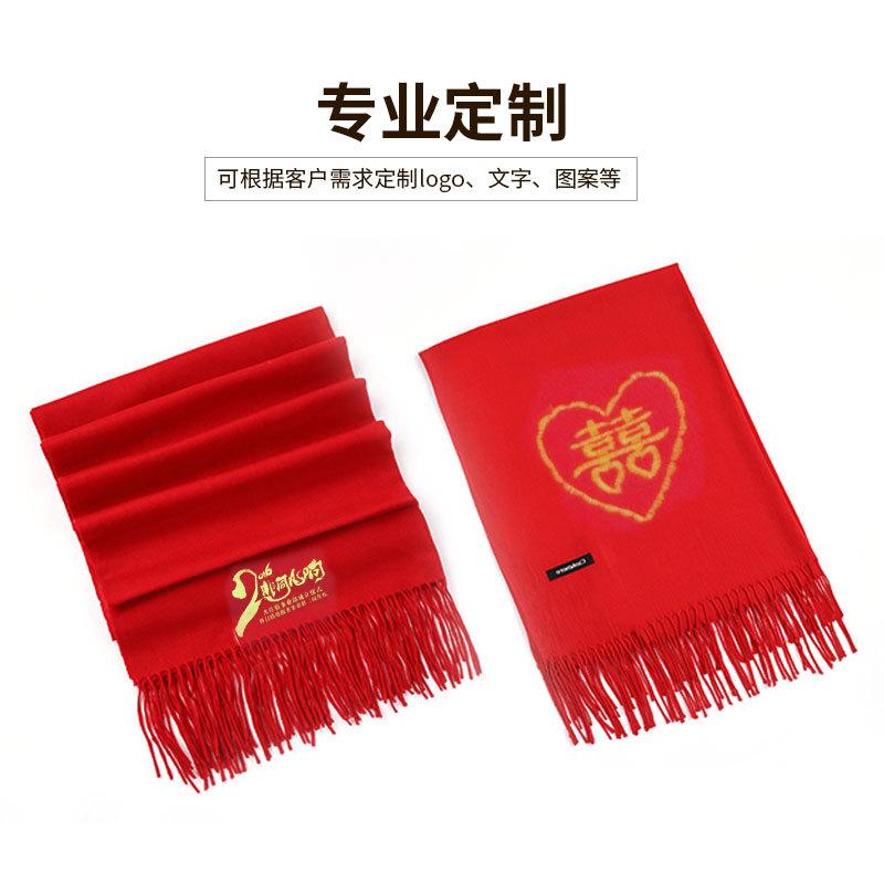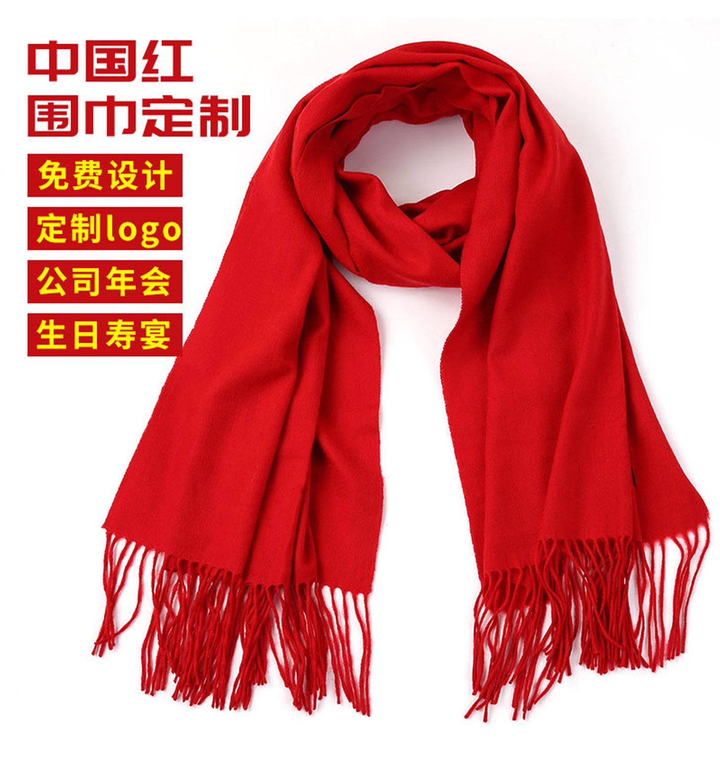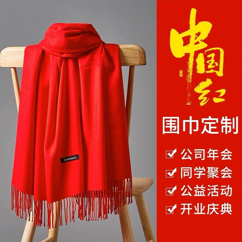 Bufanda roja china con logotipo personalizado bordado con impresión para reuniones anuales, regalos para eventos y fiestas estudiantiles, bufanda roja personalizada