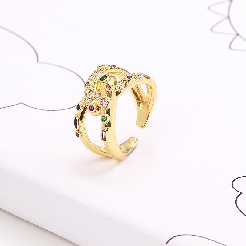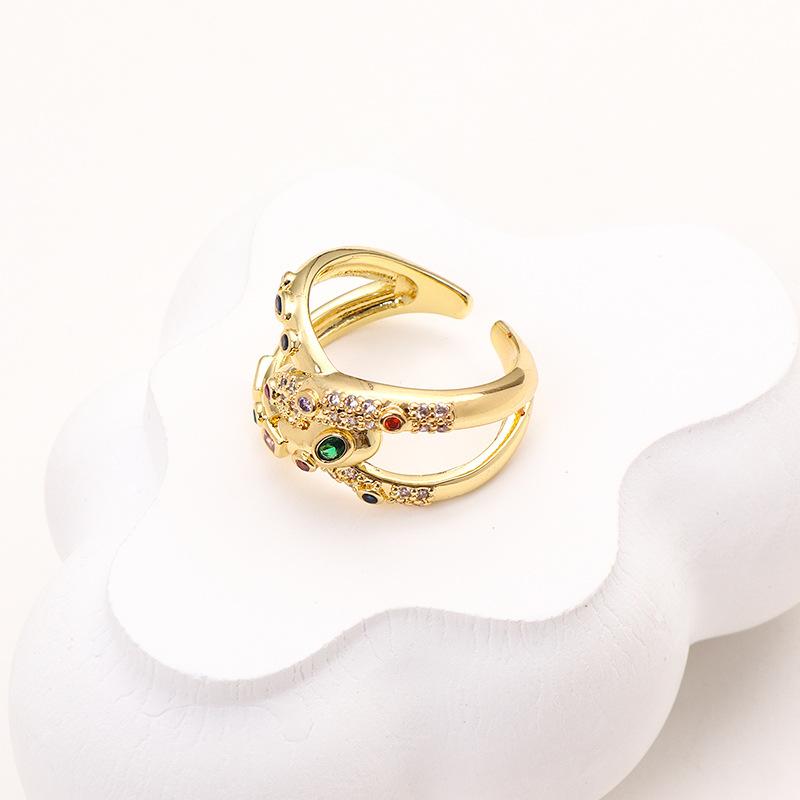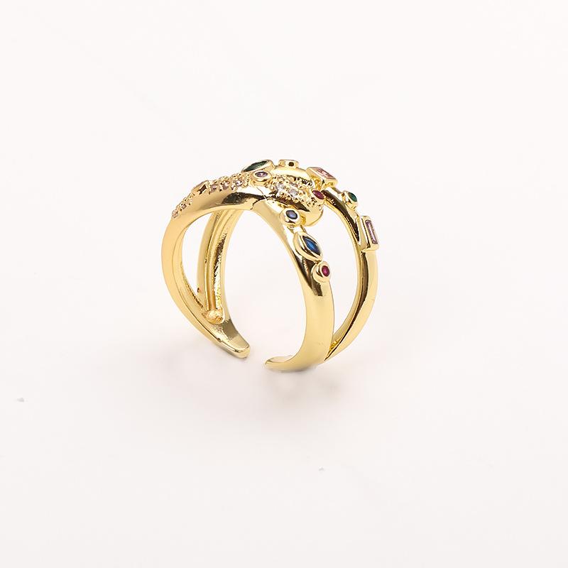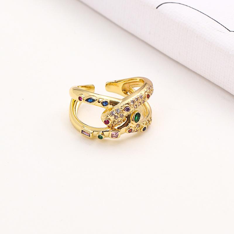 Joyería de Mano Popular de Estilo Geométrico Frío Europeo y Americano Anillo de Cobre con Micro-incrustaciones de Zircón Anillo Abierto Anillo de Cola Versátil Anillo de Moda