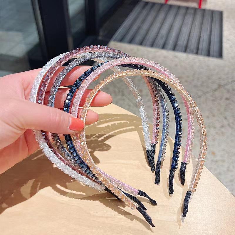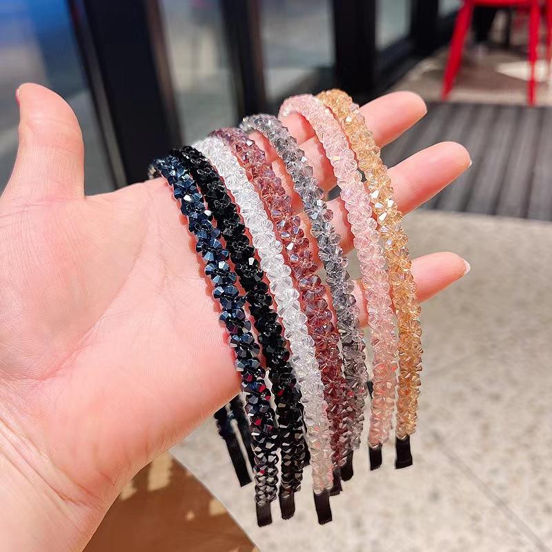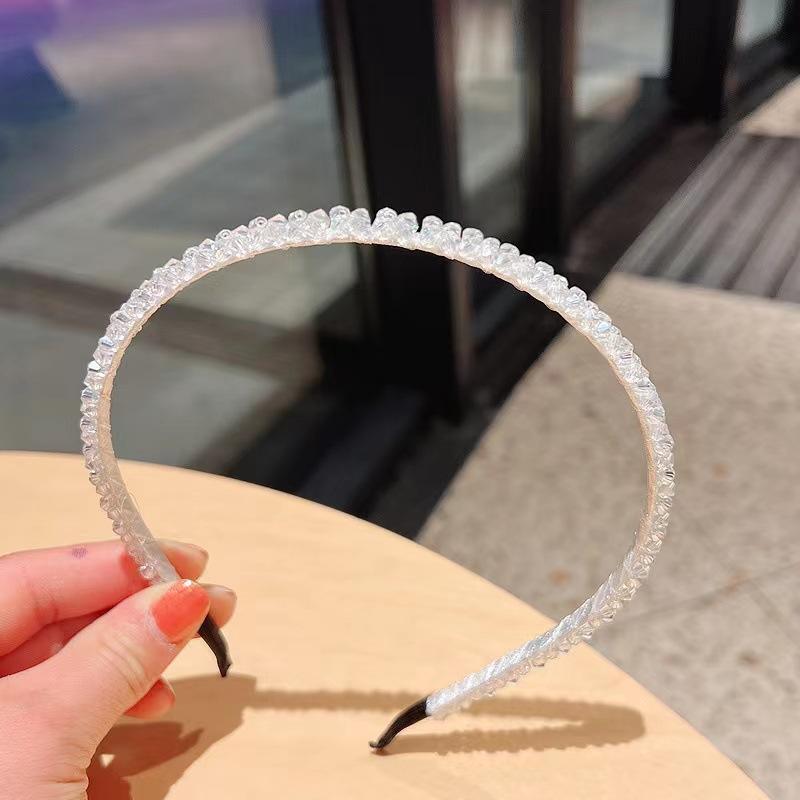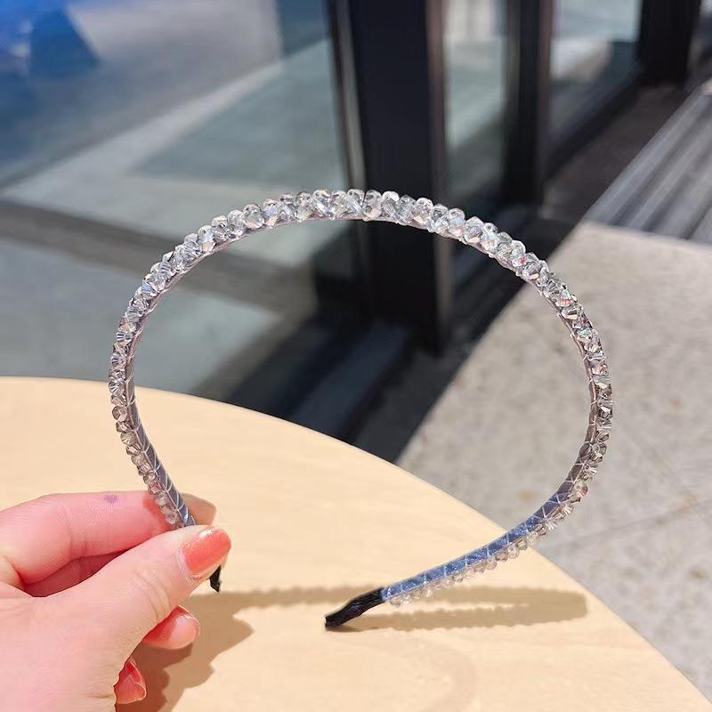 Diadema de cristal de alta calidad con cuentas de línea de pescado, accesorio para el cabello para niña, elegante y dulce, paquete frontal con cabello roto, cueva para el cabello para mujer