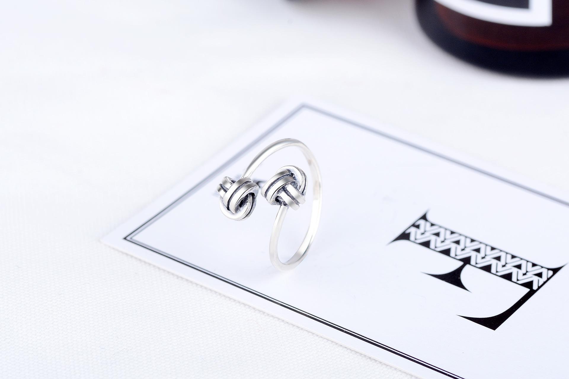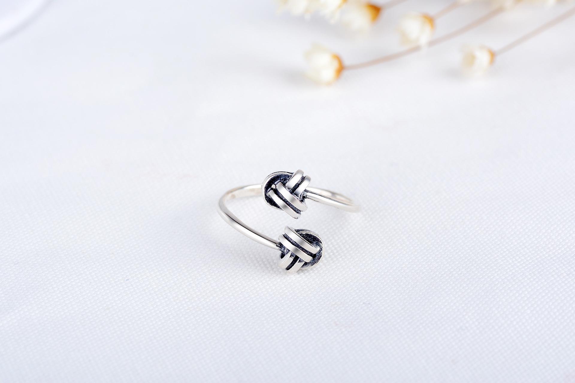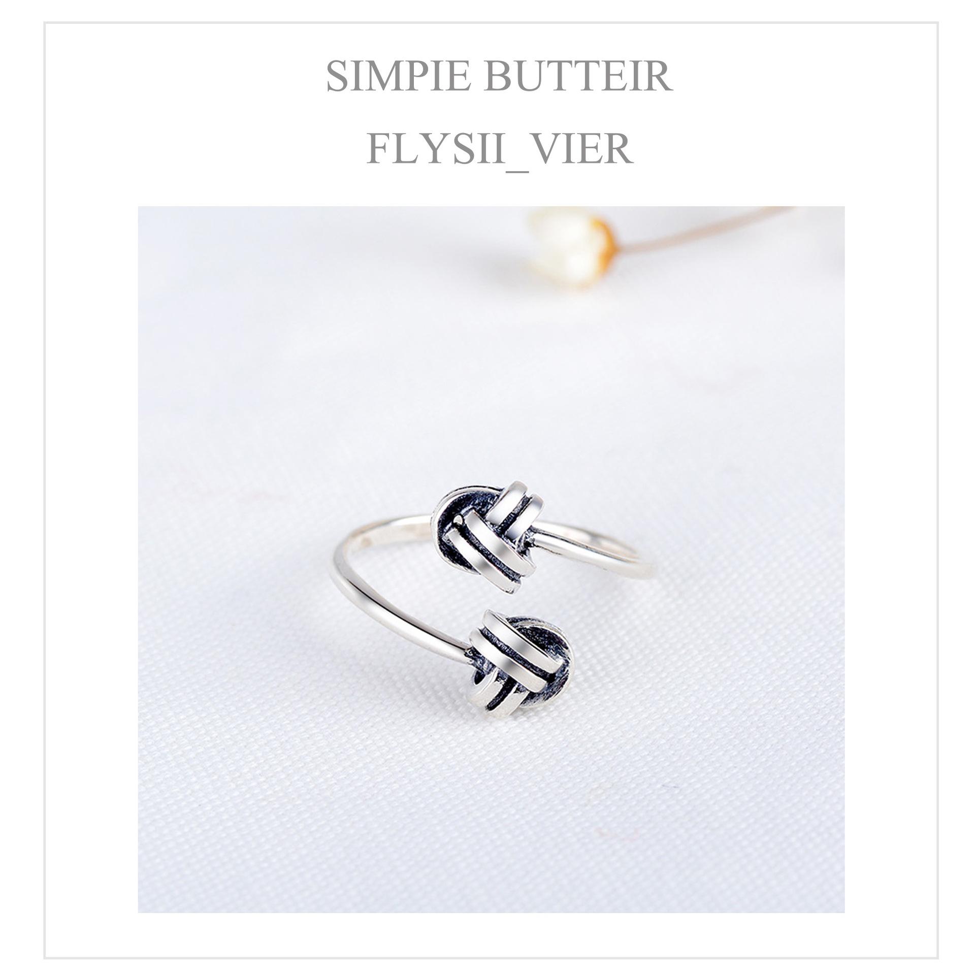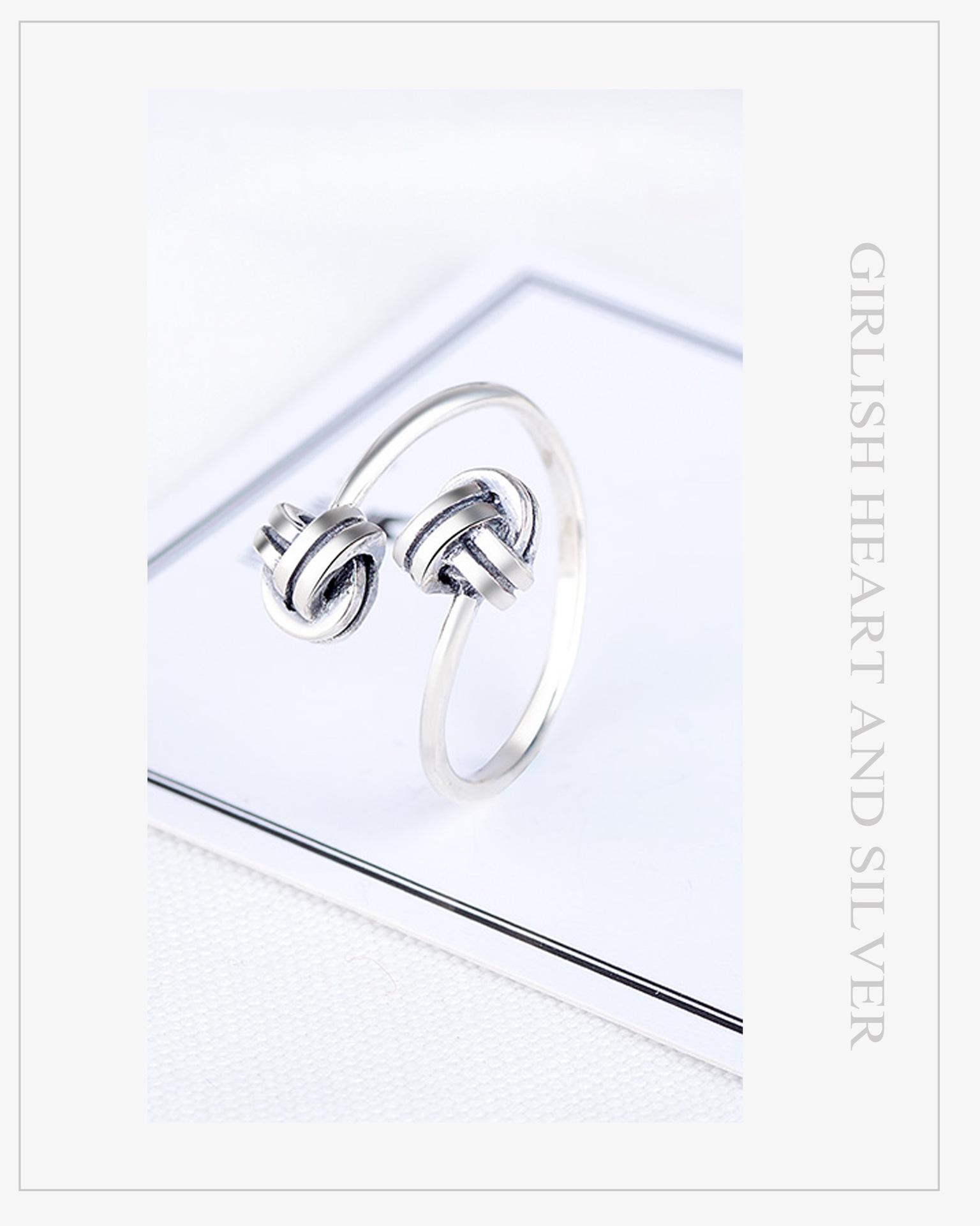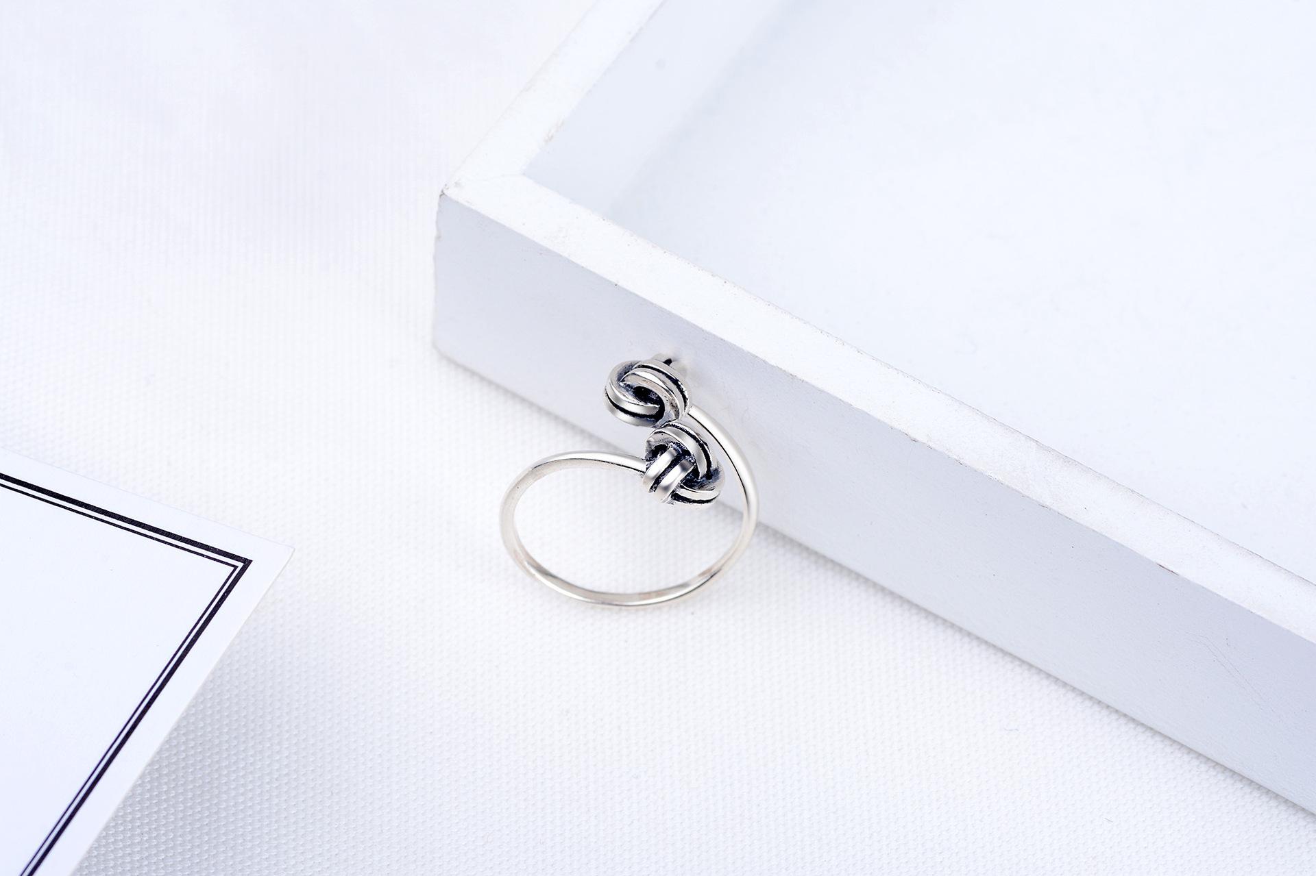 Anillo abierto estilo coreano de plata de ley S925 con doble nudo desgastado vintage para mujer, sencillo y distintivo, joyería tailandesa de plata.