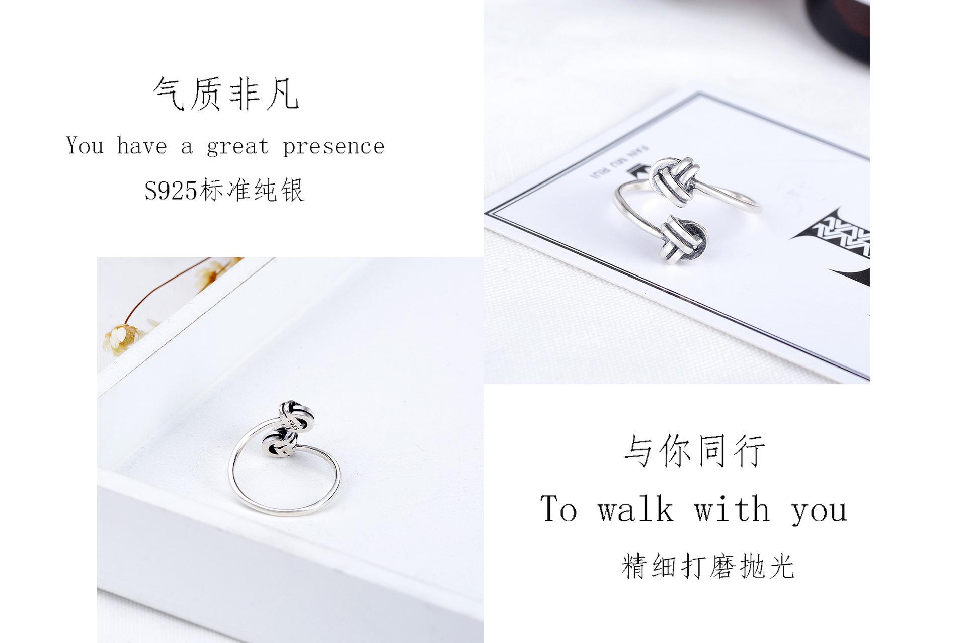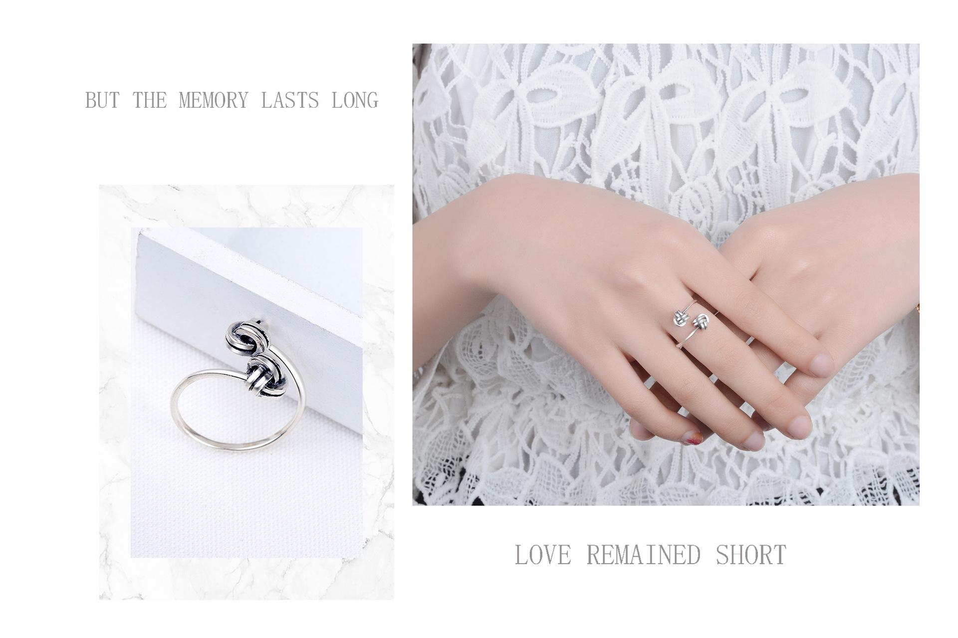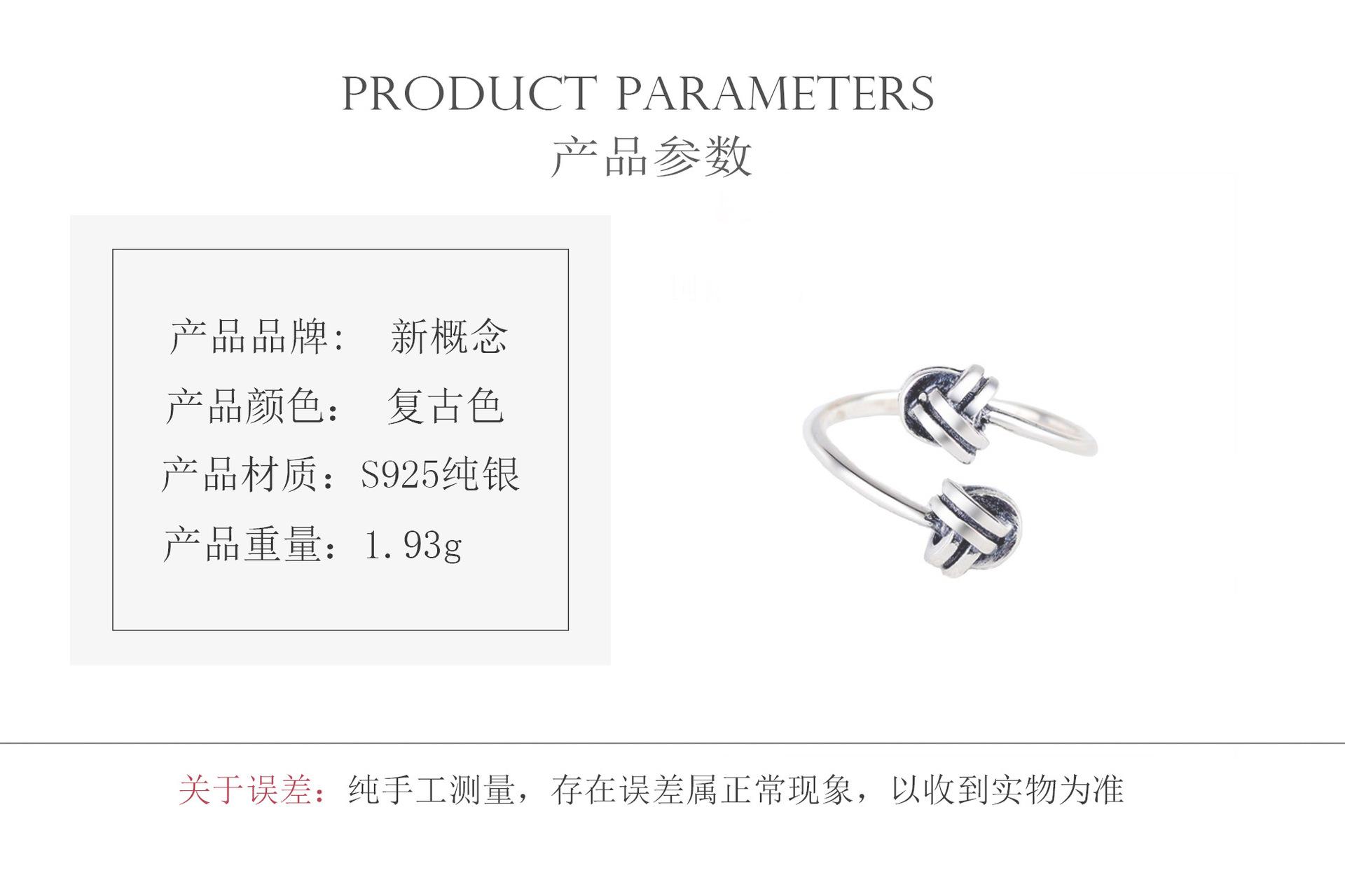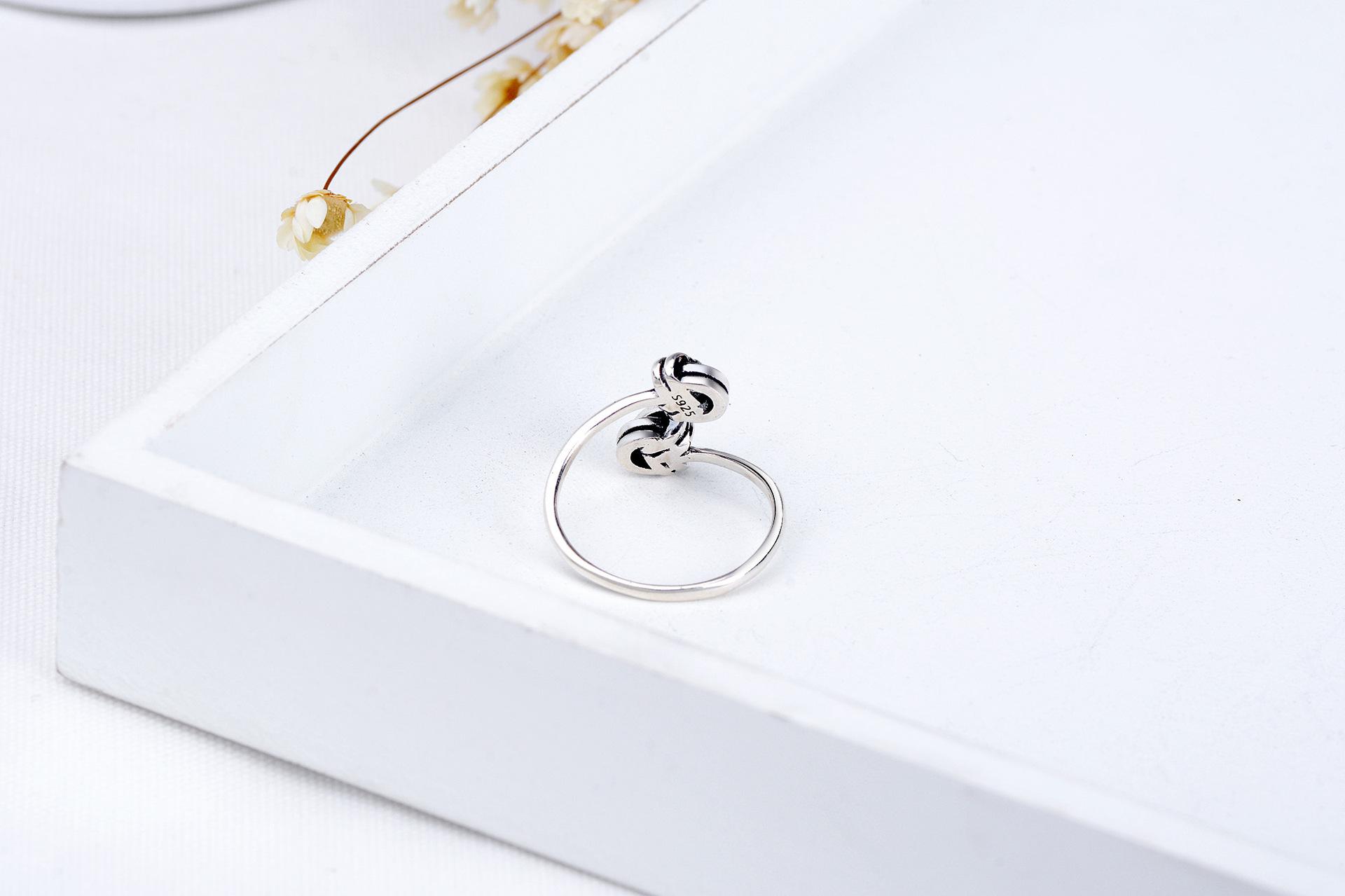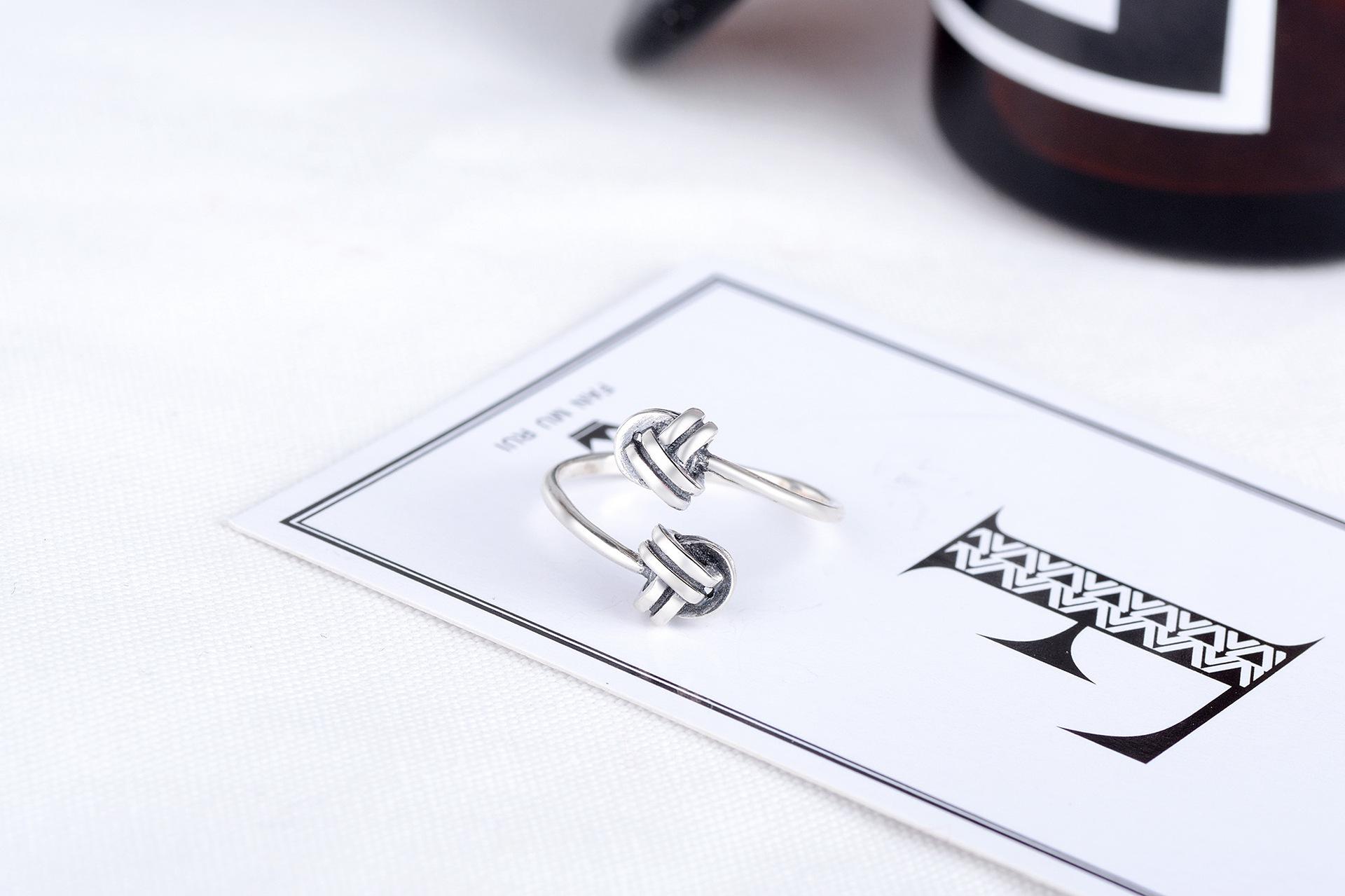 Anillo abierto estilo coreano de plata de ley S925 con doble nudo desgastado vintage para mujer, sencillo y distintivo, joyería tailandesa de plata.