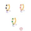 Material: Plata de ley S925 electrochapada en oro/oro blanco, la imagen es de oro, engastada con circonita, peso aproximado 1.1 gramos. El tamaño de la piedra principal es de aproximadamente 2.0 mm, el diámetro interior del pendiente es de aproximadamente 8 mm y el tamaño del pendiente es de aproximadamente 12*12 mm