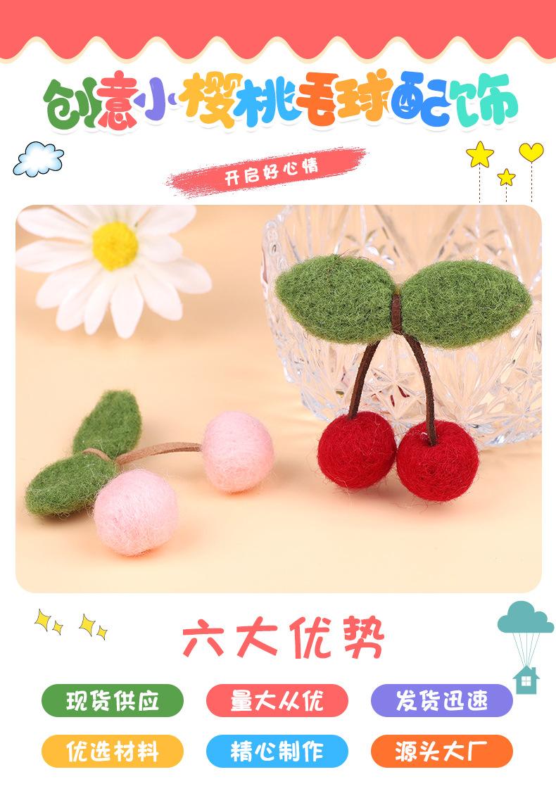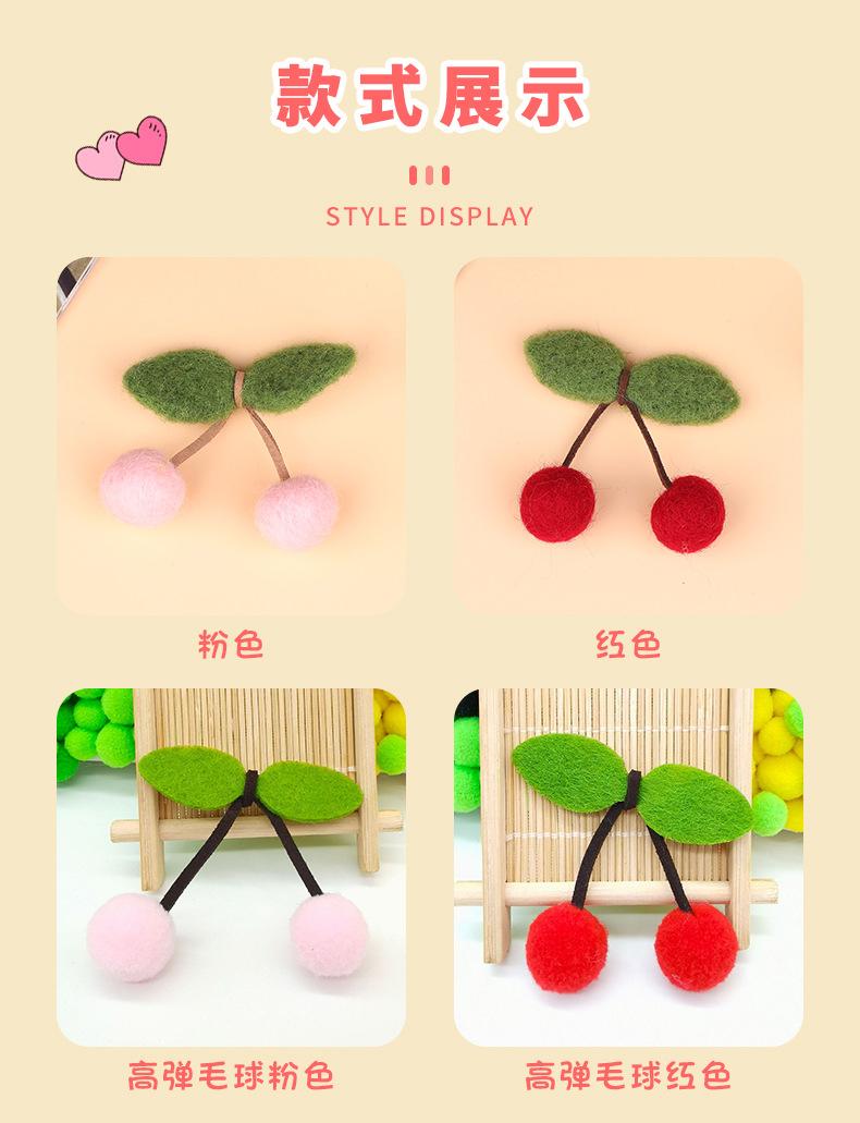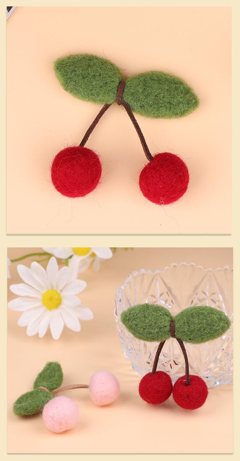 Accesorios para el cabello con forma de cereza, hechos a mano, con forma de bola de cereza, horquillas, fieltro, fabricantes de bolas de pelo.