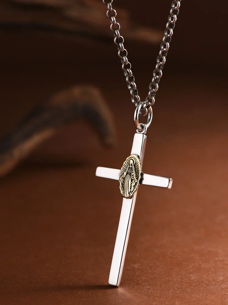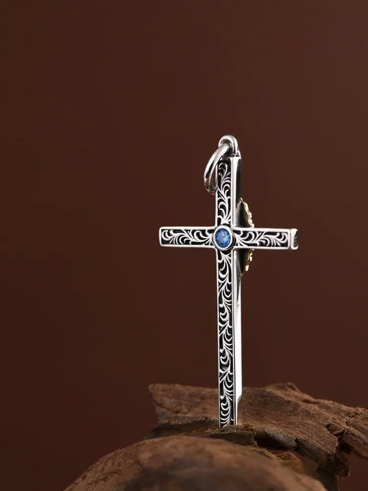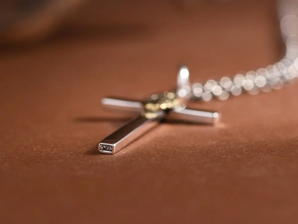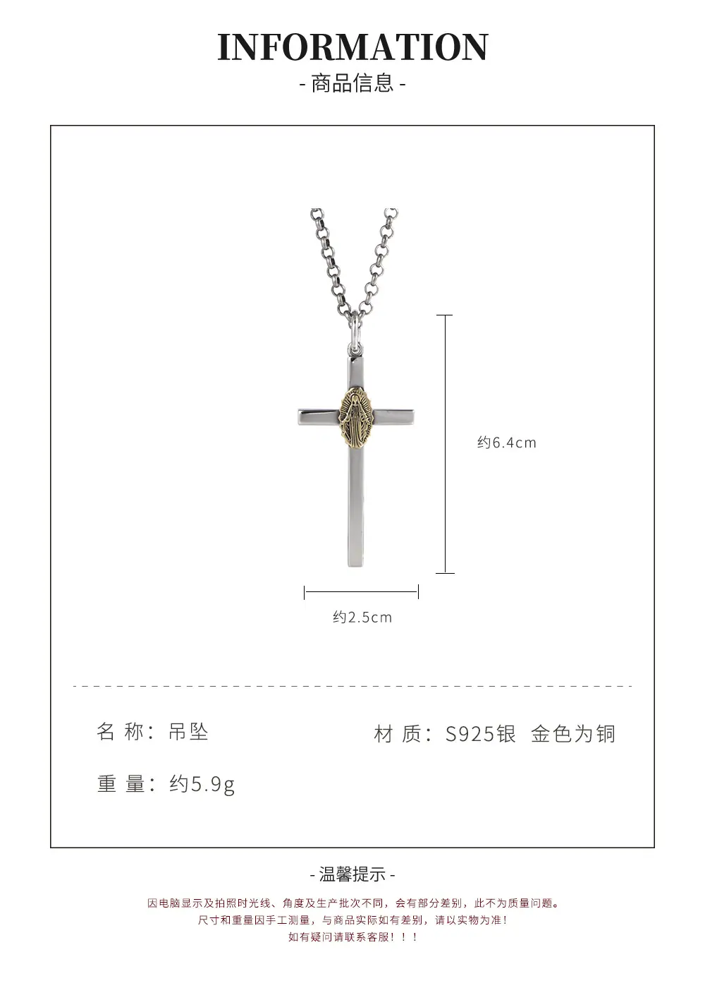 Colgante de cruz de plata S925 de King of Deer, estilo vintage, antiguo, punk, sencillo y con borde cruzado.