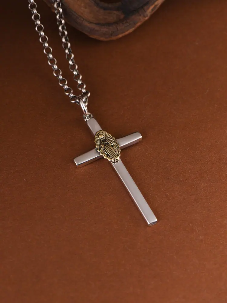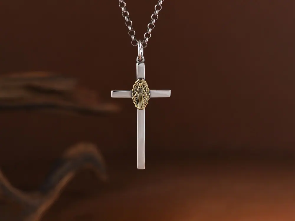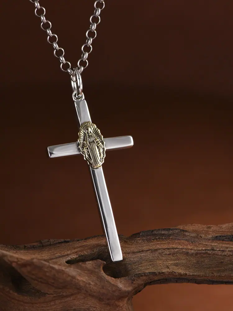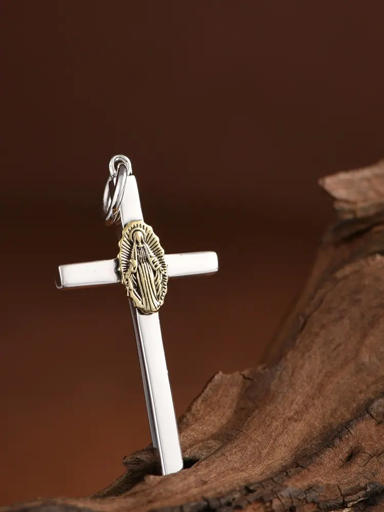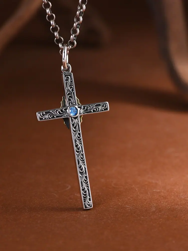 Colgante de cruz de plata S925 de King of Deer, estilo vintage, antiguo, punk, sencillo y con borde cruzado.