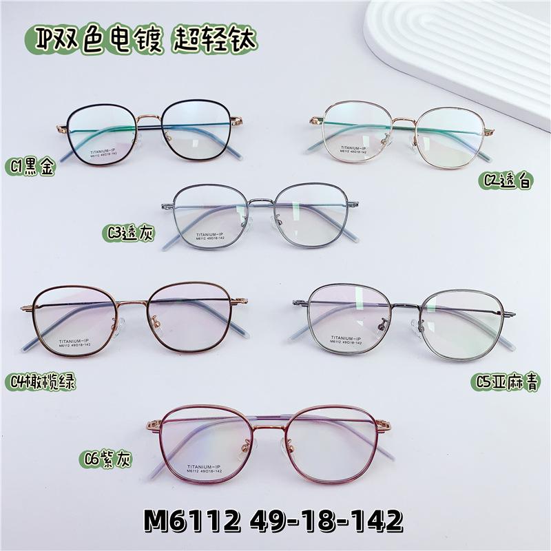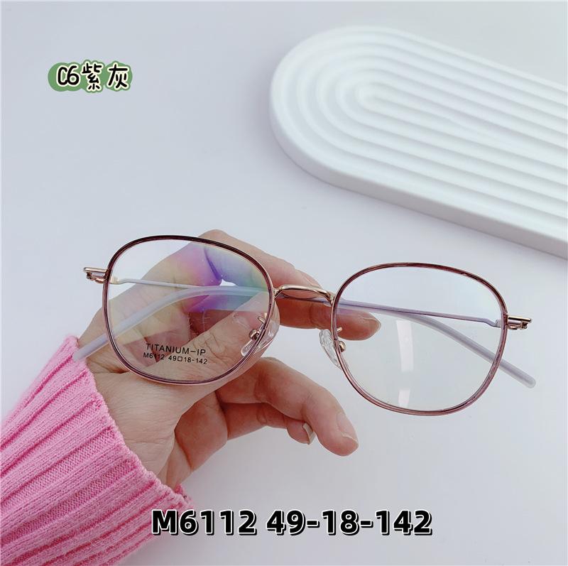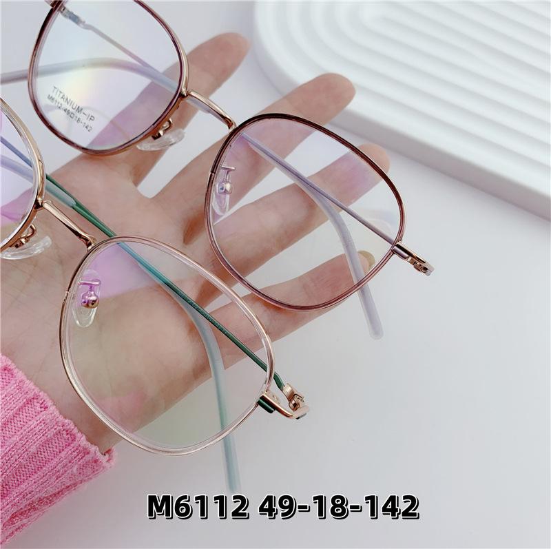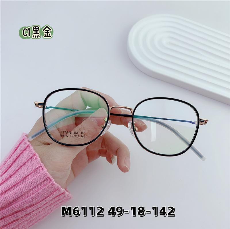 Nuevo armazón de gafas retro de semititanio mezclado con pegamento dorado, armazón de gafas planas para miopía que se puede equipar con número de altura al por mayor M6112