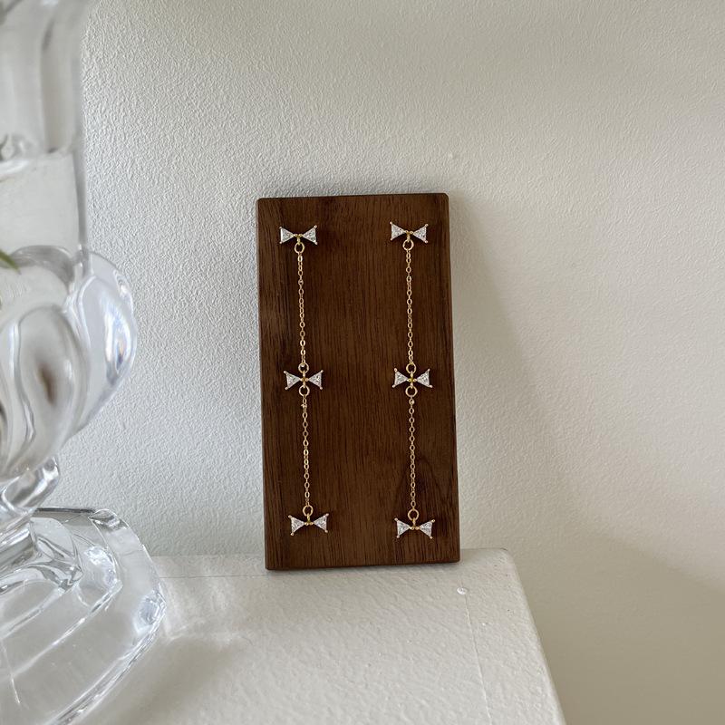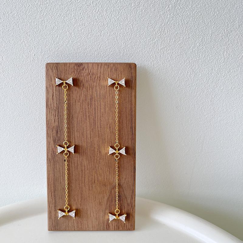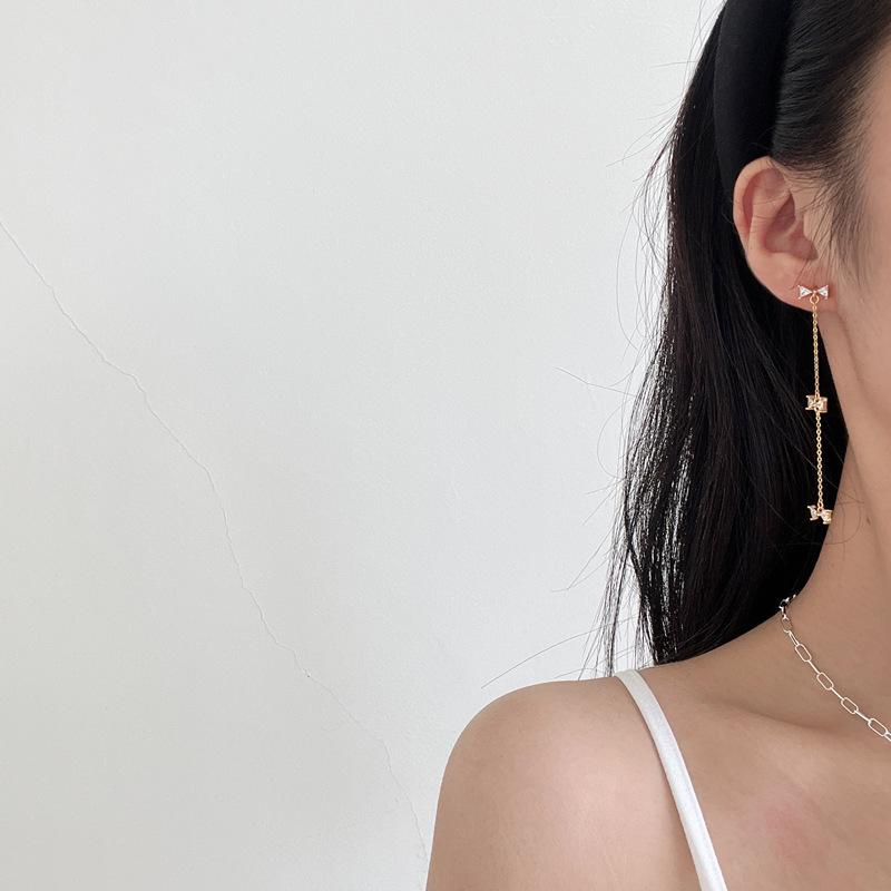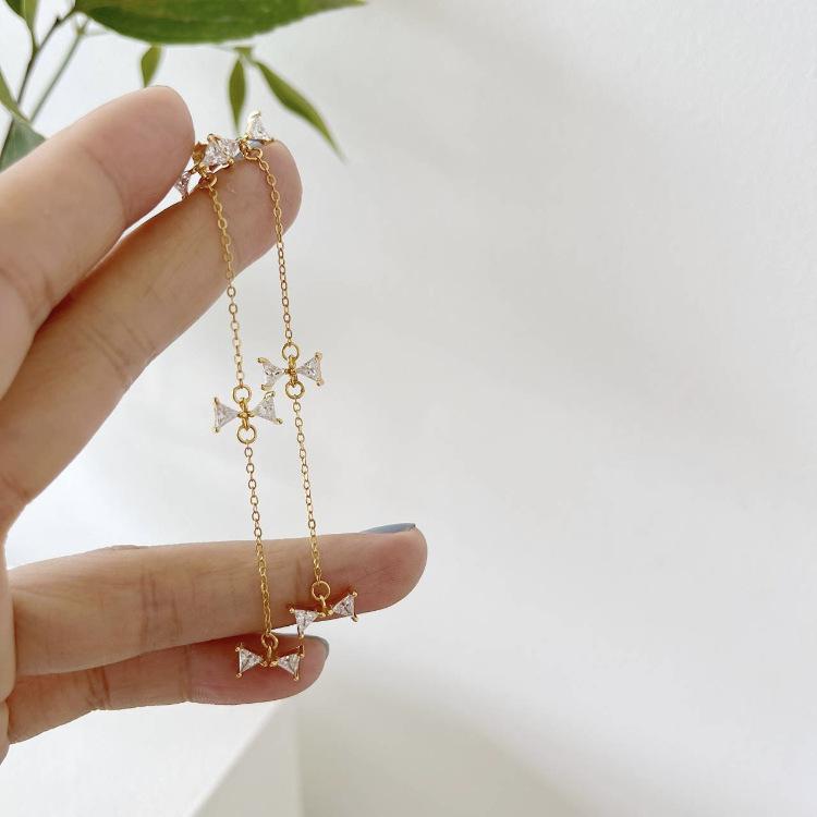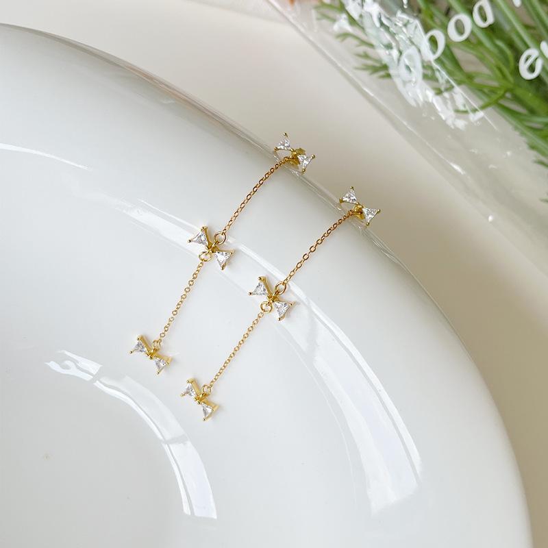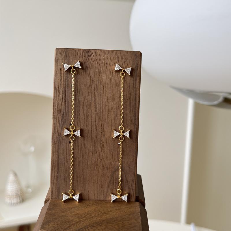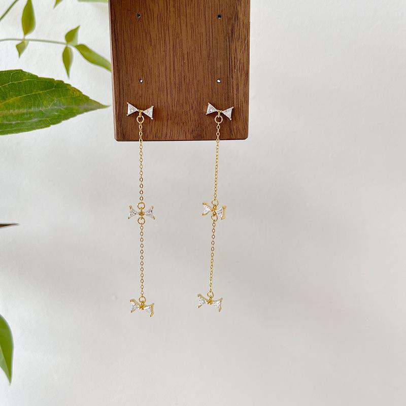 Pendientes de plata de ley S925 con diseño de lazo dorado y circonitas, estilo coreano, de Kashite, con personalidad y temperamento.