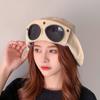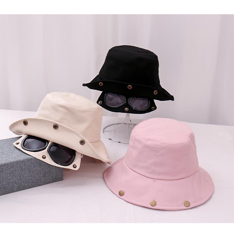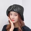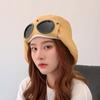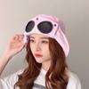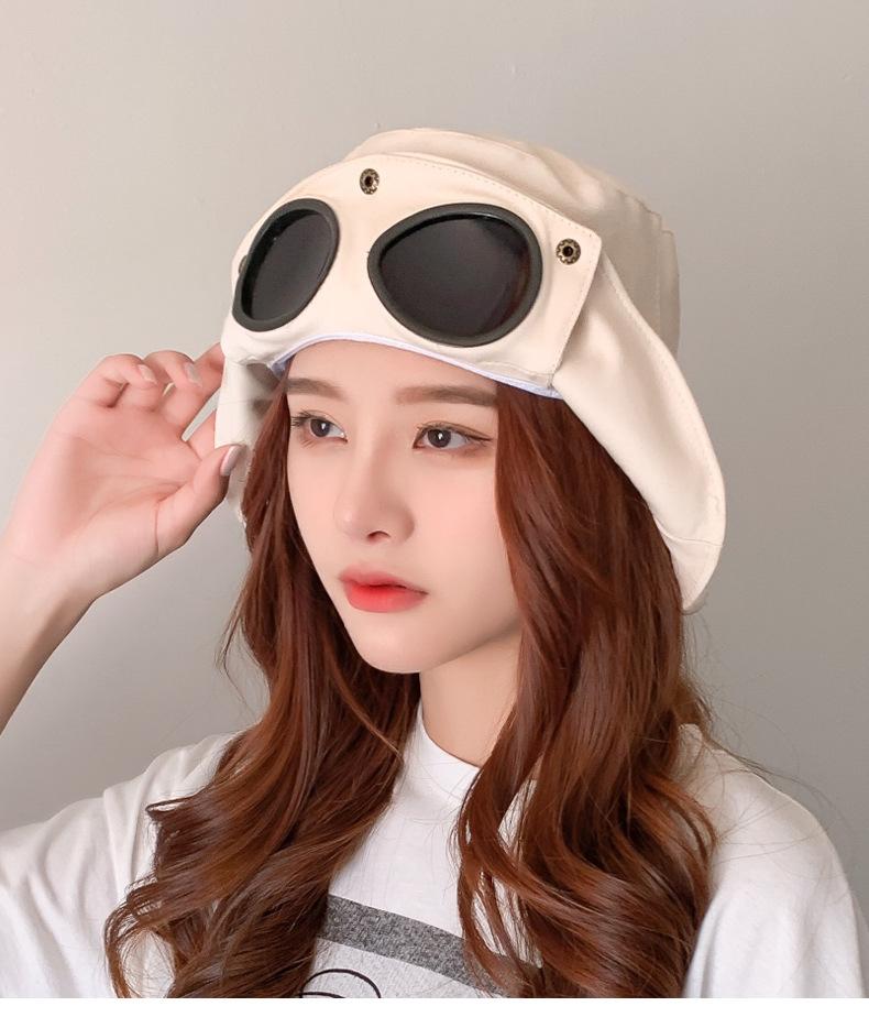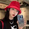 Sombrero surcoreano para mujer, nuevo sombrero rojo de red con ala grande, plegable, estilo nicho, con gafas de piloto, sombrero de pescador con personalidad.