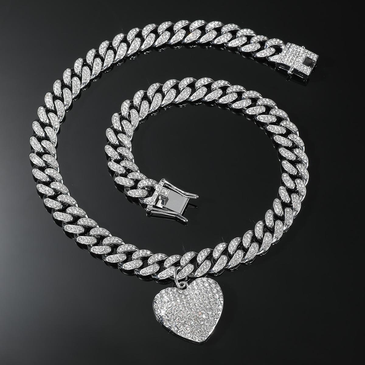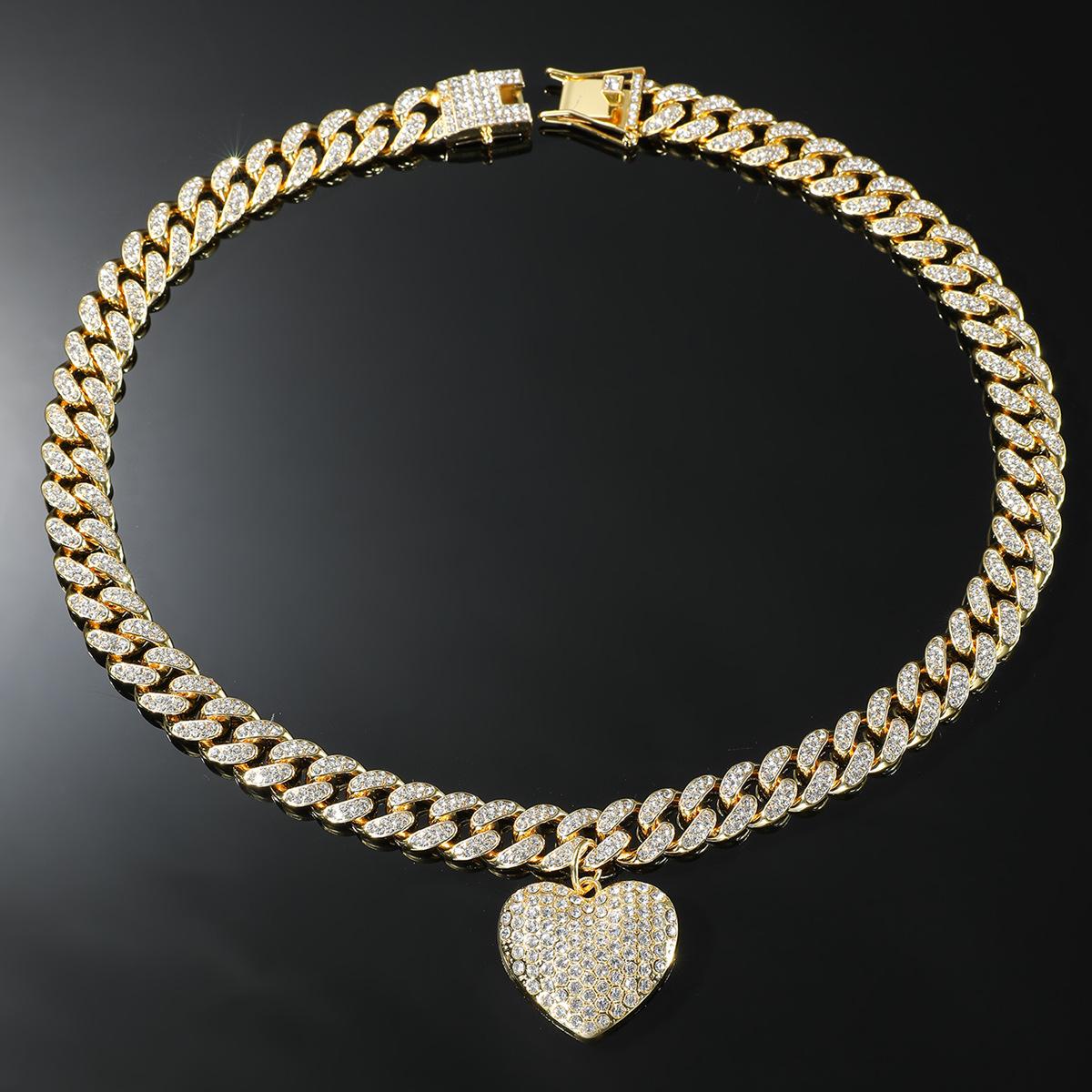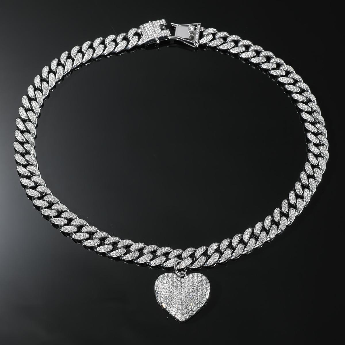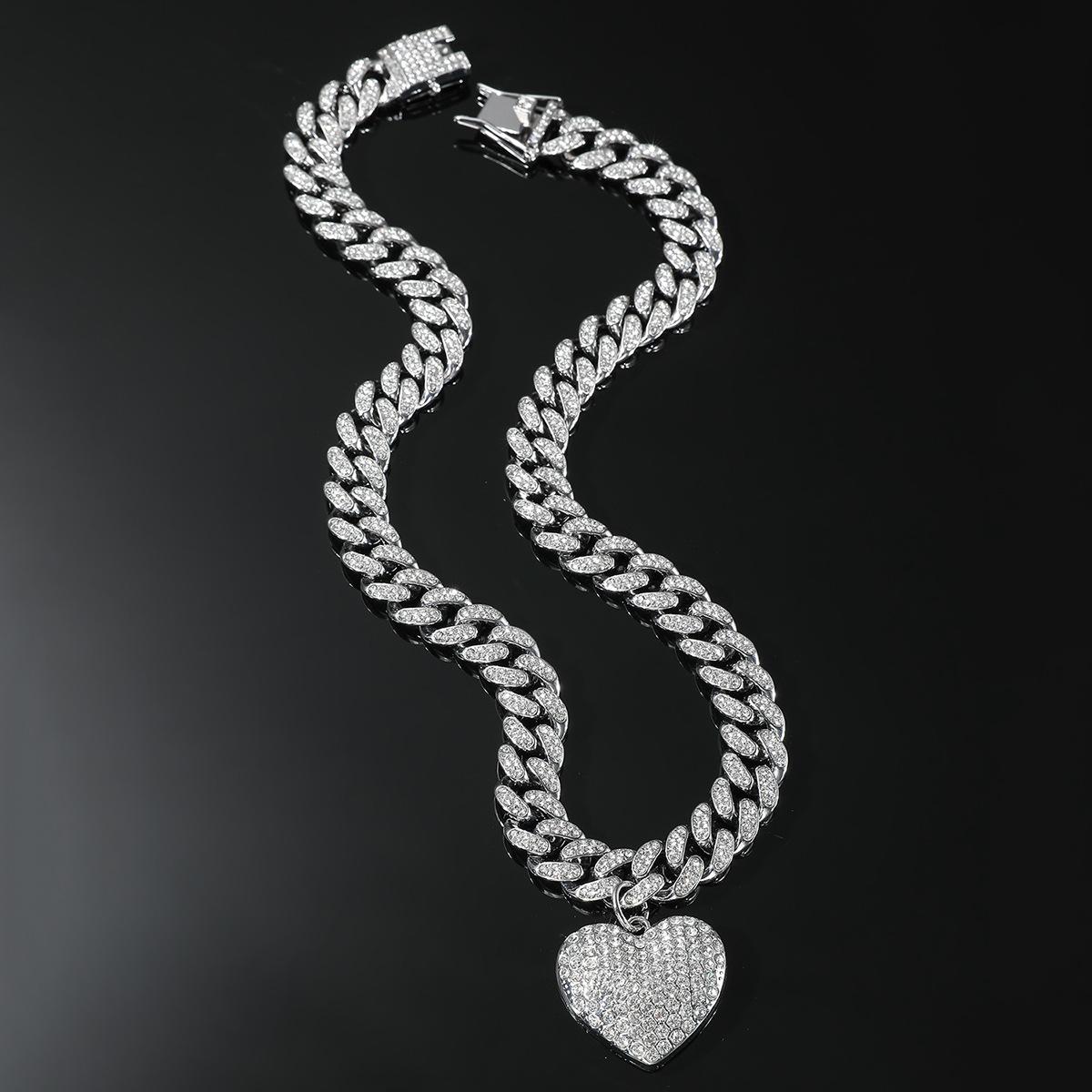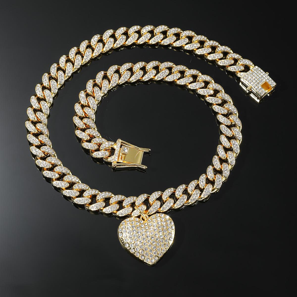 Collar dominante para hombre con colgante de letra de diamante completo, cadena cubana ancha, estilo hip hop, hip-hop, baile callejero europeo y americano