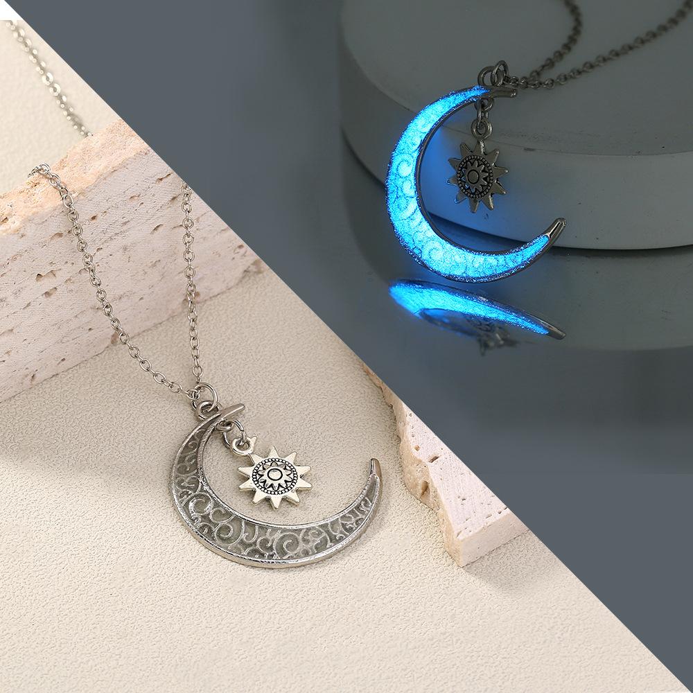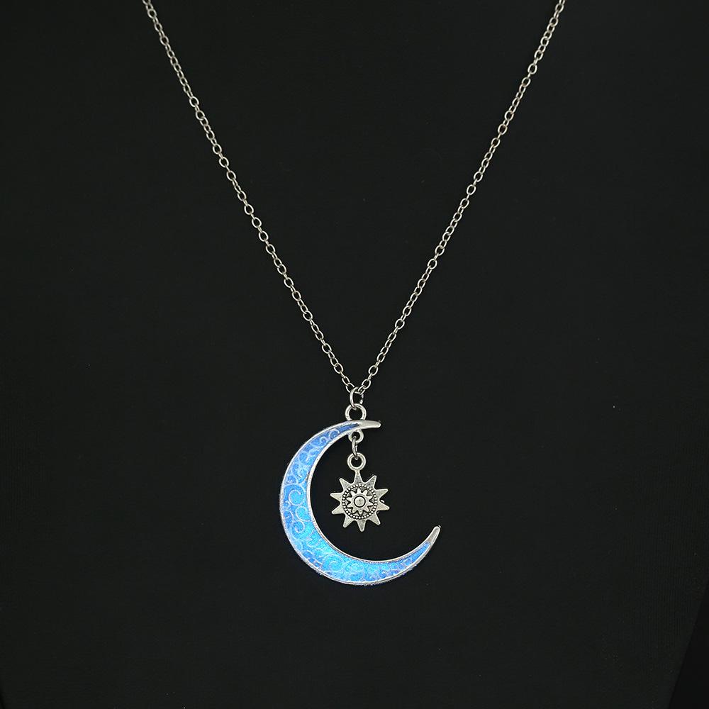Joyería Creativa Clásica de Luna Europea y Americana Extraña Noche Luna Luminosa Girasol Colgante Collar ins