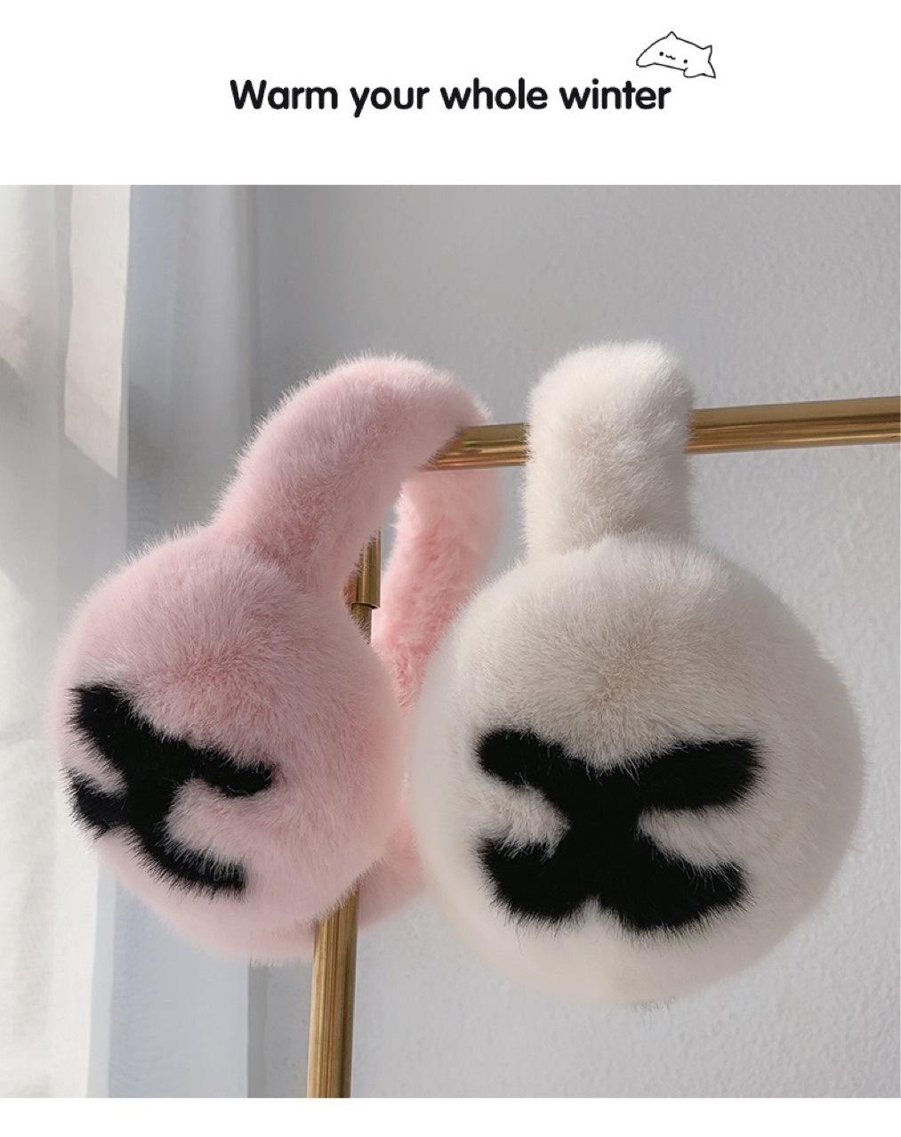 Orejeras cálidas de doble C, orejeras de invierno, nuevas orejeras de felpa de invierno para dormitorio de estudiantes, versión coreana para proteger contra el clima frío helado, cálidas para mujeres