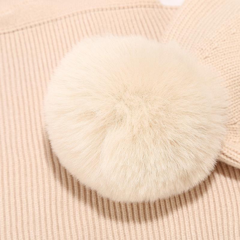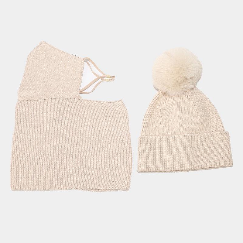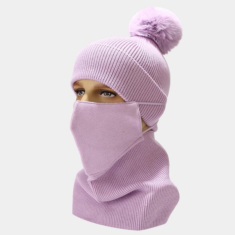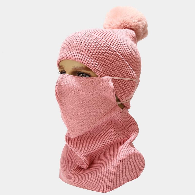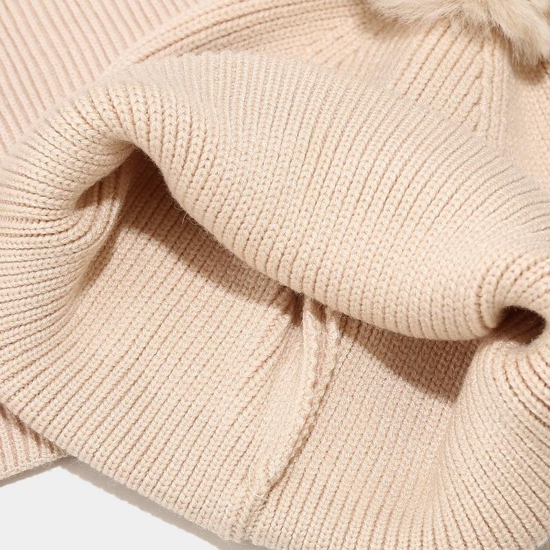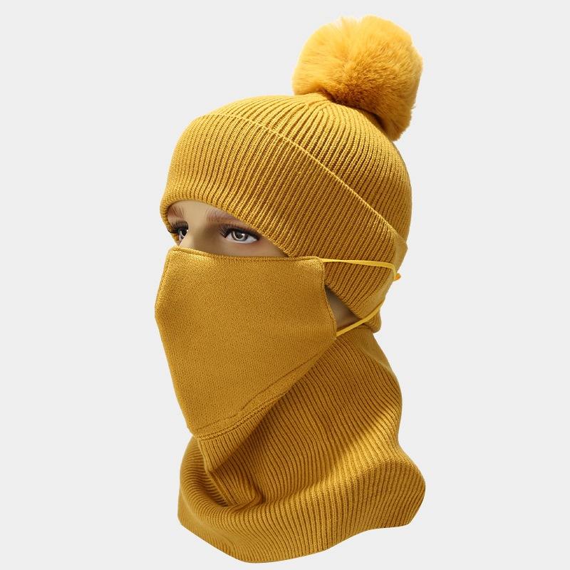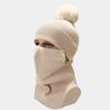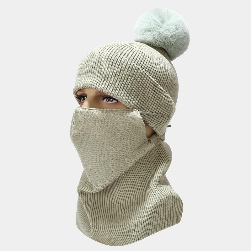 Conjunto de Tres Piezas de Gorro de Punto Protector de Otoño e Invierno, Bufanda y Máscara para Mujer con Pompon de Piel, Gorro para Montar a Prueba de Frío y Protección Facial, Gorro Cálido