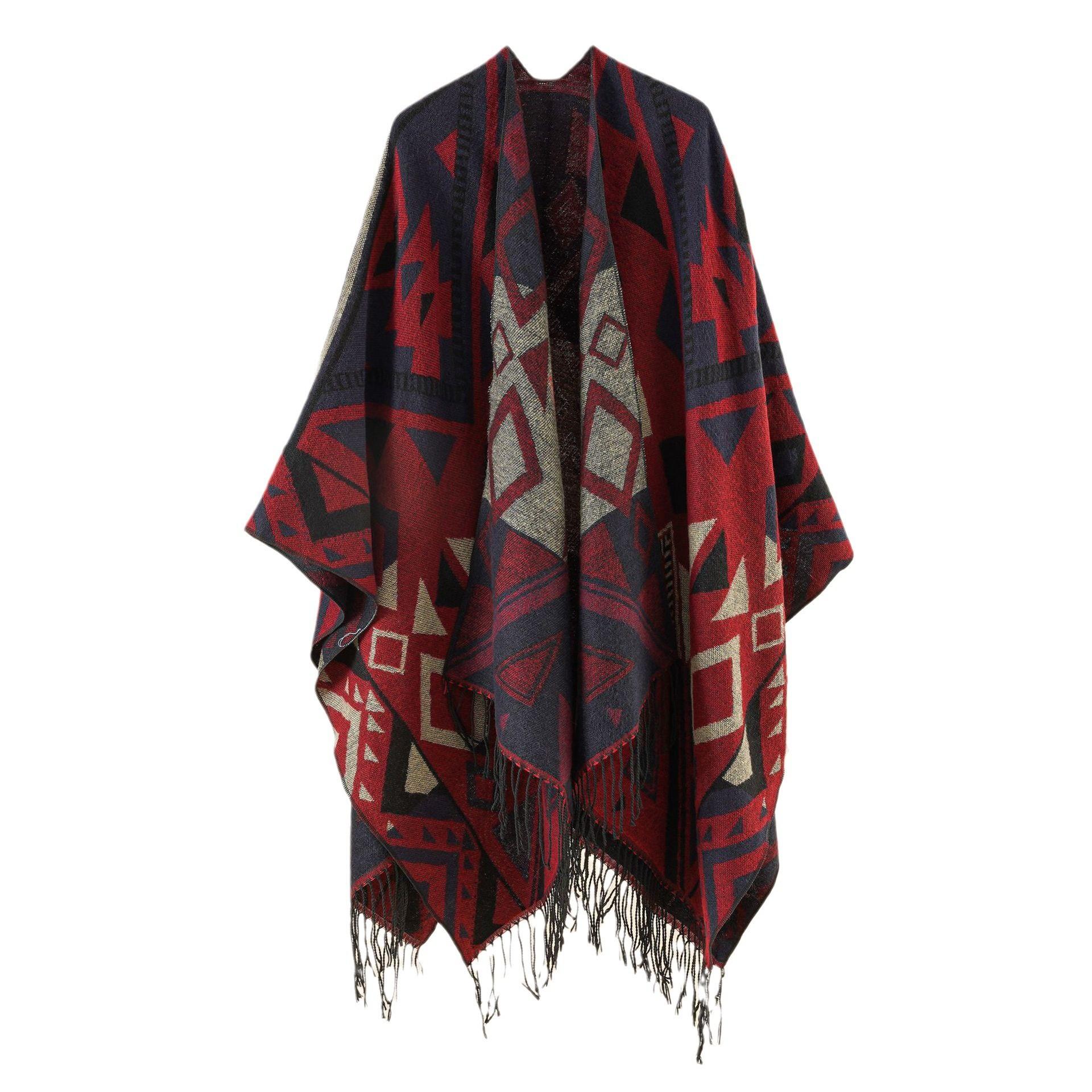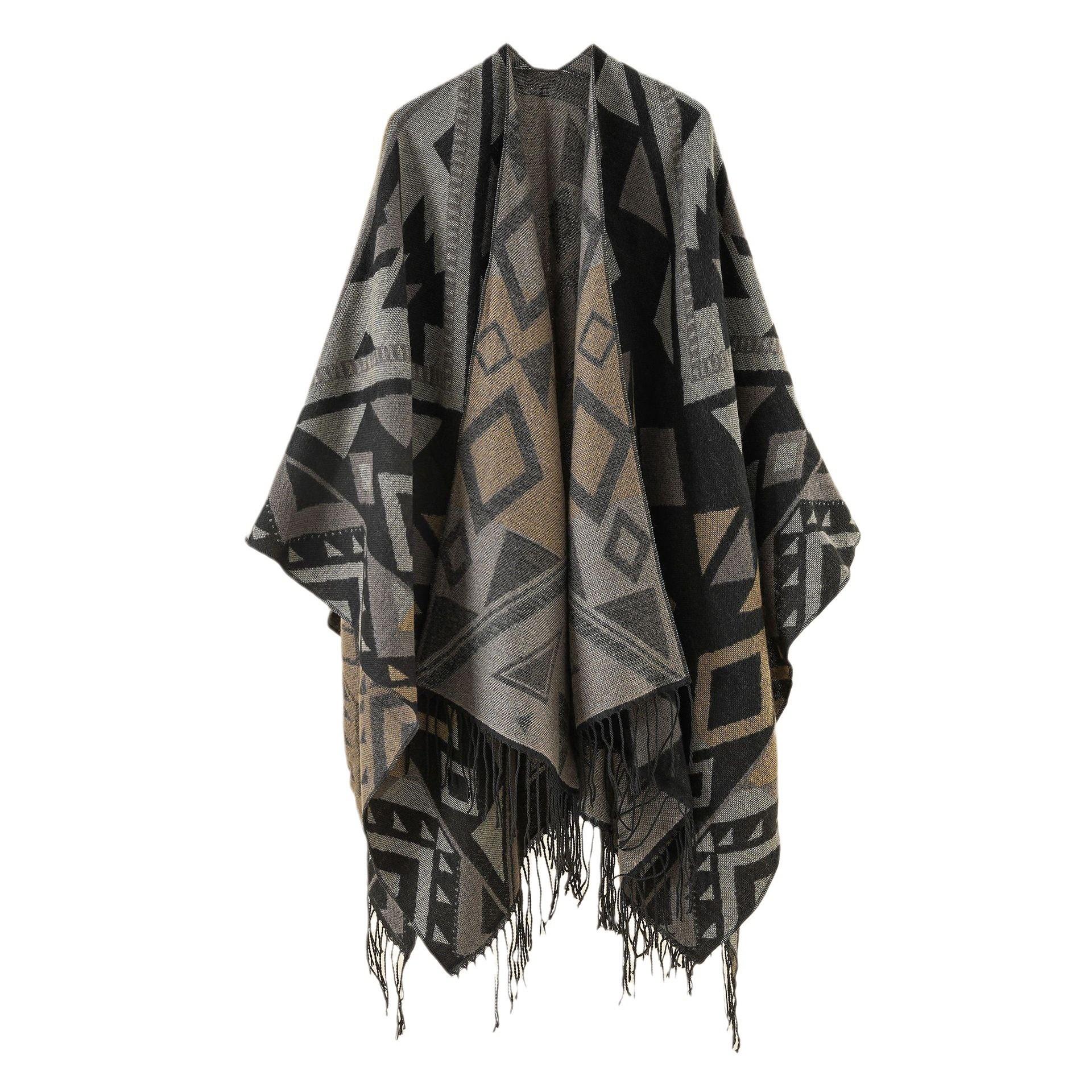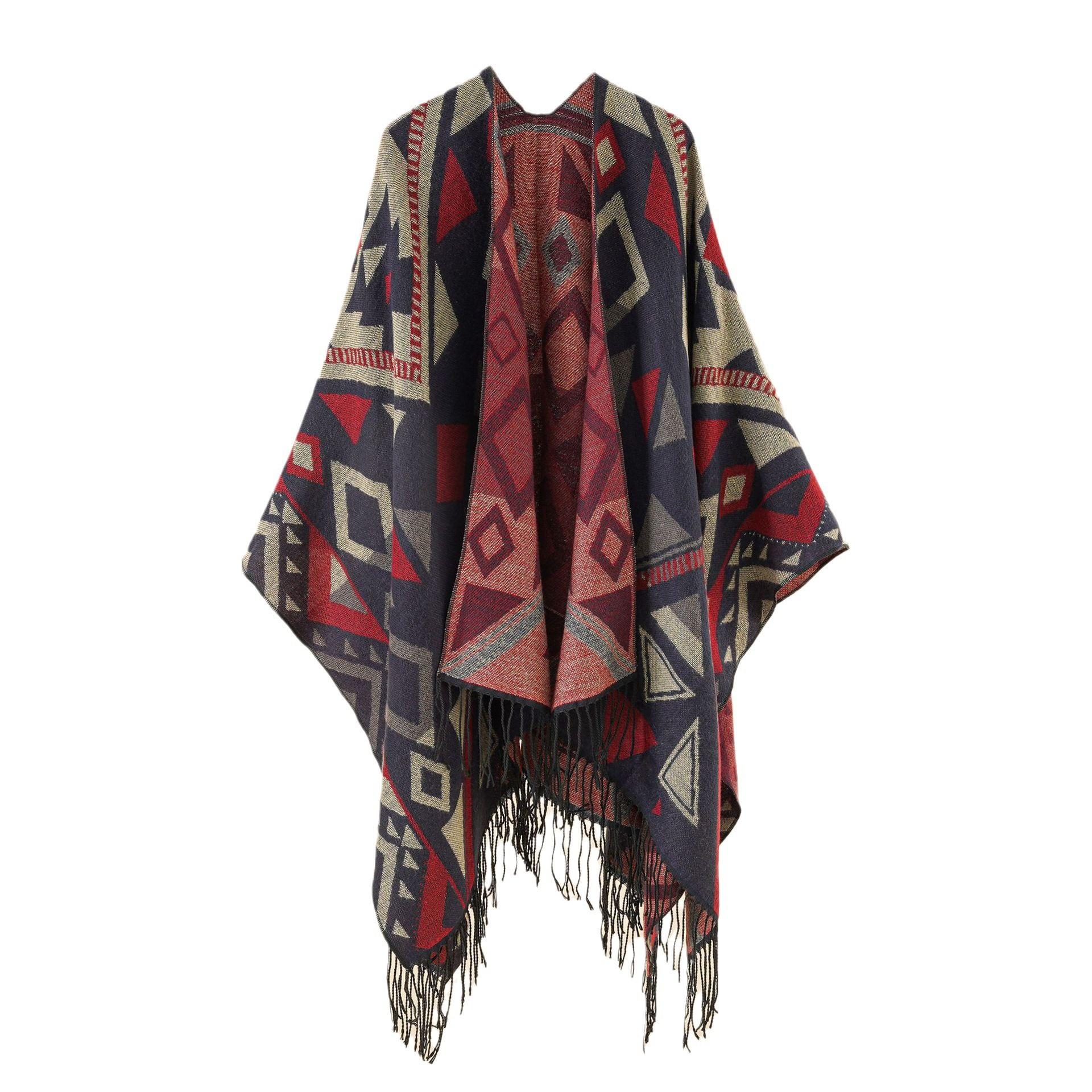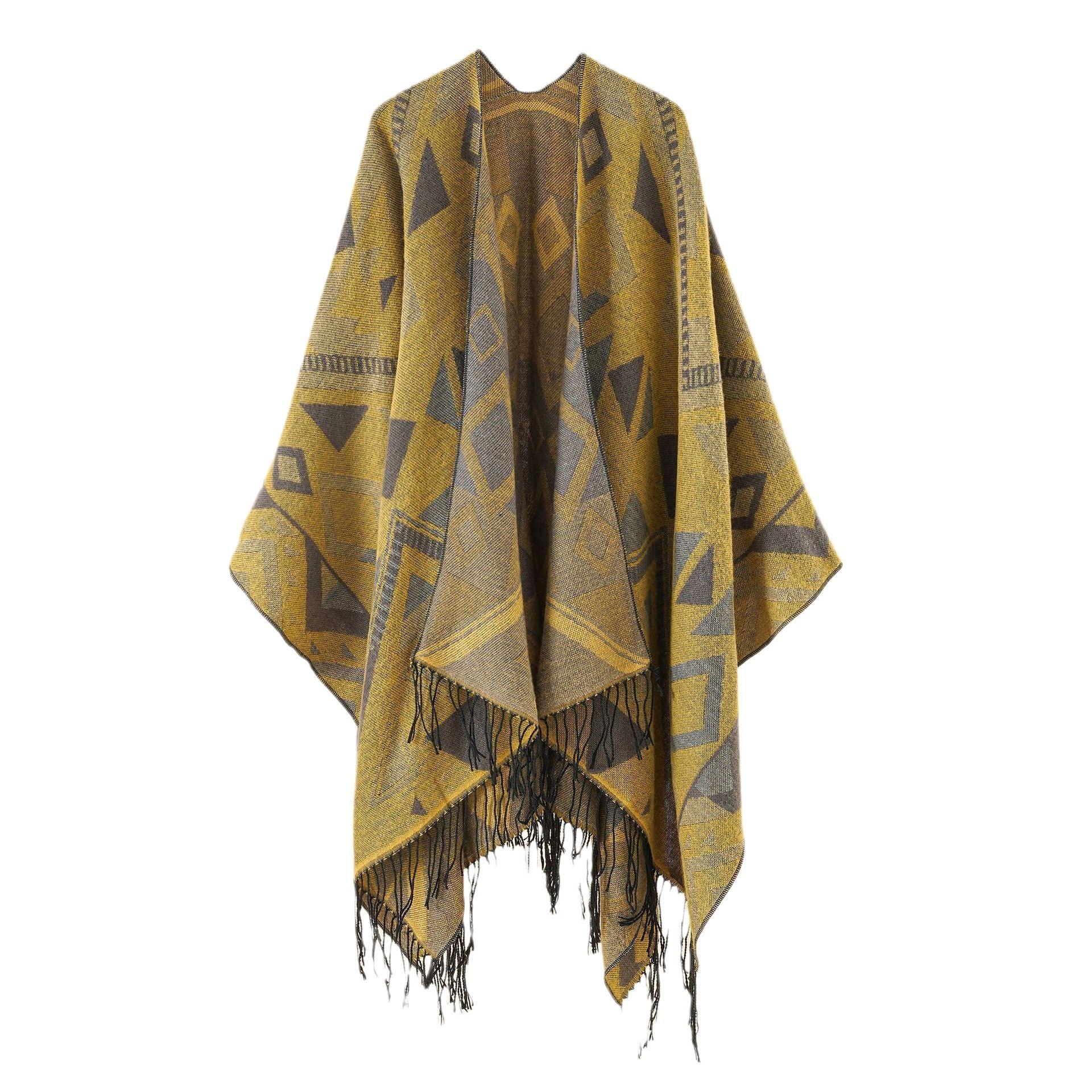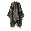 Chal con borlas y estampado geométrico para mujer, otoño e invierno, estilo pastoral, capa dividida, cálida bufanda de cachemira