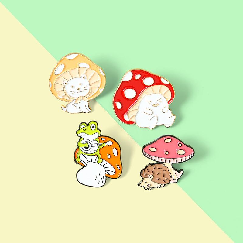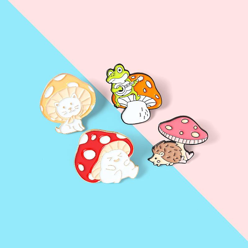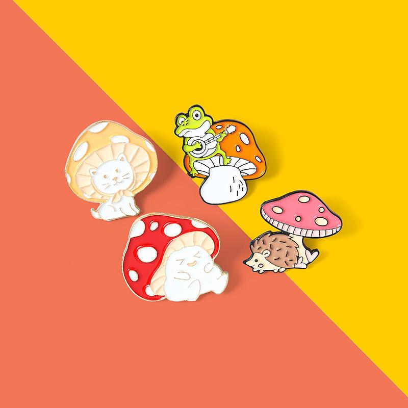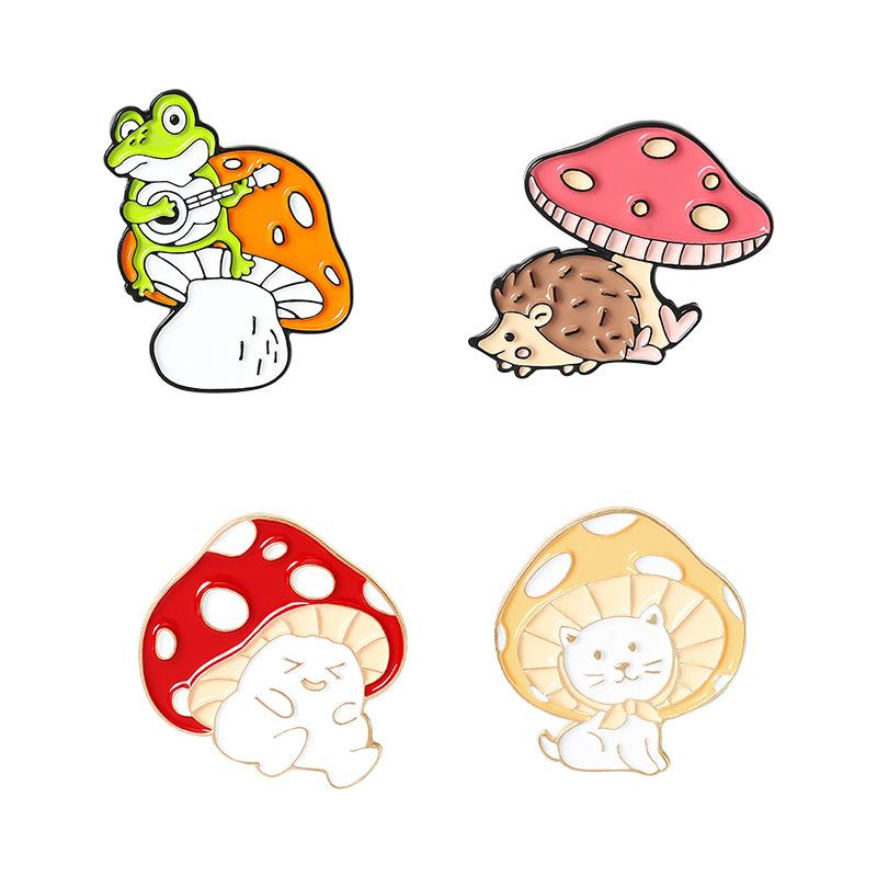 Broche de la serie de dibujos animados de hongos, joyería, lindo gato, erizo, rana, forma de pintura, accesorios, insignia