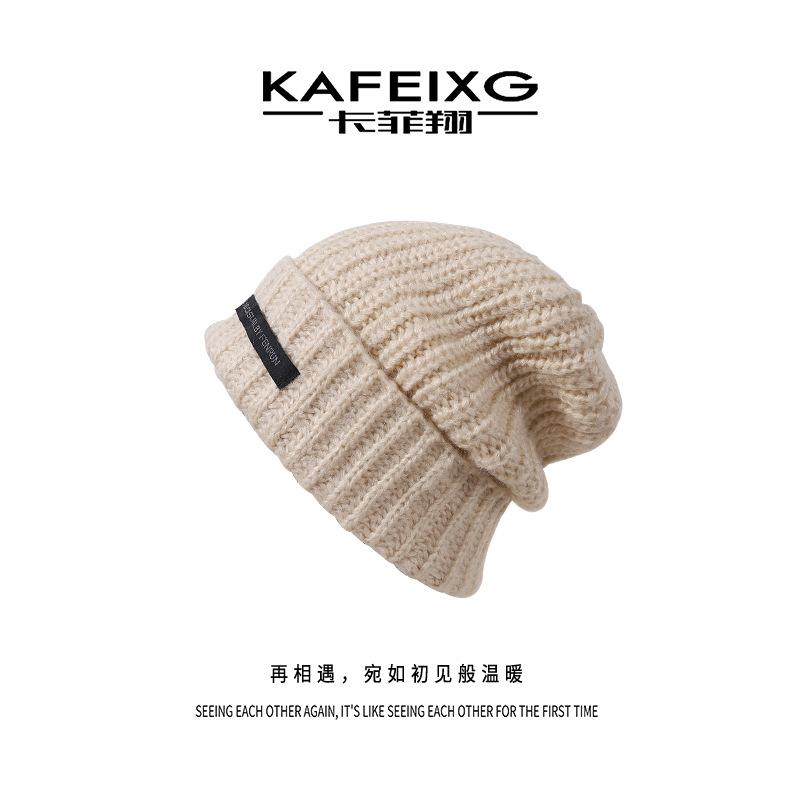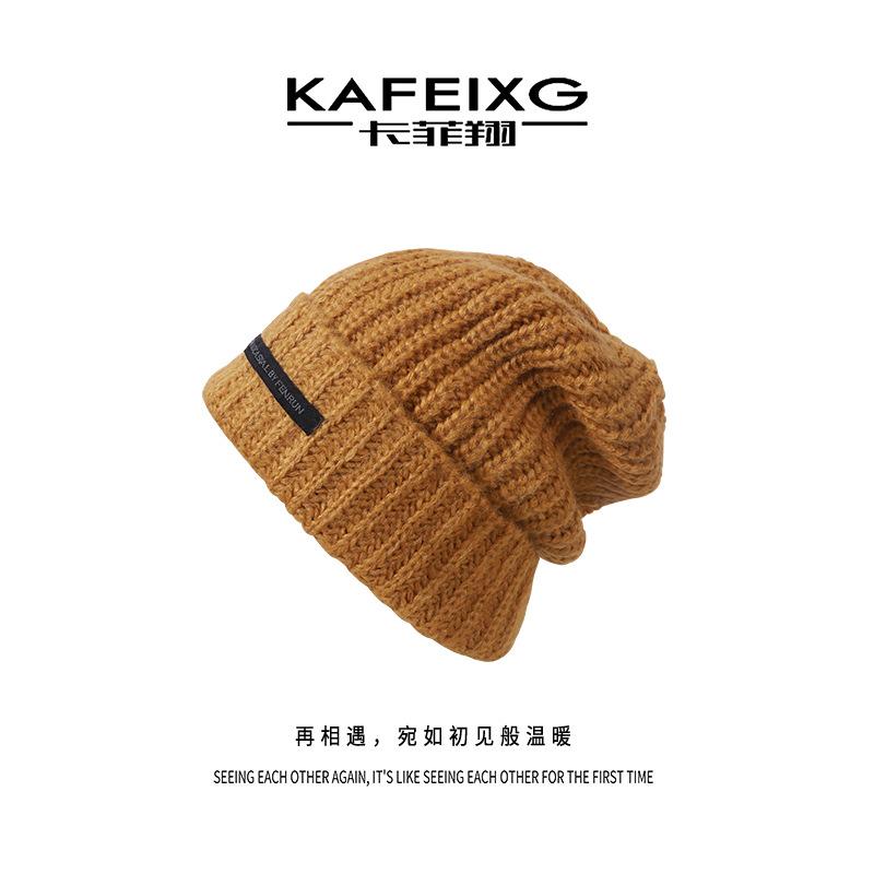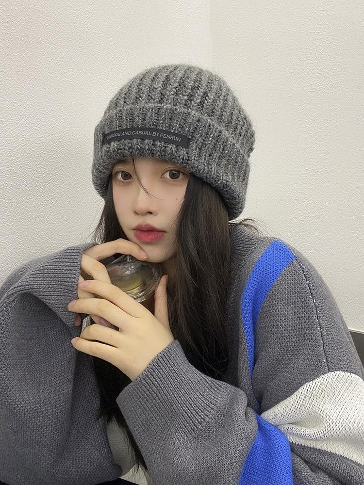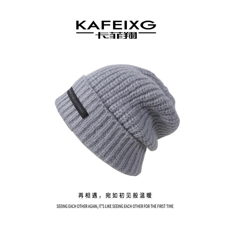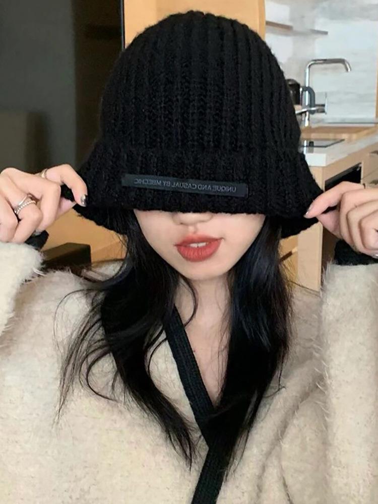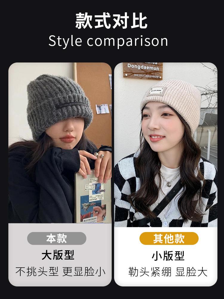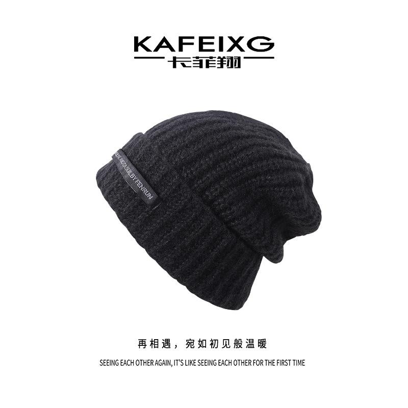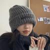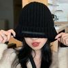 Gorro de lana negro suelto para niños, de otoño e invierno, con cabeza grande y pequeño, gorro de punto cálido con protección para los oídos.