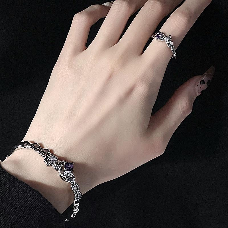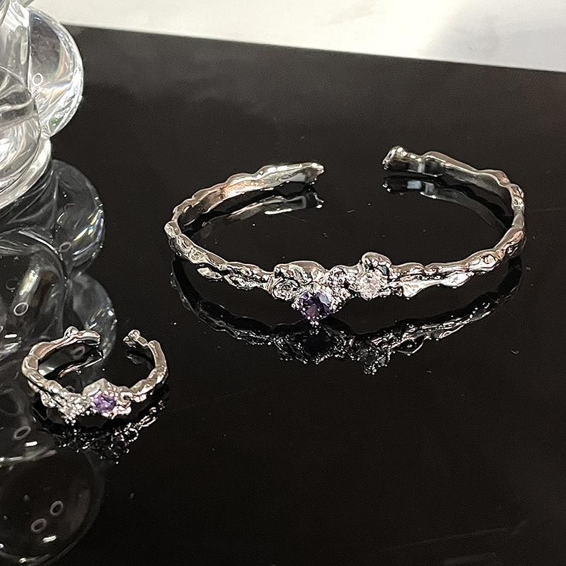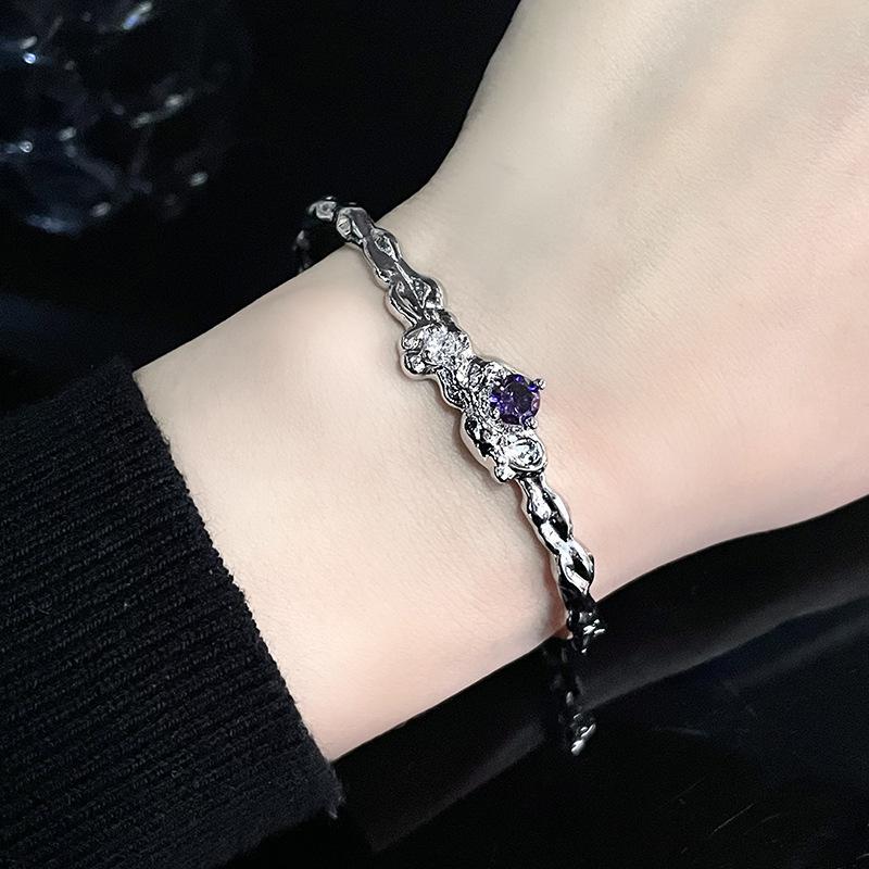 Diseño Nicho ins Estilo Frío Pulsera Irregular Francesa Alto Sentido Zircón Plisado Venta al por Mayor Pulsera Abierta para Mujer