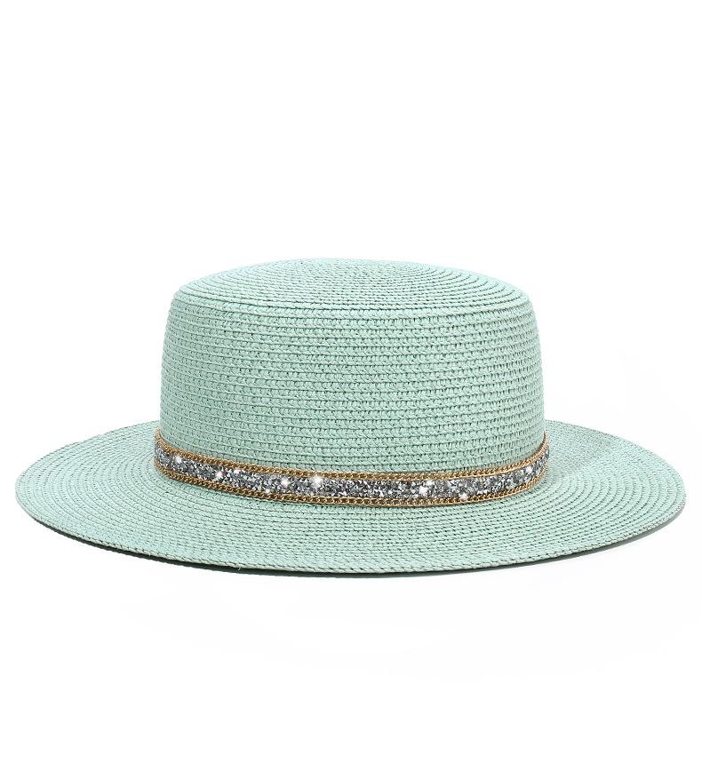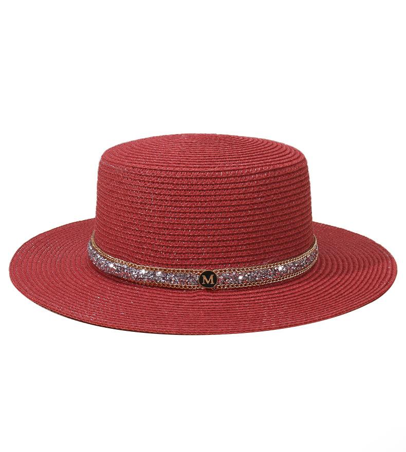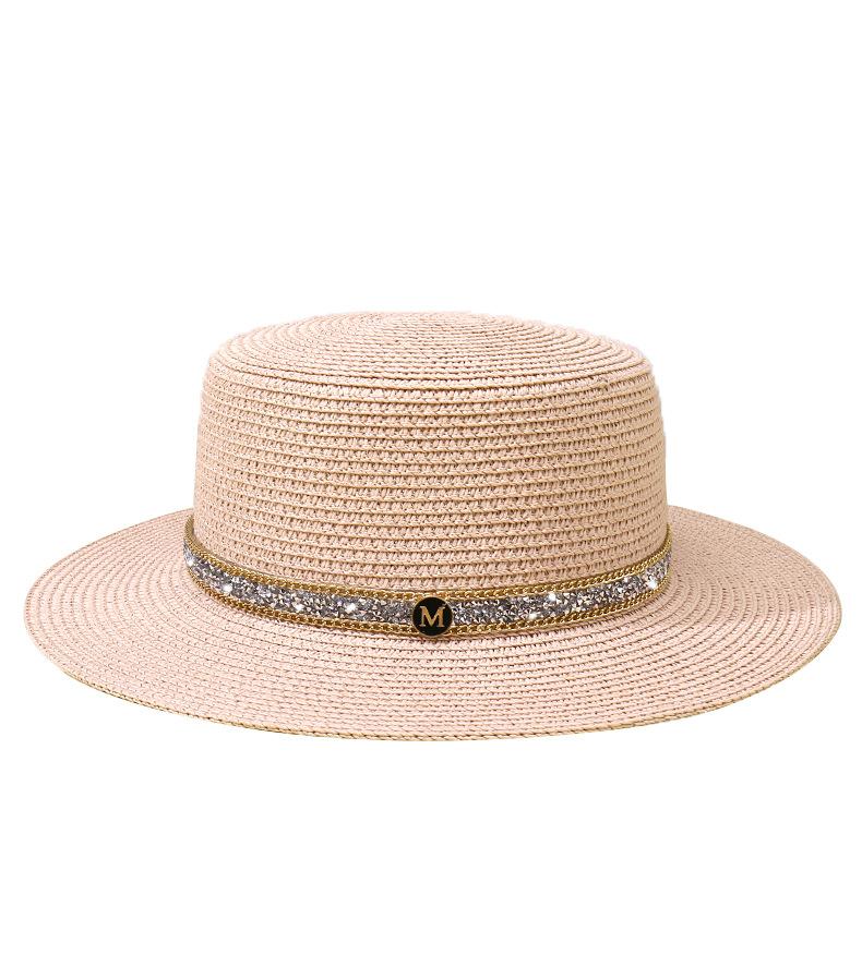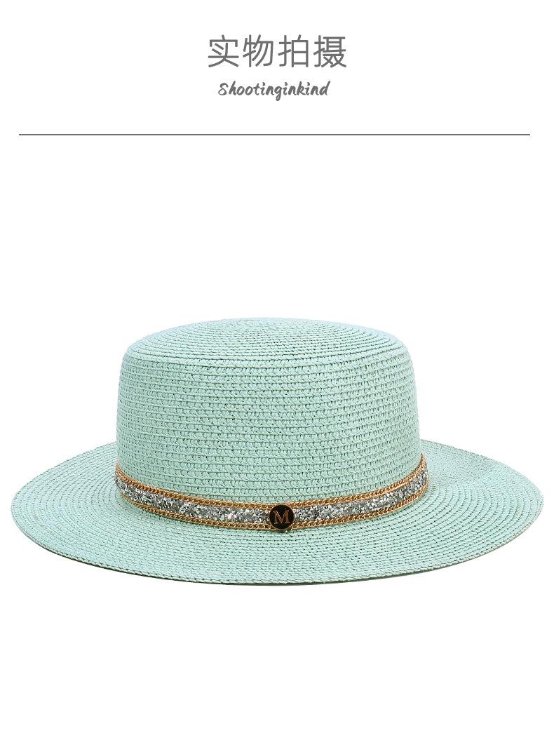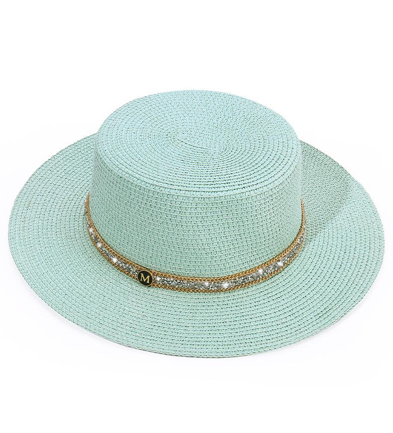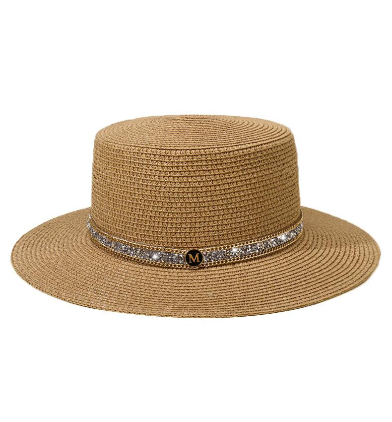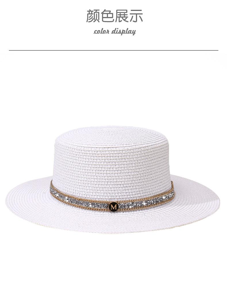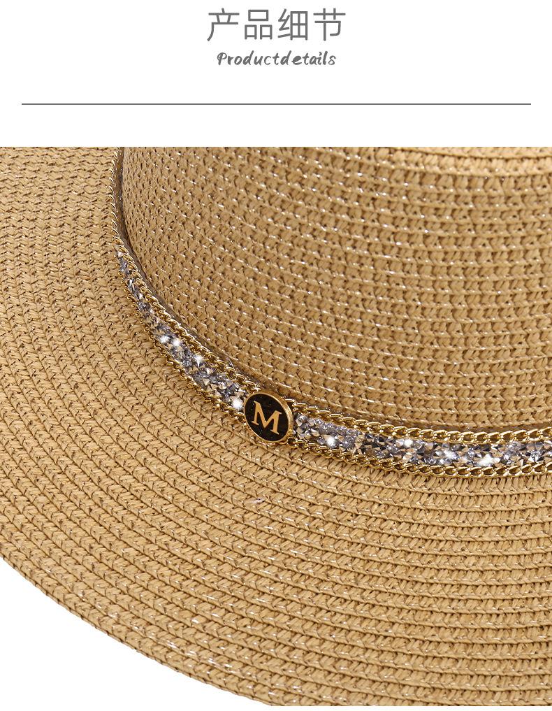 Sombrero de sol para mujer, moda de verano, sombrero con etiqueta M de pedrería, sombrero de playa de ocio al aire libre, sombrero de sol monocromático simple