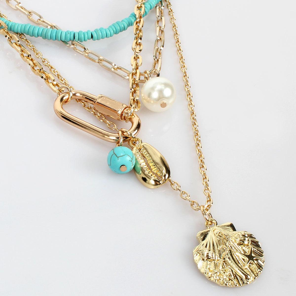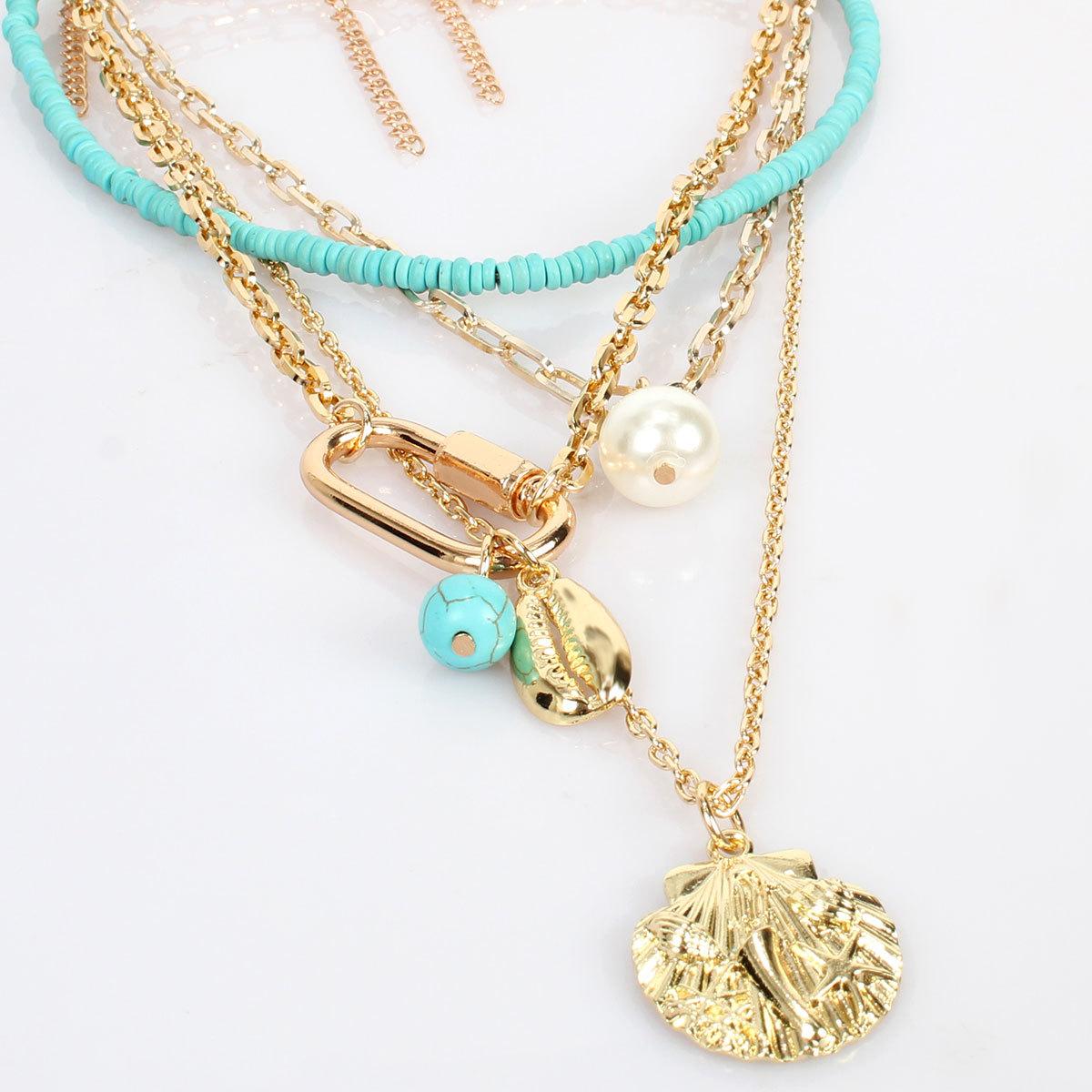 Collar de conchas de aleación bohemia, estilo étnico femenino, multicapa, cadena de clavícula, joyería transfronteriza europea y americana, 11960