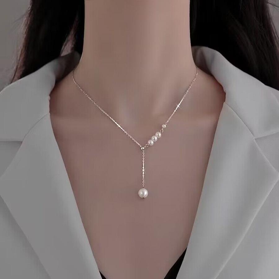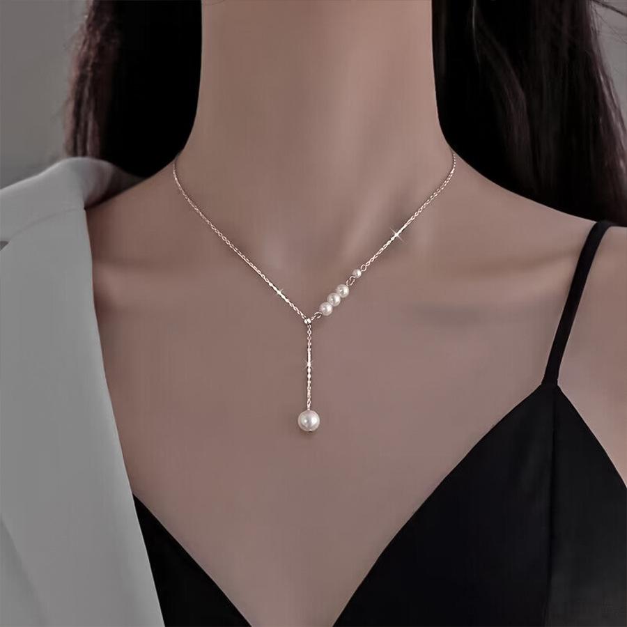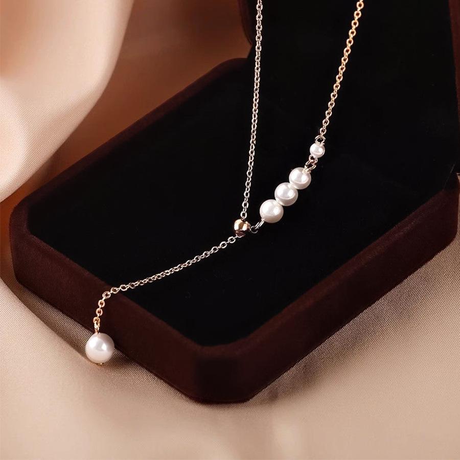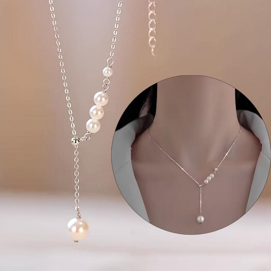 [Nombre]: Collar de borlas de acero inoxidable 316L con perlas naturales para mujer, cadena de clavícula de nicho de lujo ligero, colgante de temperamento de nuevo estilo 2023 al por mayor