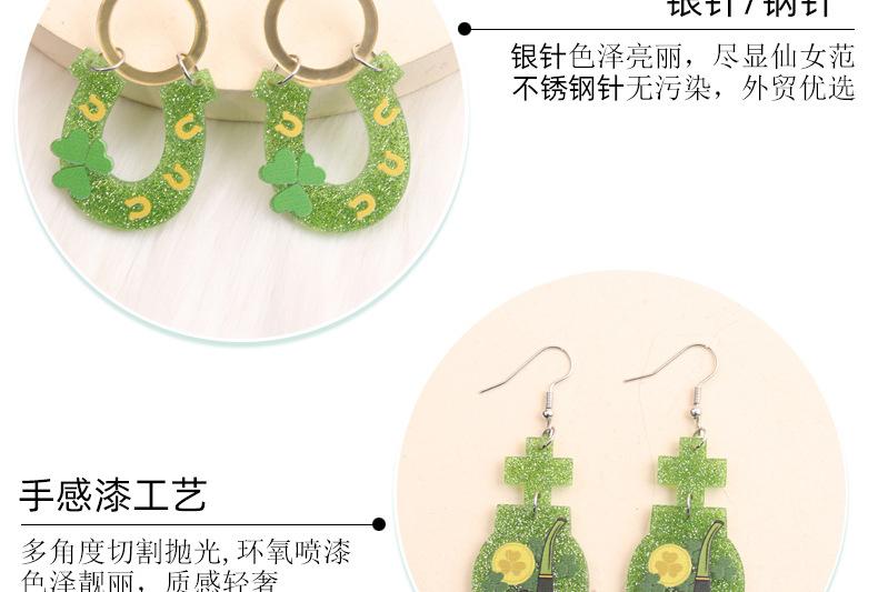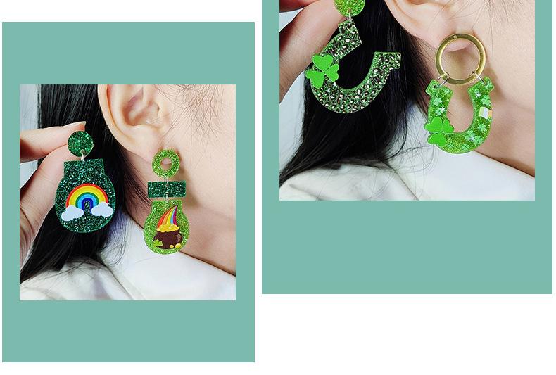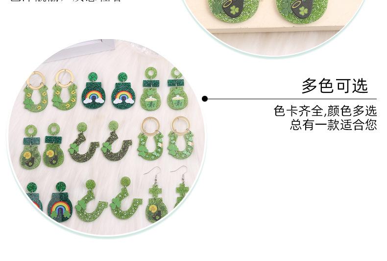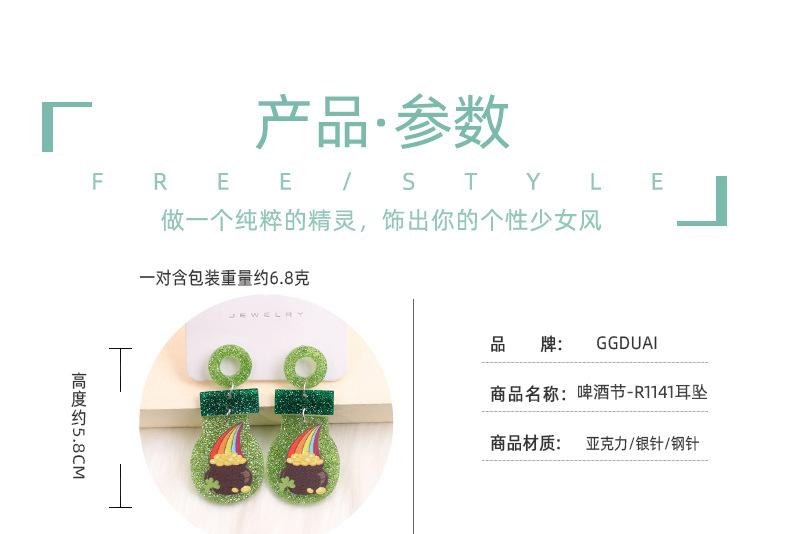 Pendientes de trébol del Festival de la Cerveza Transfronterizo, pendientes sencillos con moneda de oro arcoíris, joyería europea y americana, pendientes acrílicos para mujer