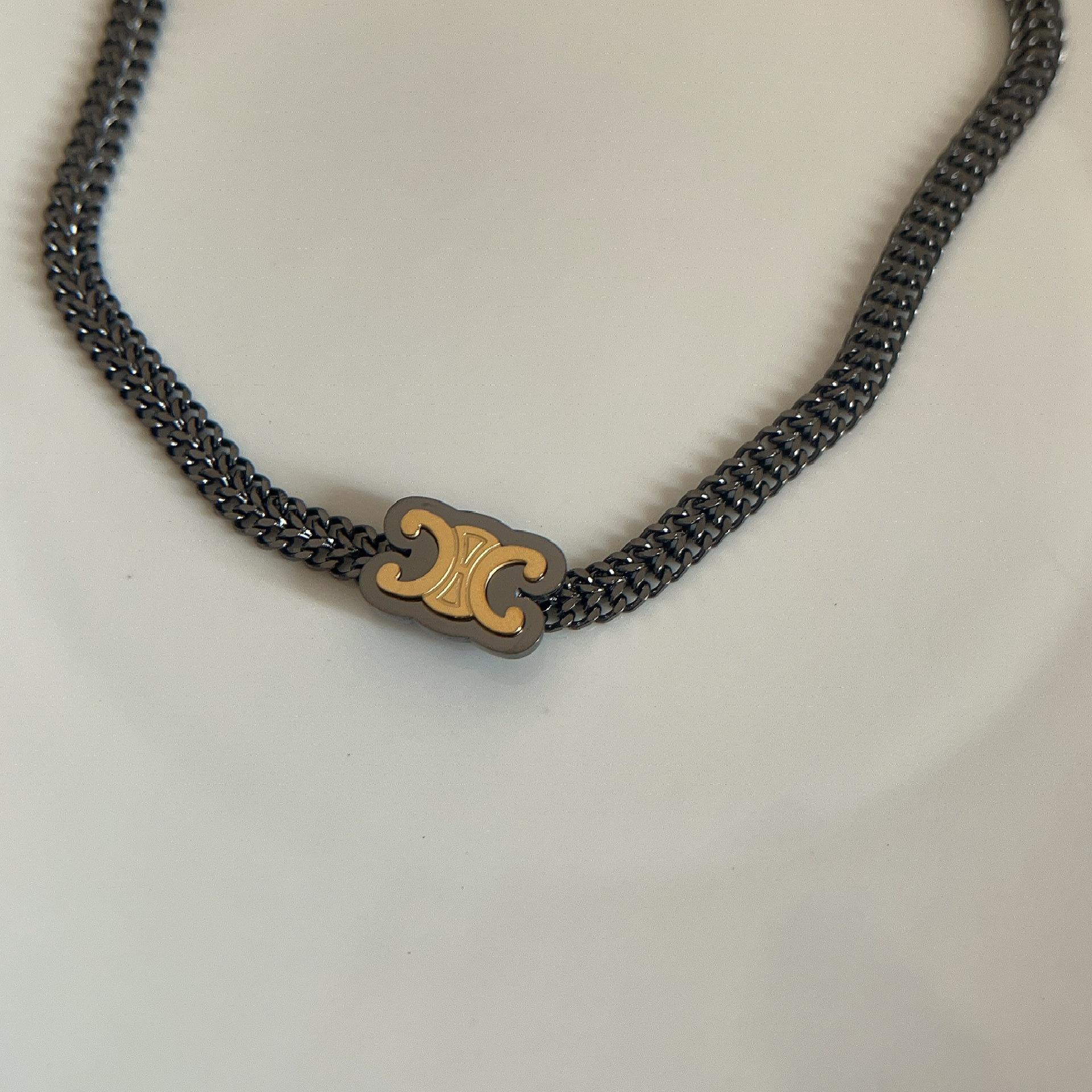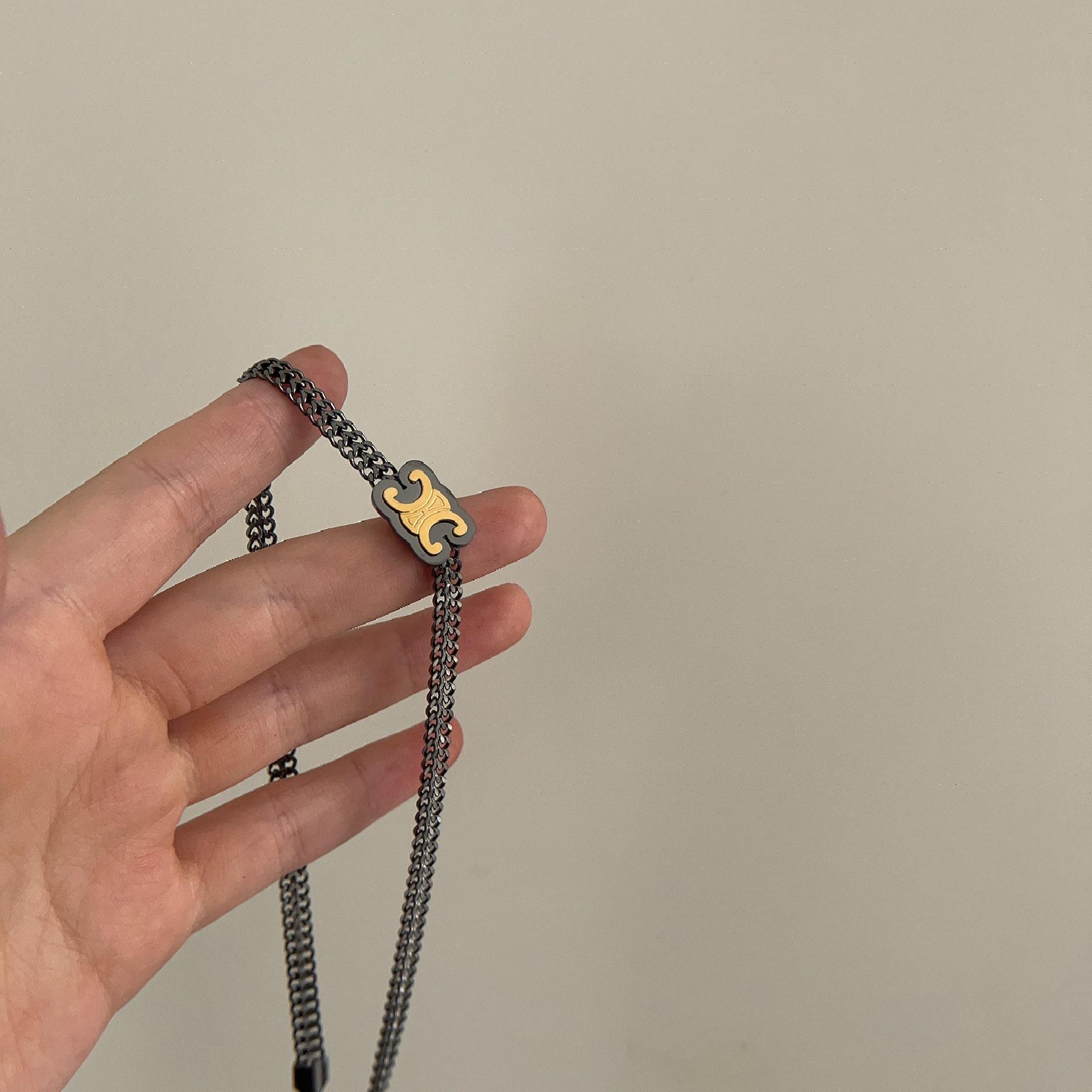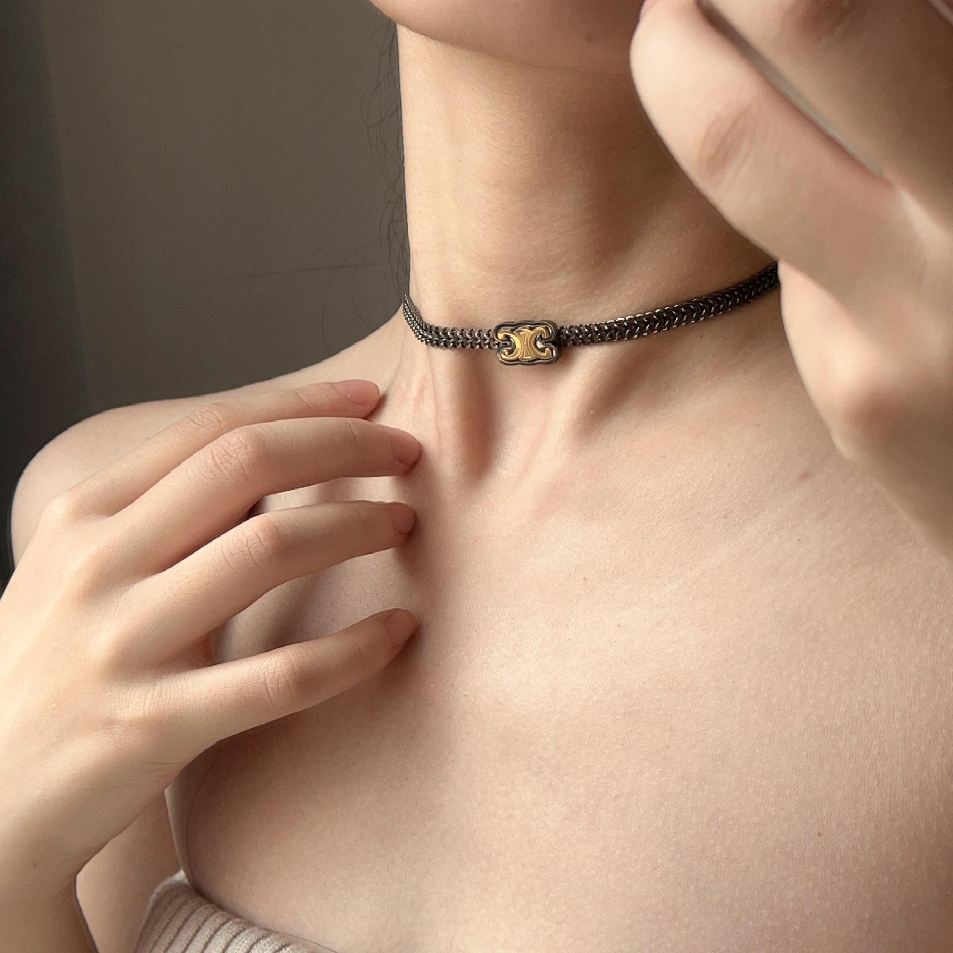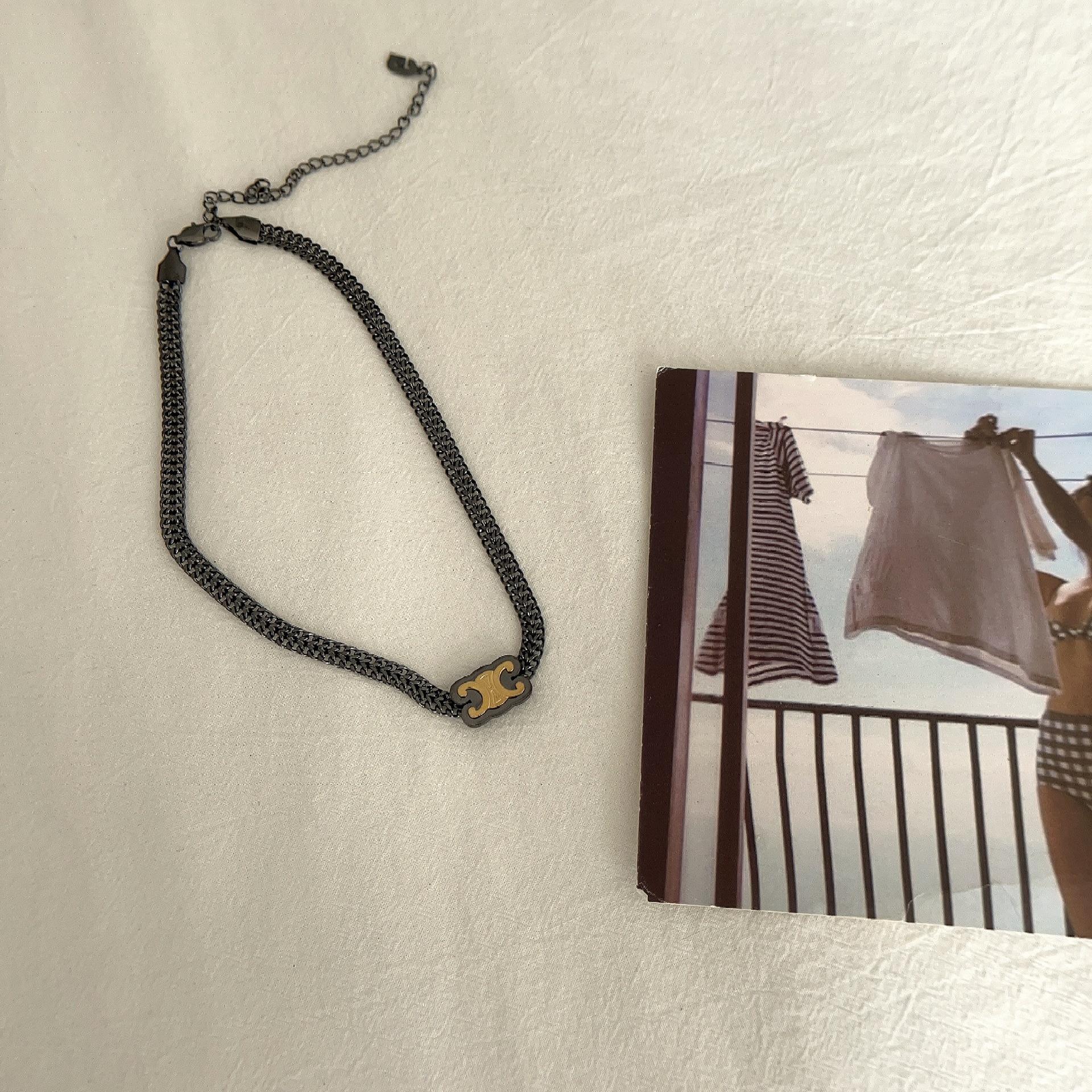 Collar con letra del Arco del Triunfo en acero de titanio, estilo nicho, con temperamento a la moda, sin decoloración, con personalidad, cadena de clavícula corta y sencilla para mujer.