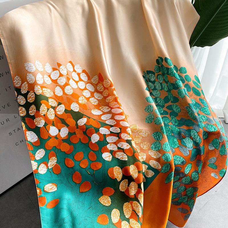 | Bufanda de seda sintética nueva de 2022, larga, de satén y seda, para vacaciones, con protector solar, venta al por mayor |