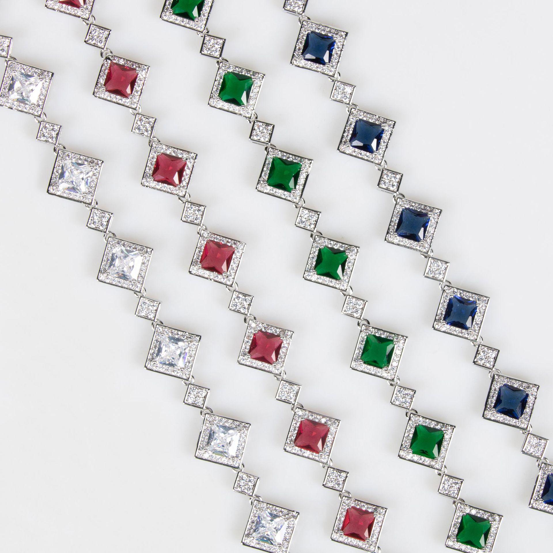 Pulsera de moda princesa cuadrada para mujer con circonio europeo y americano transfronterizo, pulsera de circonio de lujo con incrustaciones cuadradas al por mayor