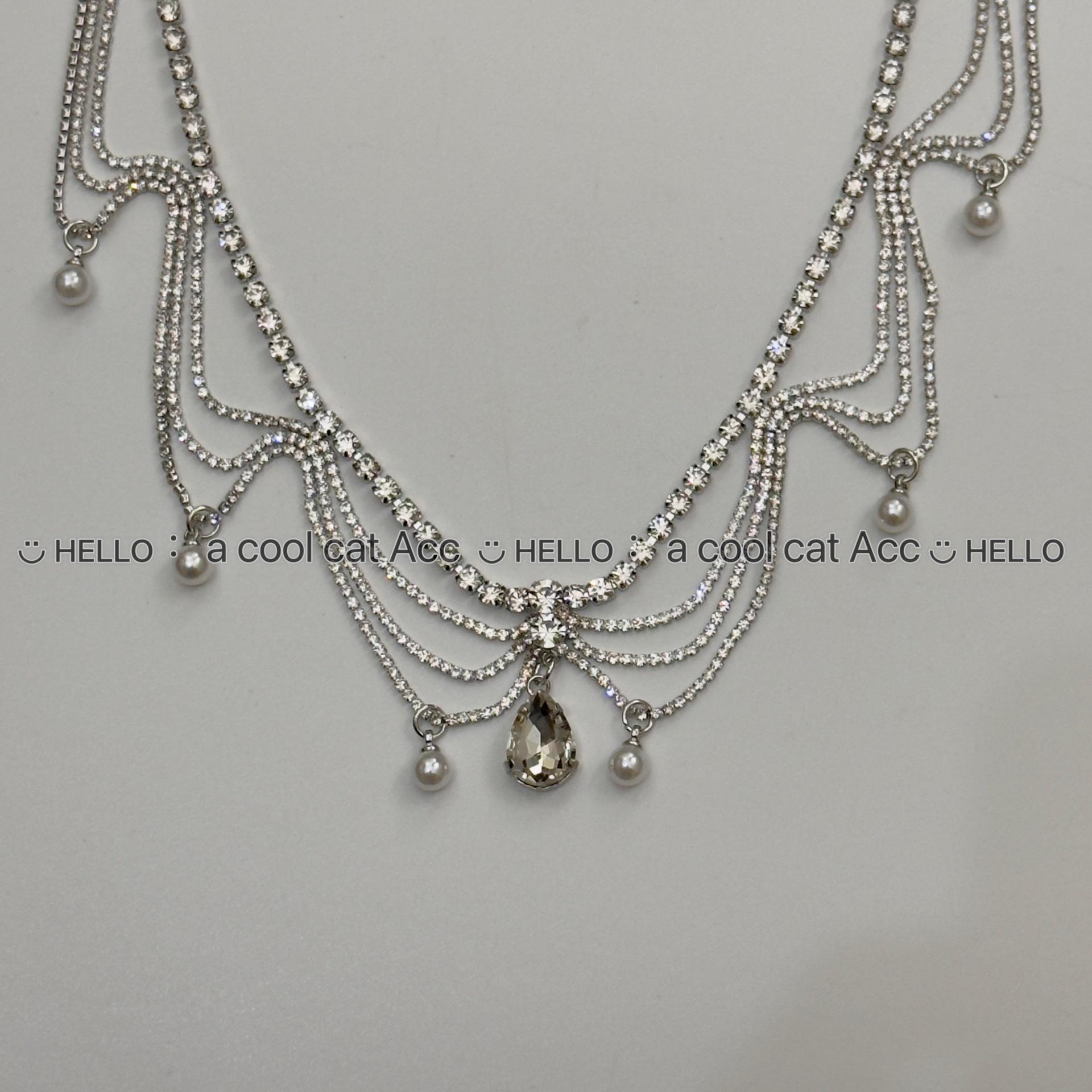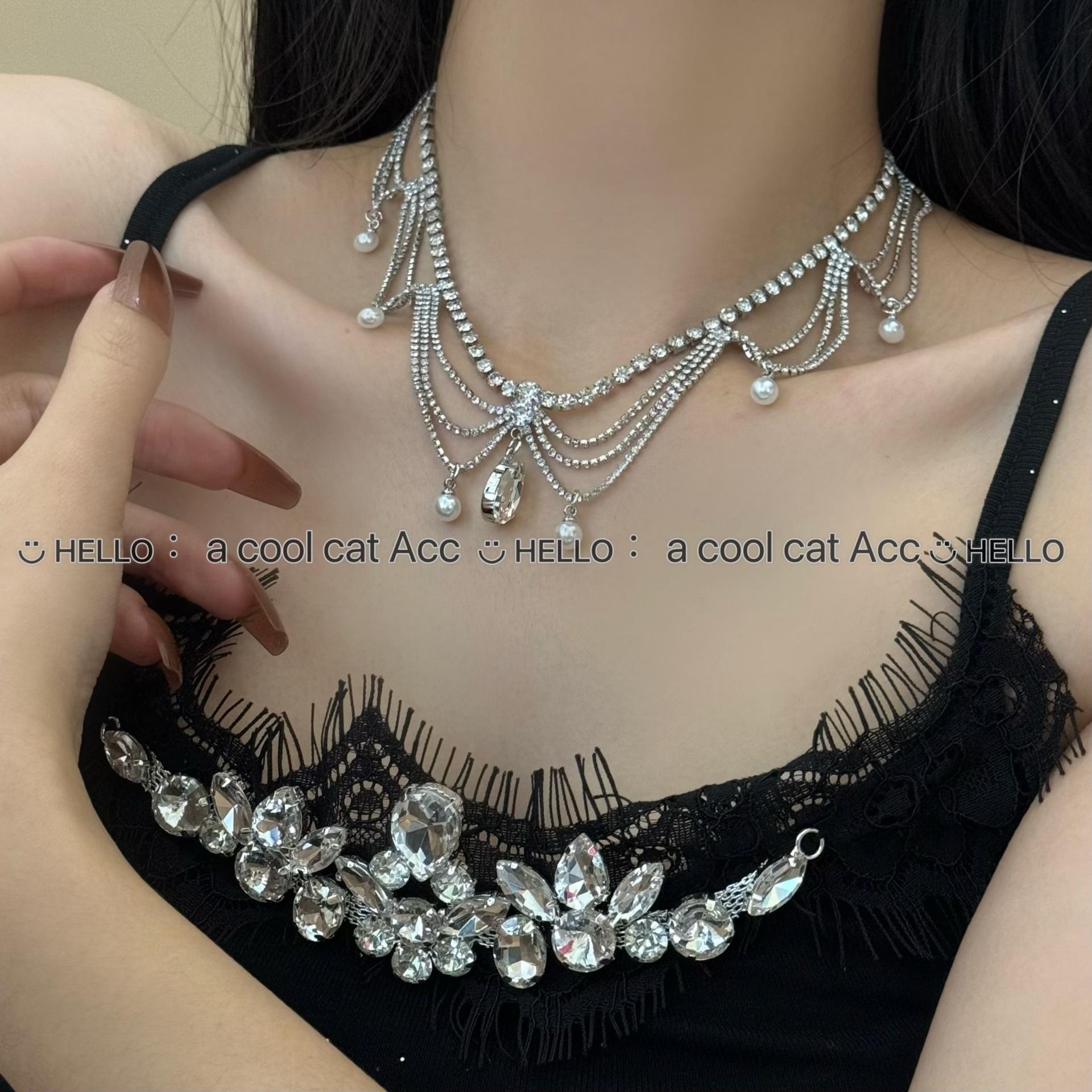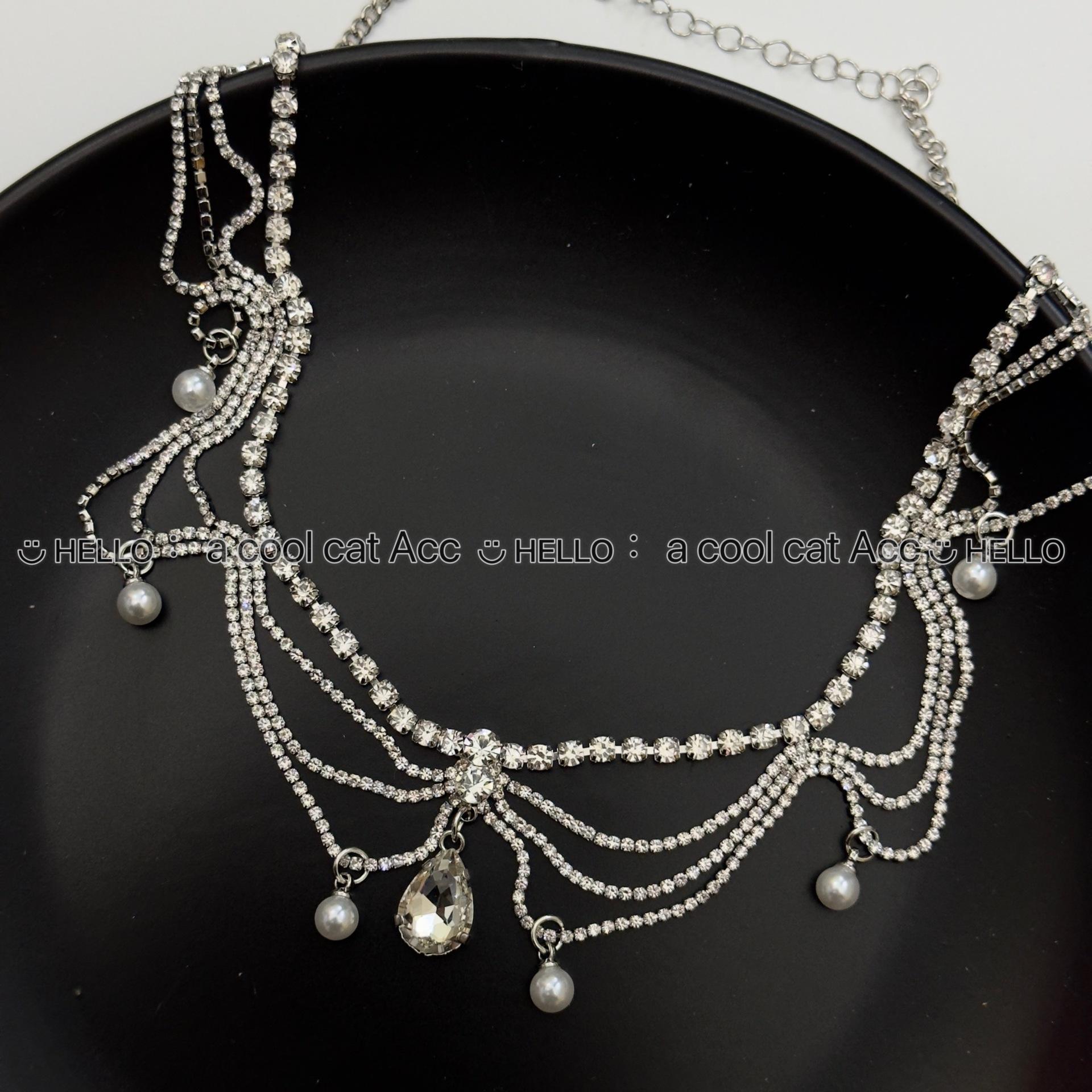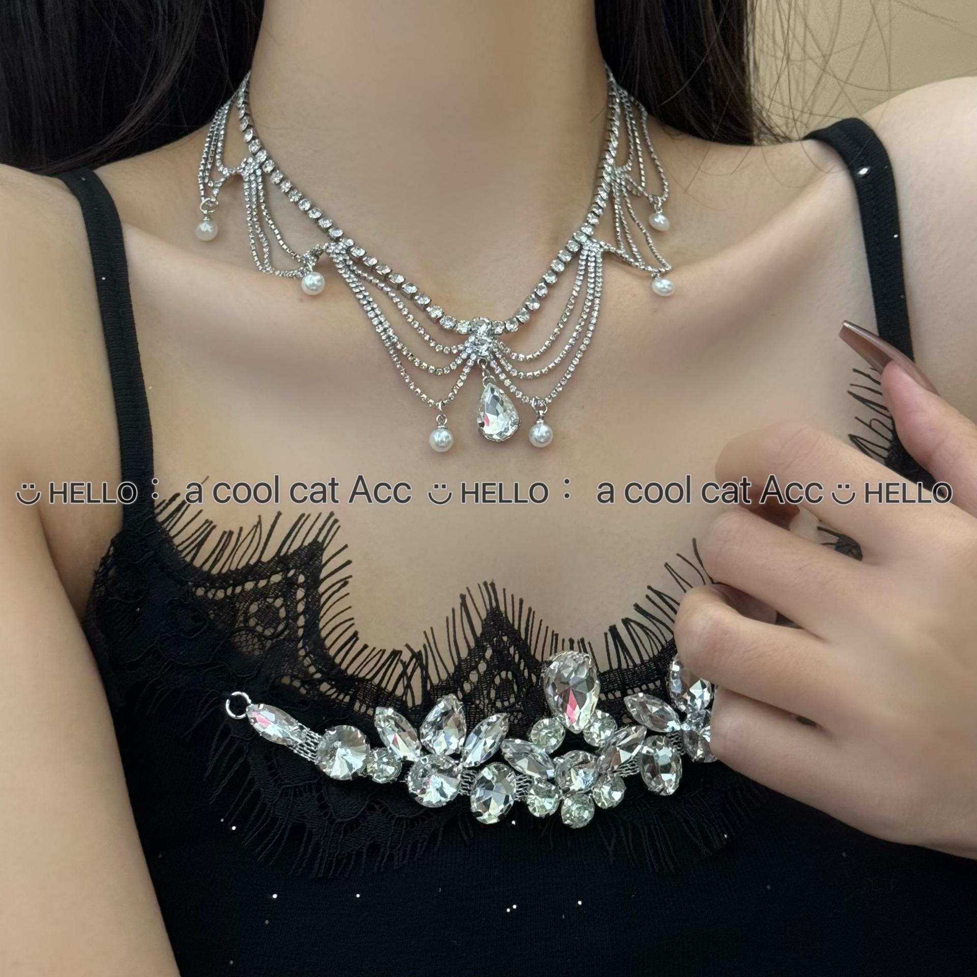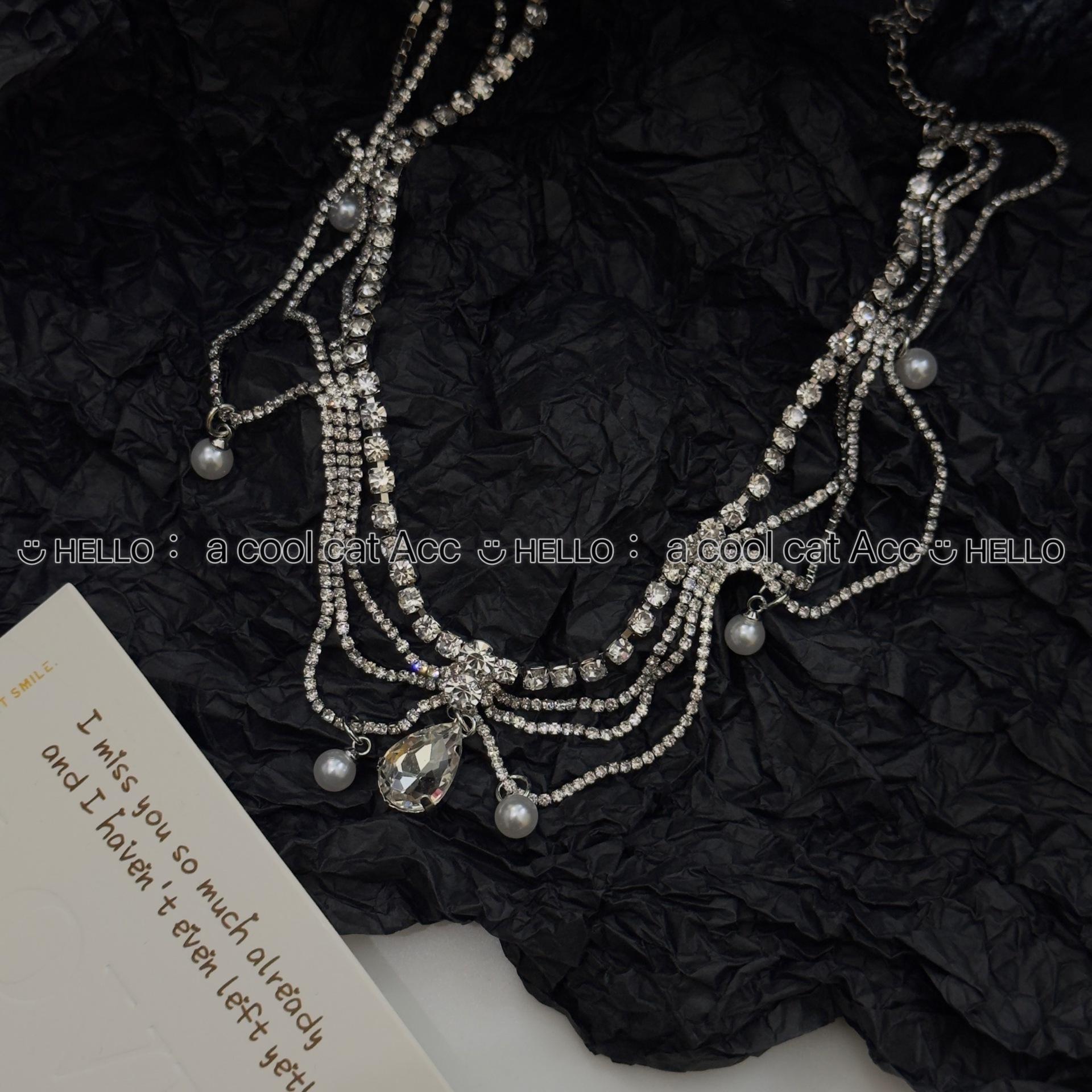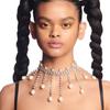 Reunión anual de cumpleaños flash diseño de industria pesada collar de perlas de lazo para mujer nicho de lujo ligero collar de temperamento de alta gama candado