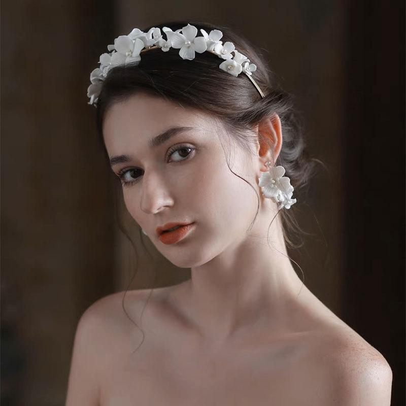 Accesorios para el Cabello de Boda con Flores Blancas de Moda Europea y Americana, Tocado Elegante con Clase de Bosque, Accesorios para el Cabello para Fotos de Boda para Salidas