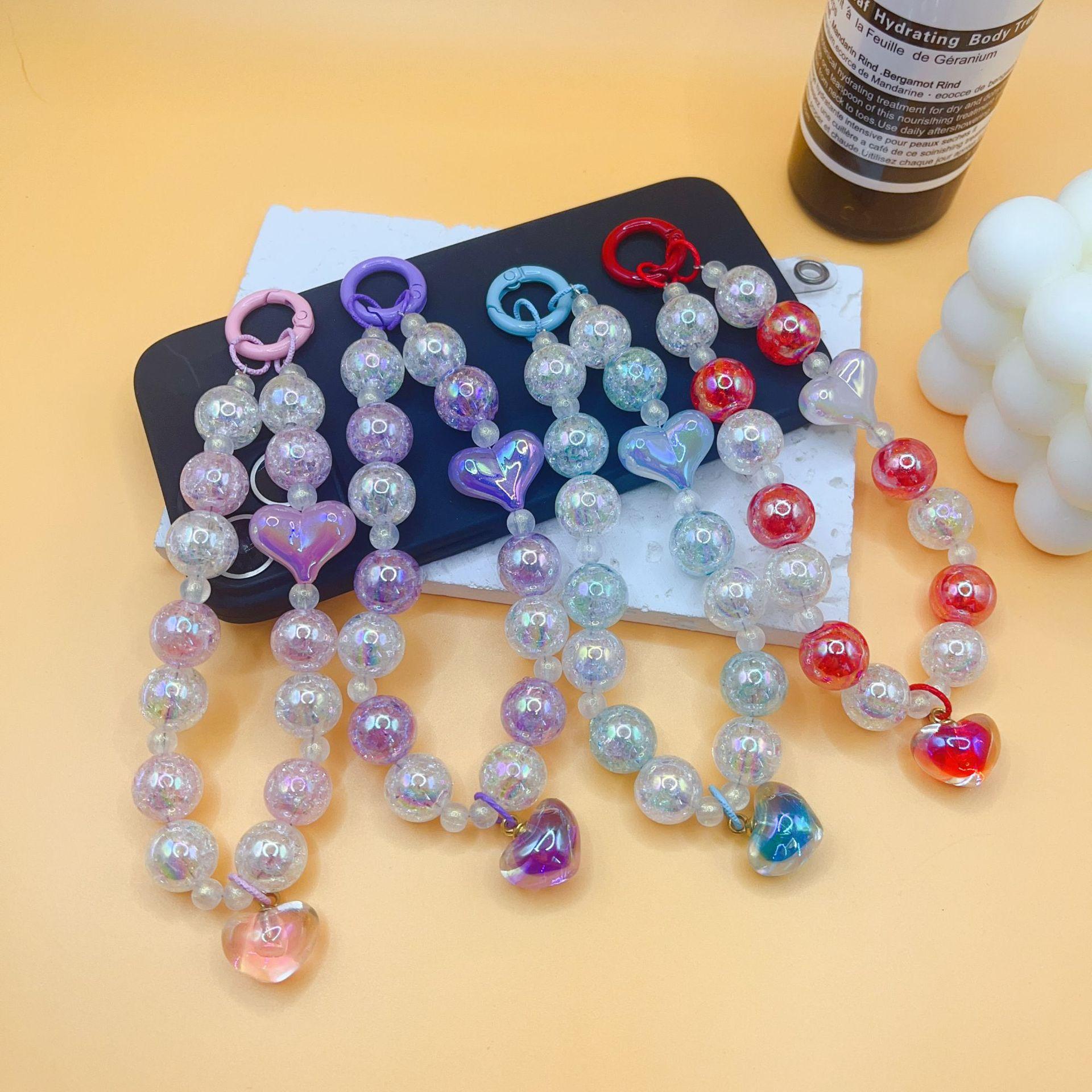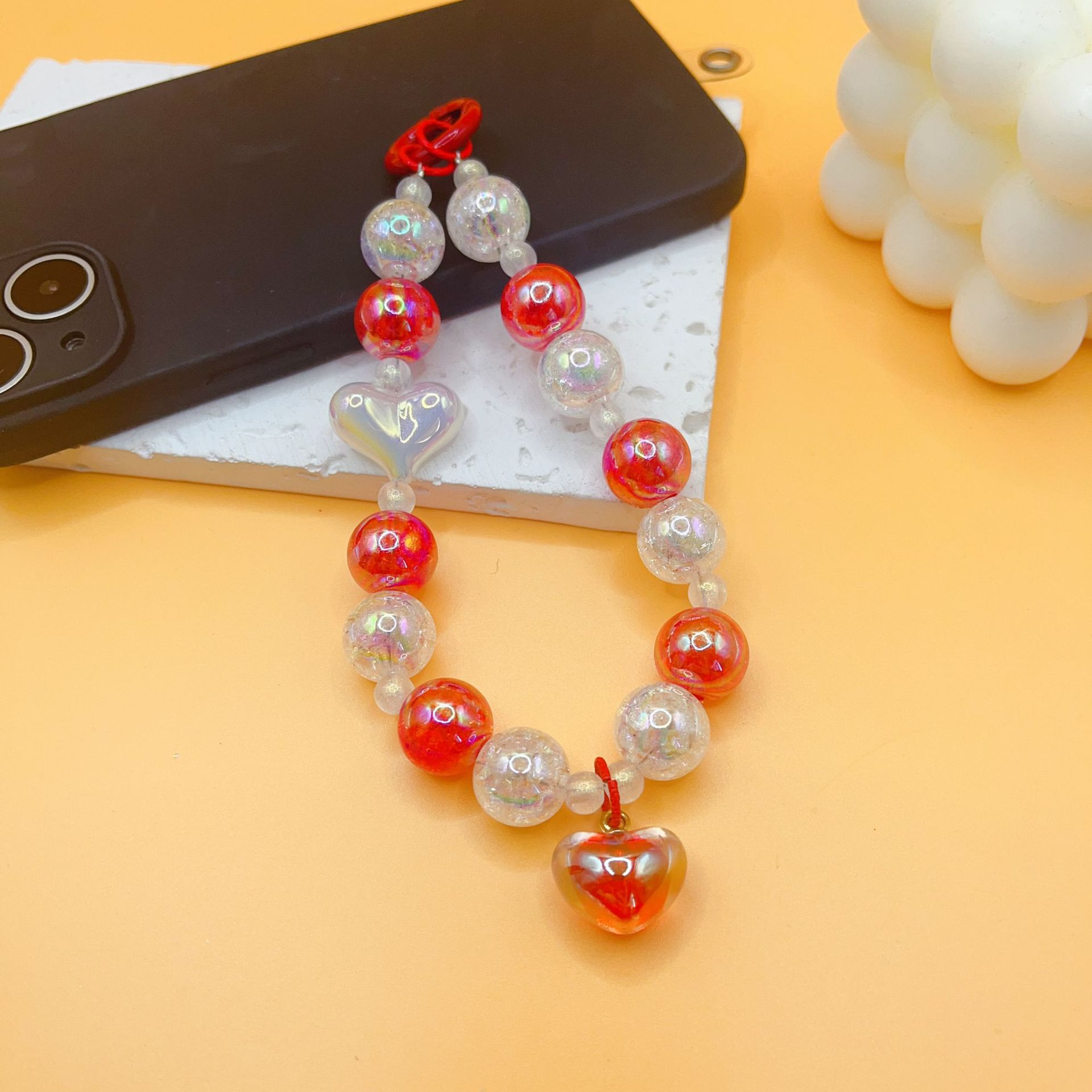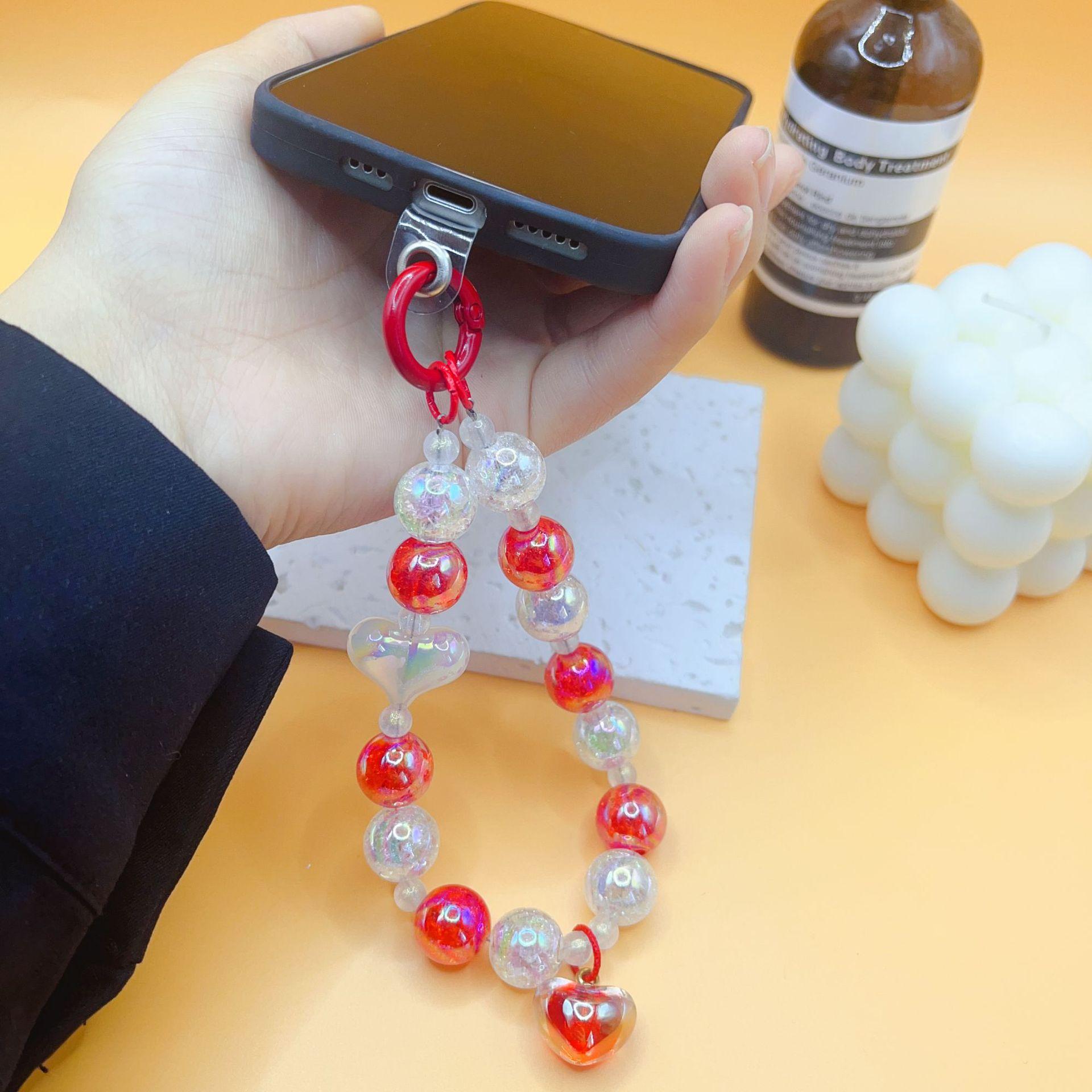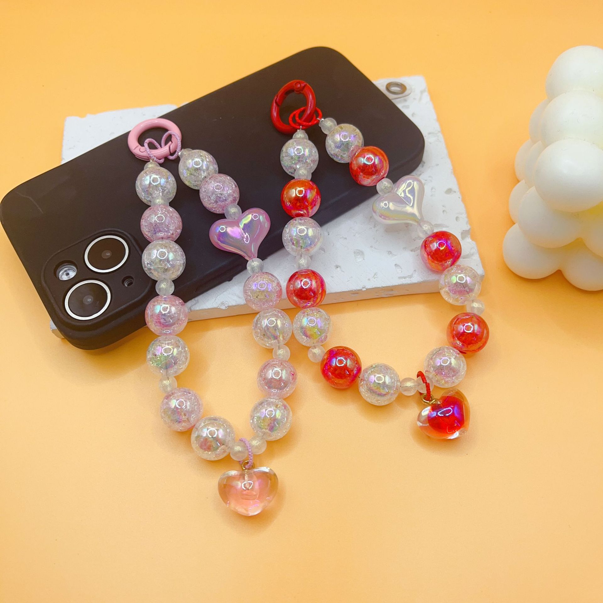 Estilo ins japonés y coreano colgante de amor cadena para teléfono móvil P melocotón explosión hecho a mano con cuentas cordón bolsa adornos accesorios para llaves de coche