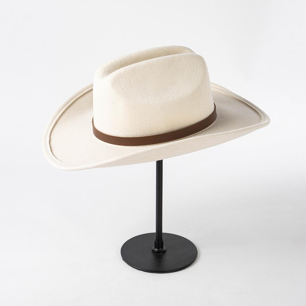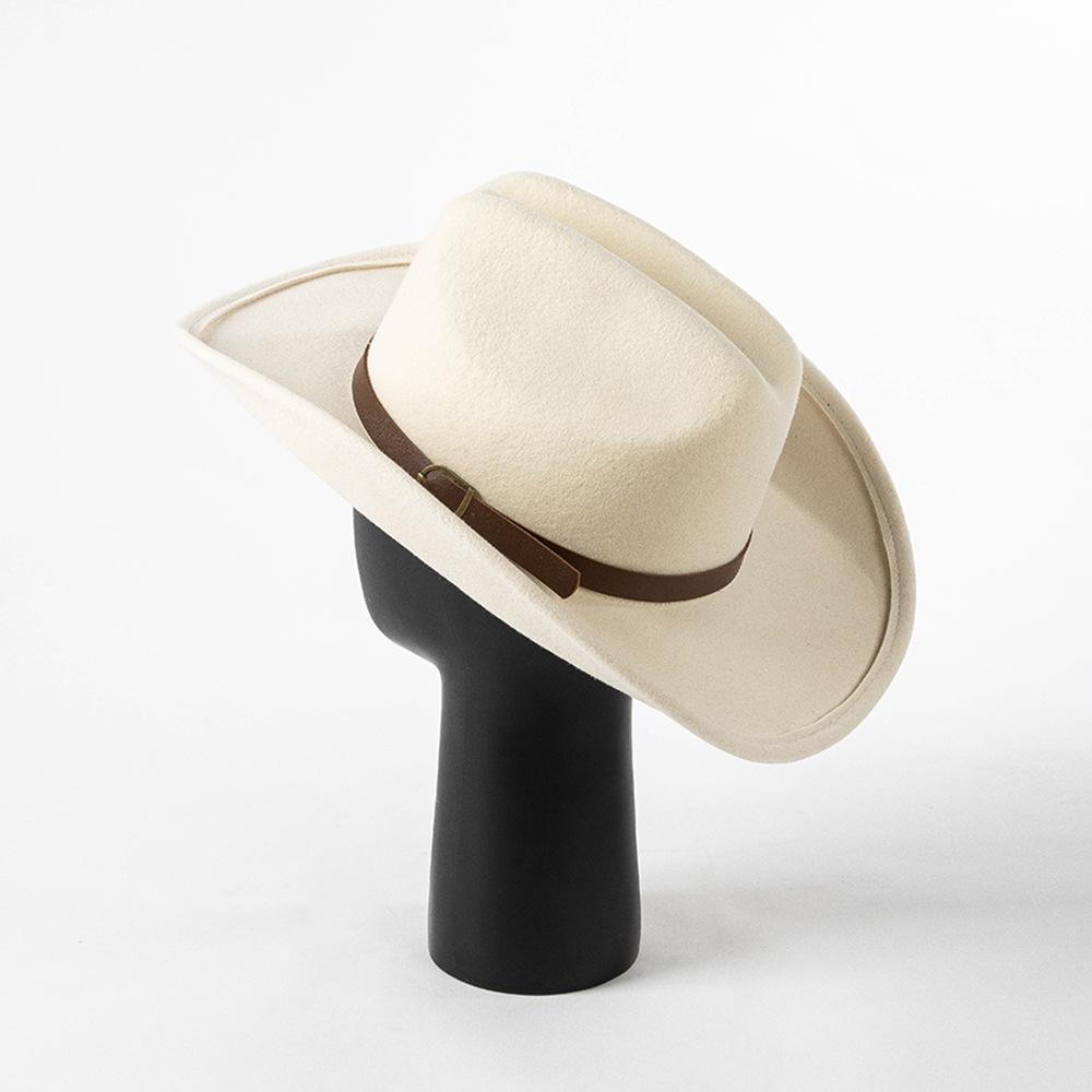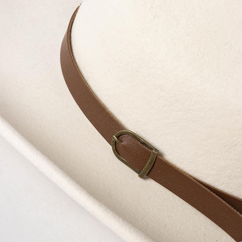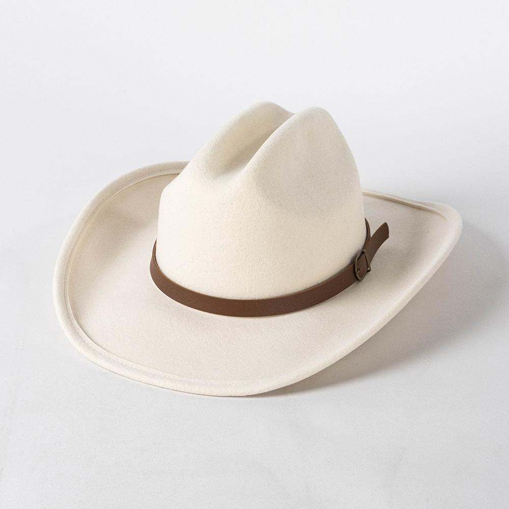Moda Otoño e Invierno Europea y Americana Sombrero Cowboy de Lana Retro Británico con Decoración de Cinturón Viaje al Aire Libre Montañismo Ala Ancha Sombrero de Jazz