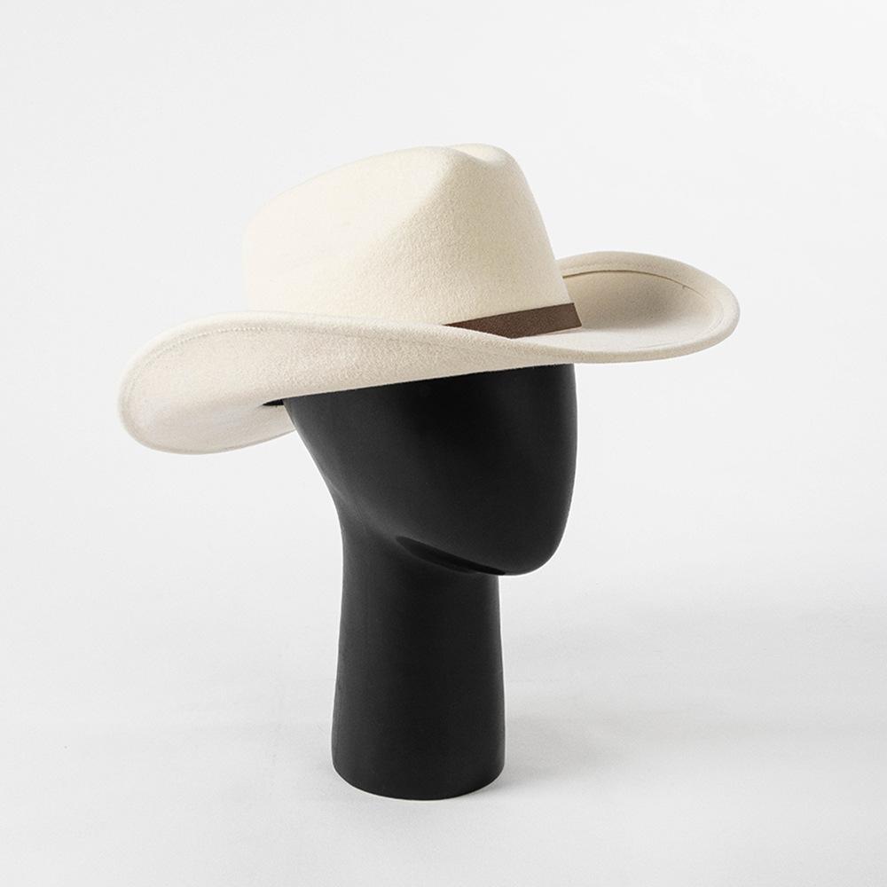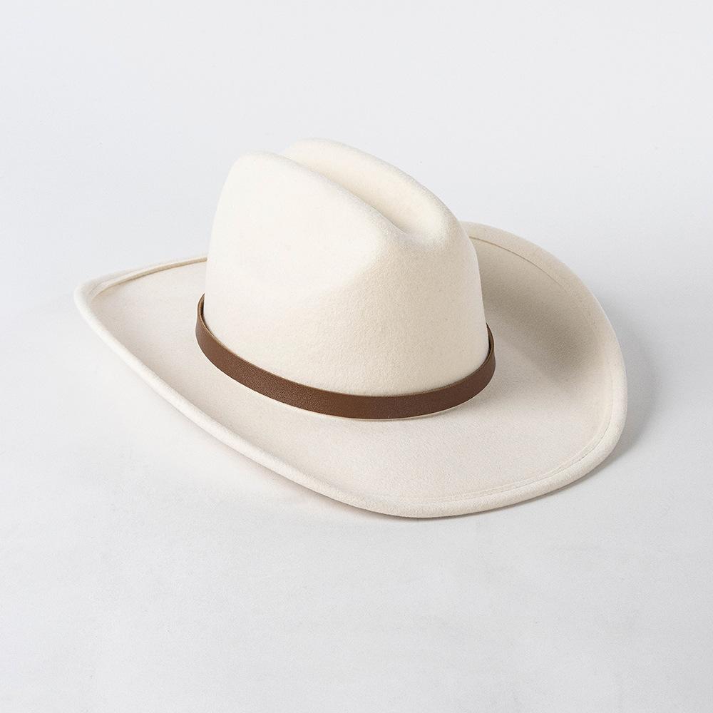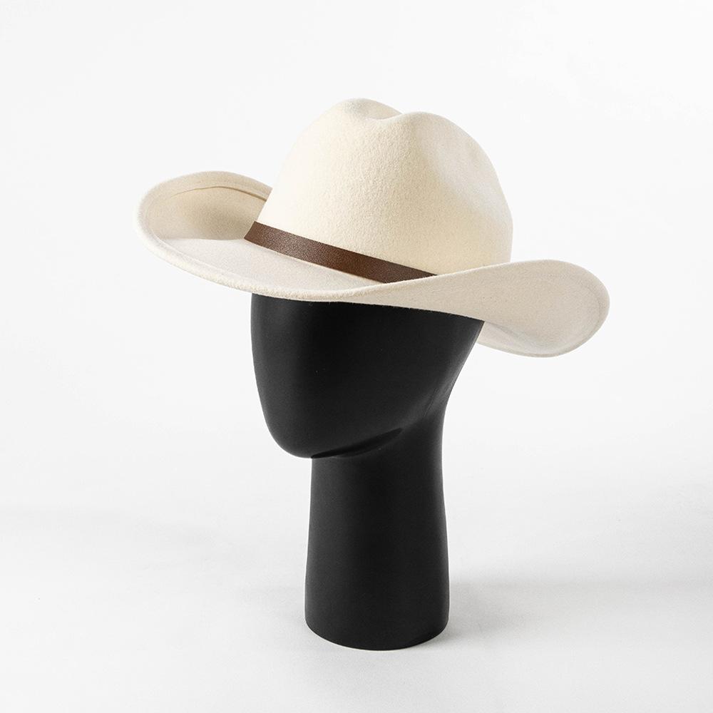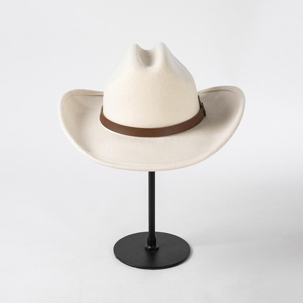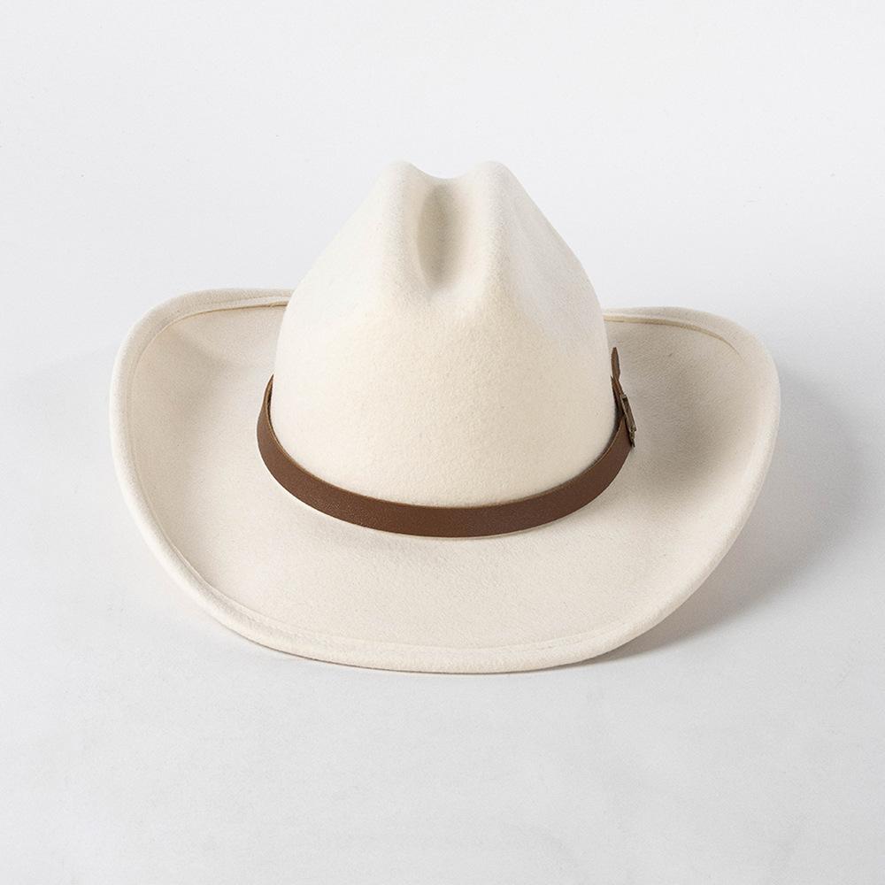 Moda Otoño e Invierno Europea y Americana Sombrero Cowboy de Lana Retro Británico con Decoración de Cinturón Viaje al Aire Libre Montañismo Ala Ancha Sombrero de Jazz