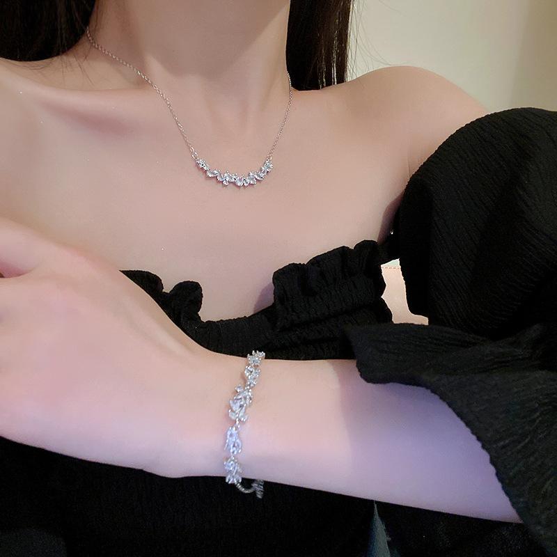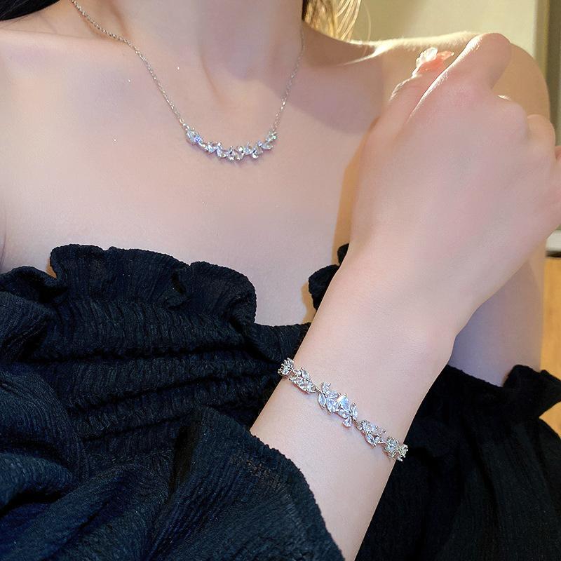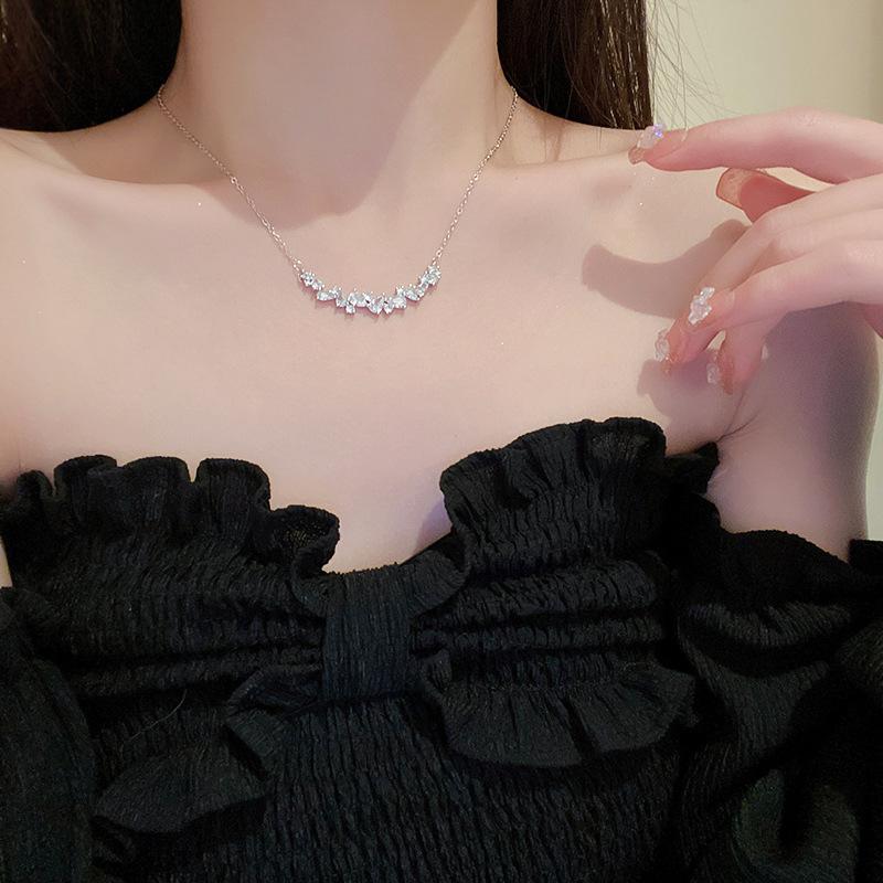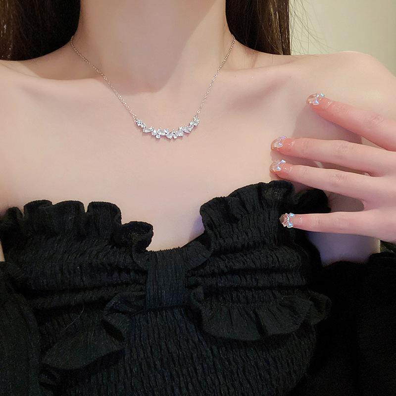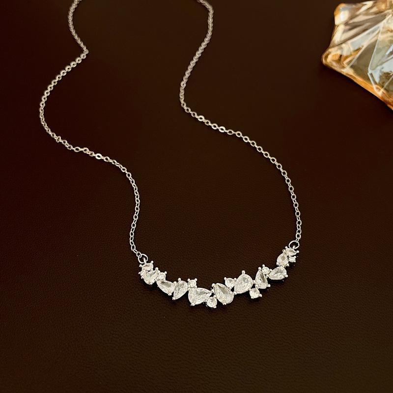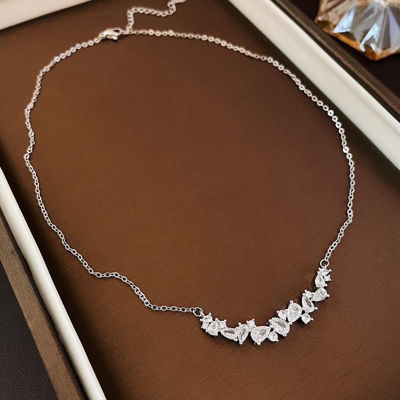 Collar con colgante de flor de gota de agua de circón dulce, estilo francés, cadena de clavícula de moda, collar elegante y de alta calidad para mujer.
