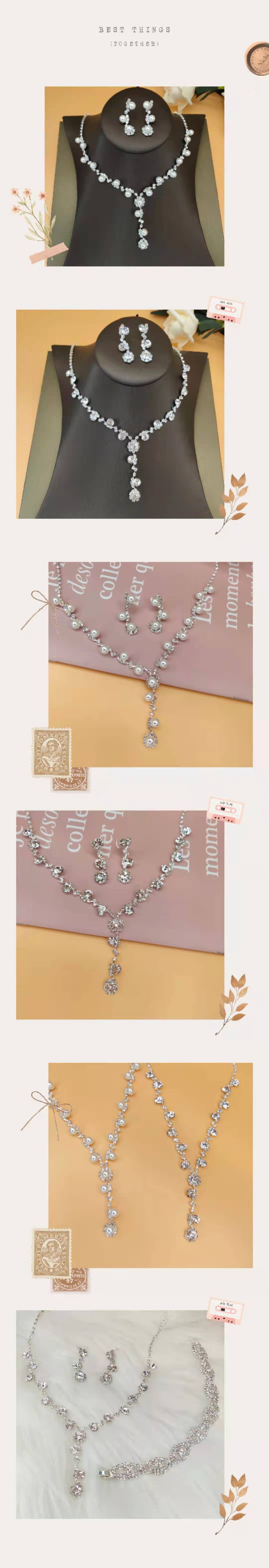 483 silver pearl necklace + earring set, 483 rhinestone necklace + earring set, 483+746 necklace earrings brac...